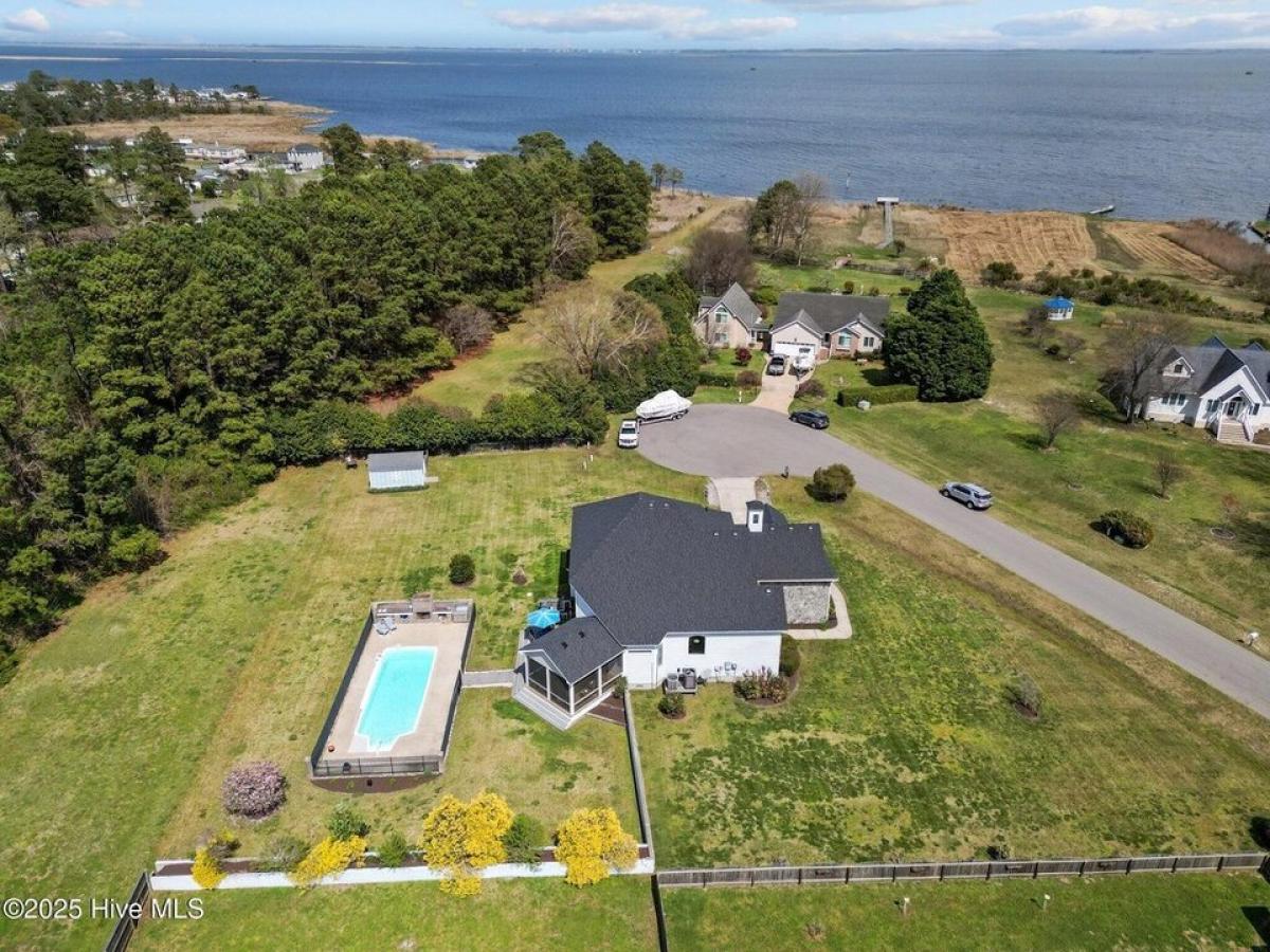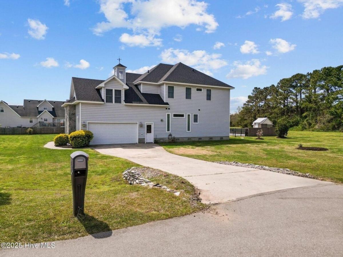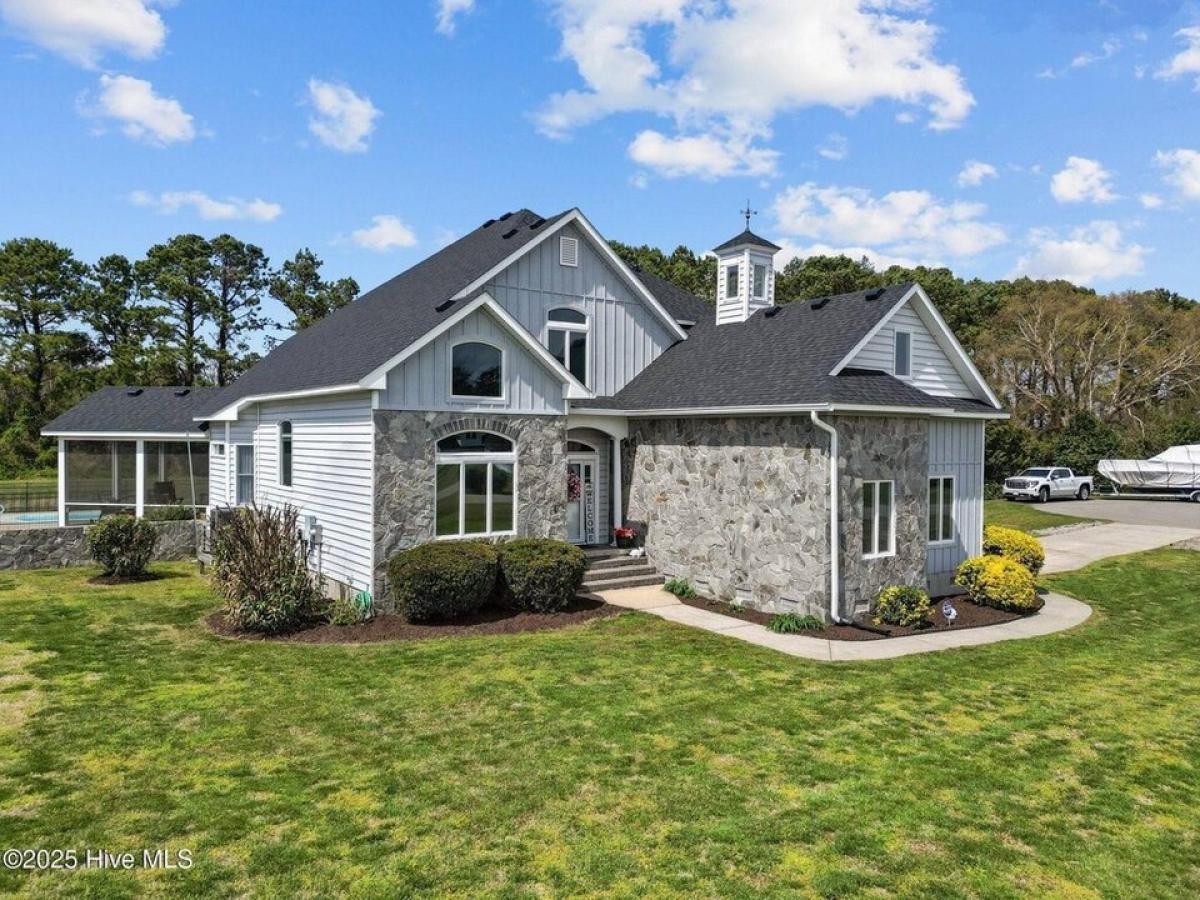 Enjoy! Stunning custom-built coastal home,nestled on a cul-de-sac in a sought-after waterfront communityacirc;euro;#039;#039; serene water views from the second floor.Featuring screened-in deck overlooking an inviting outdoor oasis featuring mature trees, a private inground pool with a wrought iron fence and custom outdoor kitchenacirc;euro;#039;#039;ideal for entertaining. The home#039;s beautiful stonework with Board and Batten accents adds curb appeal, while the landscaped yard highlights a custom partial concrete fence leading into the backyard. Inside, the welcoming foyer with a charming craftsman-style coat closet and a custom bench. To the left, an office/flex room, and to the right, a laundry room and half bath.The first-floor primary suite is a true retreat, offering an ensuite bath with a jacuzzi tub, a luxurious shower, a double vanity, and a private water closet. The open-concept great room boasts a cathedral ceiling, a stone gas fireplace, and abundant natural light. The adjacent kitchen features quartz countertops, a granite breakfast bar, and all appliances convey.Upstairs, a loft area leads to two additional bedrooms, a full bath, and a spacious bonus room over the garageacirc;euro;#039;#039;perfect for a playroom, media room, or extra guest space. Located in a NO HOA waterfront community, enjoy access to a private sound-front area, a refreshed boat ramp, a picnic pavilion, and a sandy beachacirc;euro;#039;#039;perfect for swimming and boating. Home has a fortified roof(2024) Hvac (2024) Centrally located just 20 minutes from the OBX and close to the VA/NC border. Call today to schedule your private showing!