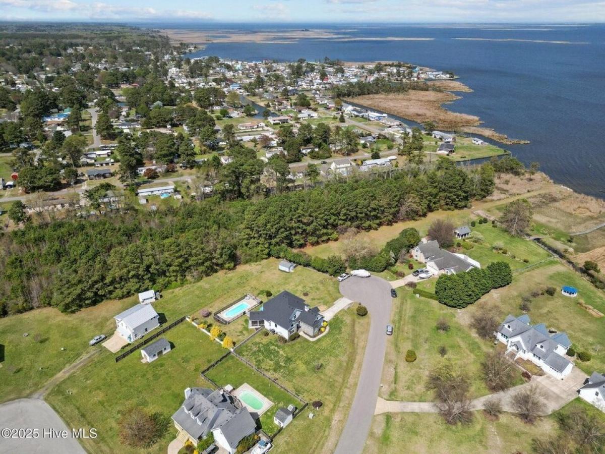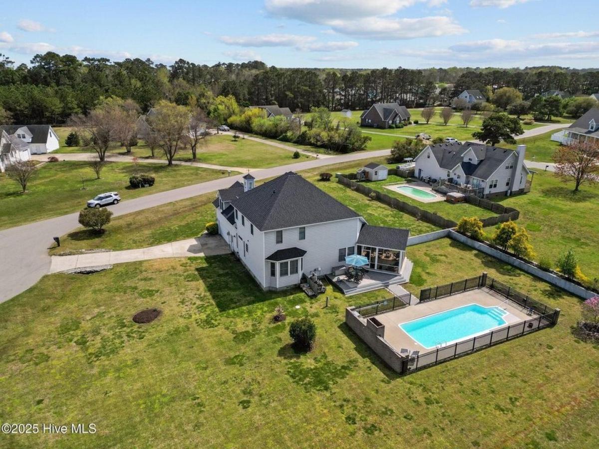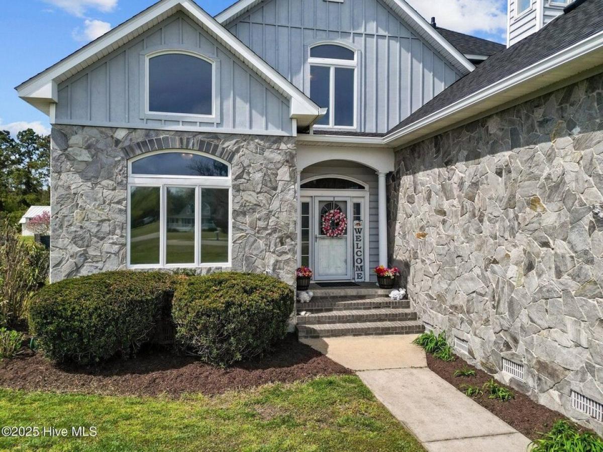 Enjoy! Stunning custom-built coastal home,nestled on a cul-de-sac in a sought-after waterfront communityacirc;euro;#039;#039; serene water views from the second floor.Featuring screened-in deck overlooking an inviting outdoor oasis featuring mature trees, a private inground pool with a wrought iron fence and custom outdoor kitchenacirc;euro;#039;#039;ideal for entertaining. The home#039;s beautiful stonework with Board and Batten accents adds curb appeal, while the landscaped yard highlights a custom partial concrete fence leading into the backyard. Inside, the welcoming foyer with a charming craftsman-style coat closet and a custom bench. To the left, an office/flex room, and to the right, a laundry room and half bath.The first-floor primary suite is a true retreat, offering an ensuite bath with a jacuzzi tub, a luxurious shower, a double vanity, and a private water closet. The open-concept great room boasts a cathedral ceiling, a stone gas fireplace, and abundant natural light. The adjacent kitchen features quartz countertops, a granite breakfast bar, and all appliances convey.Upstairs, a loft area leads to two additional bedrooms, a full bath, and a spacious bonus room over the garageacirc;euro;#039;#039;perfect for a playroom, media room, or extra guest space. Located in a NO HOA waterfront community, enjoy access to a private sound-front area, a refreshed boat ramp, a picnic pavilion, and a sandy beachacirc;euro;#039;#039;perfect for swimming and boating. Home has a fortified roof(2024) Hvac (2024) Centrally located just 20 minutes from the OBX and close to the VA/NC border. Call today to schedule your private showing!