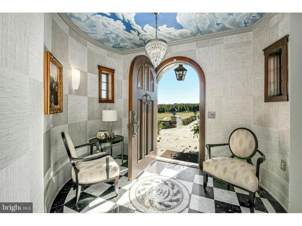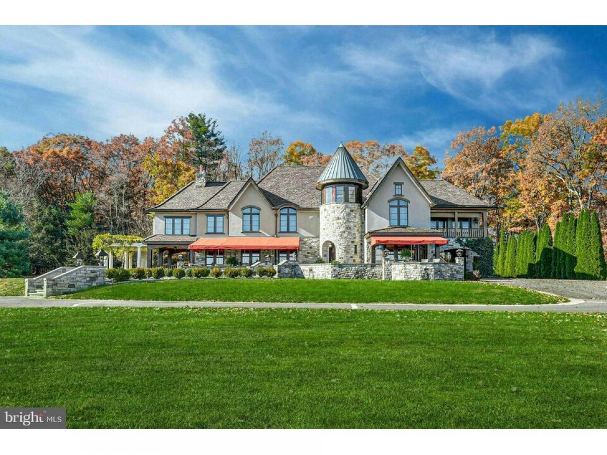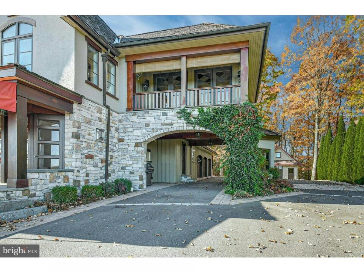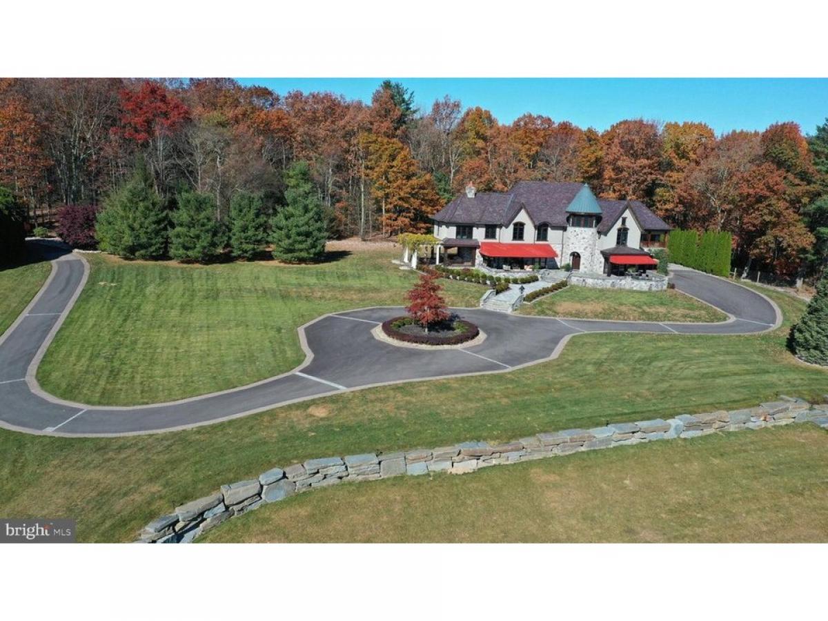 Polished, with understated notes of elegant, crisp, and luxurious, this custom crafted Tudor home and vineyard known as Tutto Niente is a master class in creating the perfect blend. The quarter mile driveway winds through tall trees before rounding a corner to reveal a stunning panoramic view over 55 acres of big sky and Pocono Mountains. Designed and crafted as the family home, the owner/builders did much of the work themselves using materials sourced from the land whenever possible. Custom millwork, unique decorative paint treatments, textured walls, and magnificent lighting are just a few of the hallmarks throughout. Every room of the house features radiant heat floors for year round comfort. Guests enter through a round entryway foyer which opens in turn to the vast 2-story great room with a massive Indian granite fireplace. Nearby is the media room, with a floating oak ceiling and velvet walls, and a spacious dining room with domed gold-leaf ceiling. The newly renovated extensive modern kitchen will impress even the most discriminating of chefs with 2 quartz islands, high end Viking and Thermador appliances and a spacious cocktail wine bar area perfect for entertaining. A step down leads to the cozy family room, with a gas fireplace and curved mahogany wall with floor-to-ceiling windows and doors looking out over the vineyard. The main staircase, inspired first by the Governorrsquo;s Mansion in Connecticut and then renovated with inspiration from the 1920s Empire Hotel in Manhattan, is custom crafted with mahogany newel posts and steel balusters with brass accents. Upstairs, the primary suite is a feast for the senses upon entering the warm and spacious sitting room with gas fireplace. A reclaimed glass wall serves as a room divider to the bedroom with a barrel ceiling painted in a shimmering harlequin pattern and a private balcony, and a 3-part bath with soaking tub nestled within the turret. A recently renovated guest suite is on this level, as well as a third suite and two large bedrooms that share an additional recently renovated hall bath. The finished lower level includes a kitchenette, recreation room, den and full bath. This thoughtfully designed, custom built home overlooks a beautifully tended vineyard and is surrounded by extensive acreage, long-range vistas, and inspiring sunrises that change daily with each season. Raise a glass to the elegance of Tutto Niente!