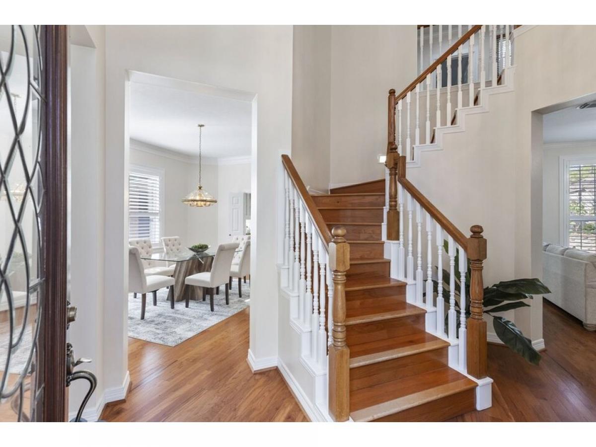 Brand-New Roof! Stunning, custom masterpiece located in the prestigious and desired Capstone neighborhood. This exceptional residence offers 4 spacious bedrooms, 3.5 baths, and a thoughtfully designed floor plan that blends elegance with functionality. The heart of the home is a gourmet chefrsquo;s kitchen. It features an upgraded Jenn-Air cooktop, Thermador appliances, and a double sink with cutting board and drying rack. Every detail is crafted for convenience and style. The interior boasts brand-new hardwood floors throughout and Plantation shutters grace the downstairs windows. Step outside into your private backyard oasis. A new wood deck and barbecue grill enhance this inviting space, perfect dining or simply relaxing in the tranquil surroundings. Prime location nestled within walking distance of exemplary schools, it offers unparalleled convenience for families, while the central location ensures easy access to all the best the area has to offer. Make this beautiful home yours today!