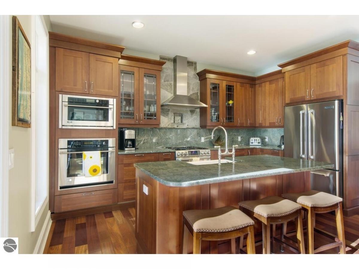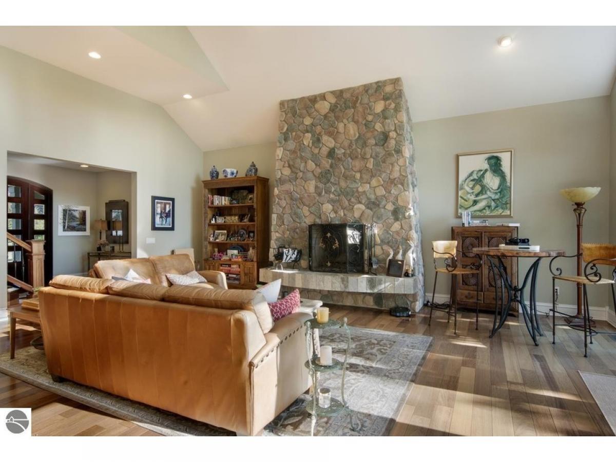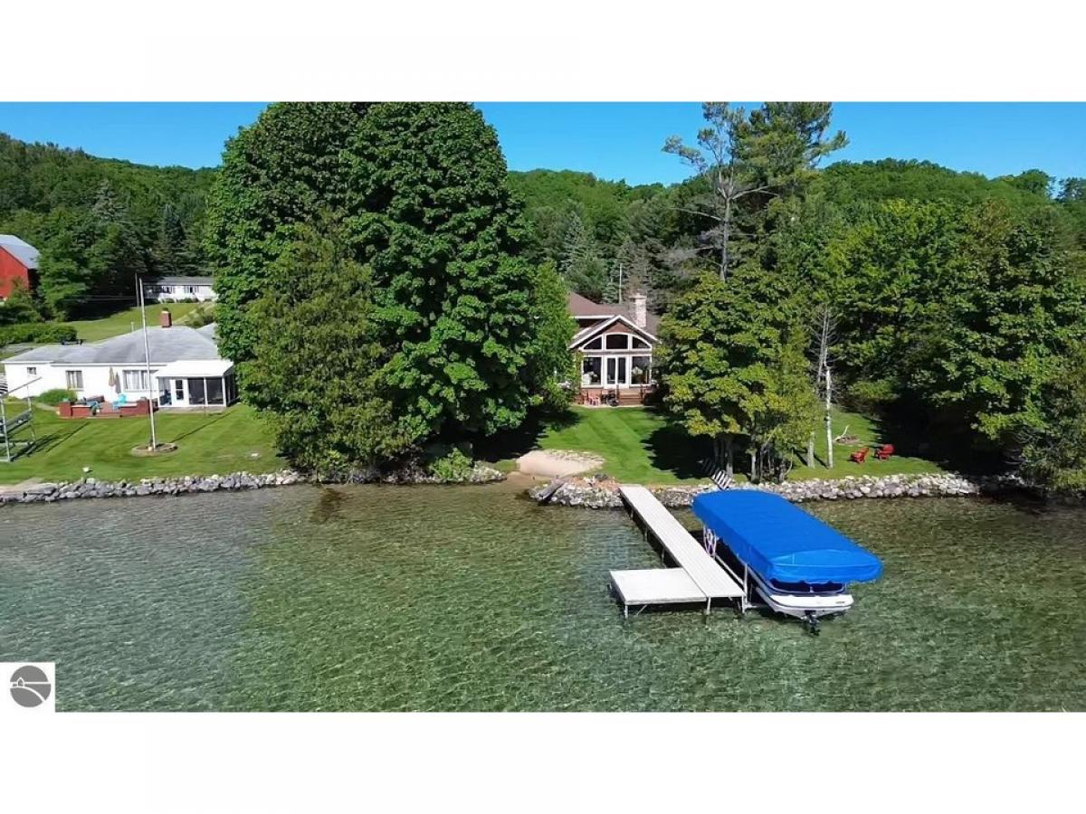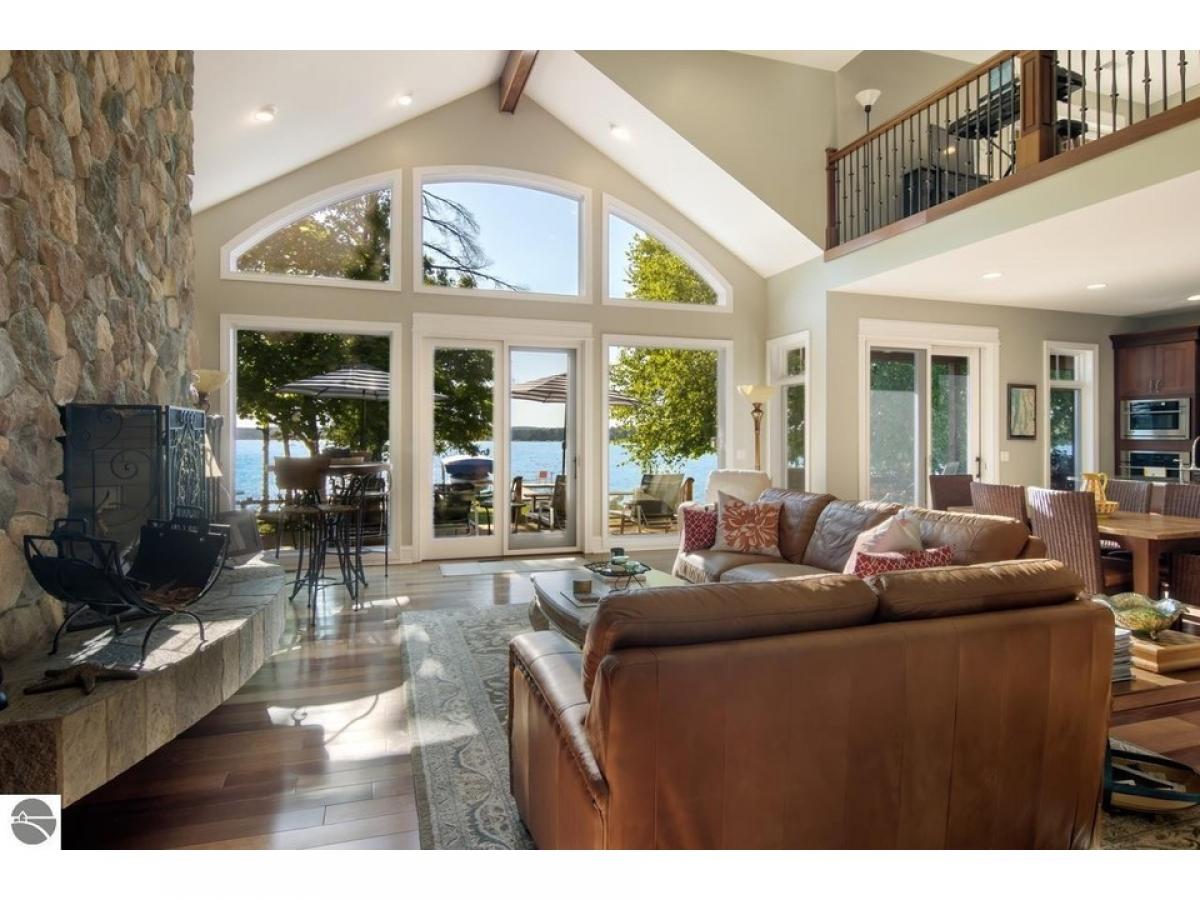 GET READY TO MAKE A SPLASH ON TORCH LAKE! 130’ of sandy bottom frontage is a rare find on Torch Lake, you will love swimming, boating, and waterfront living from this stunning home. You will be impressed by the cedar shake siding, stone accents, flagstone front porch and custom front door as you enter this well-maintained home. As you step into the foyer you are greeted by gorgeous views of Torch Lake and a wonderfully designed open floor plan perfect for entertaining and easy family living. A soaring stone fireplace, beautiful Cherry floors, window wall and cathedral ceilings grace the living room. The Chef’s kitchen features professional grade appliances, an island with bar seating, granite countertops and a unique stone backsplash. Two primary suites on the main floor each offering views of your private frontage; walk-in closets; spacious bathrooms; hardwood floors; and more. Large main floor laundry room with large round window, built-in cabinets and laundry sink. As you head upstairs you will discover a spacious family room; 2 additional bedrooms one with a deck and a full bathroom. Relax in the backyard under a mature shade tree while watching the boats on the lake and listening to the loons. A large deck will be the gathering place for friends and family and the perfect place to host a barbecue. Gather around the firepit and share stories. Additional amenities include 4 bedrooms, 4 baths; ceiling fans; central a/c; 2-car attached garage. This home is being sold furnished so pack your suitcase and discover life on Torch Lake. A great location for exploring Northern Michigan and taking advantages of all four-seasons, golf, skiing, waterfront sports, recreation trail, shopping and dining.