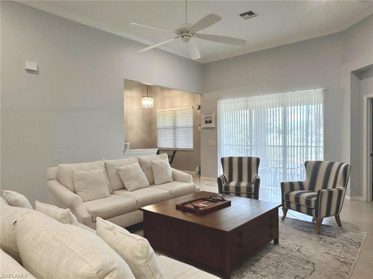 Vasari Country Club is the #1 bundled golf community in the North Naples / Bonita Springs area. With an 18 hole golf course challenging for all levels of play. Vasari has both a 9 hole and 18 hole women's league and a weekly Men's Day. Playing golf is easily available ; 6 tennis courts with an active tennis league; 3 bocce ball courts with over 700 players in league play; fitness center; resort style pool; a casual dining restaurant (Taverna) open for lunch and dinner with poolside food service; and a large upstairs dining venue with both indoor and patio dining available. With talented Chef Mark, creating specials for the residents, you may never want to go elsewhere to dine. The award winning pro-shop has all of your golfing needs from clubs to clothes to golf balls to shoes to golf bags and so much more. You can also arrange to improve your game with one of our certified golf professionals. Toscana is one of the friendliest neighborhoods in Vasari. This two -story, 3 bedroom / den / 2 bath coach home being sold "turnkey" has a large great room with vaulted ceilings, dining room, breakfast room and a large screened lanai. The "gourmet" kitchen is perfect for the home chef or the "take out" specialist. The kitchen features a Samsung French Door Refrigerator and all newer appliances; 42" white cabinets; granite countertops and recessed lighting. The carriage home is loaded with upgrades such as Plantation shutters in the owner's suite; Whirlpool spa in owner's bath; two walk-in closets, neutral tile on a diagonal; recessed lighting in the family room; There is even a Hunter Douglas remote to control the window covers in the family room.And we didn't forget the car. A single car garage helps keep your car looking like it was on the showroom floor.The home is a close walk to the Toscana pool where you can meet up with neighbors and friends.