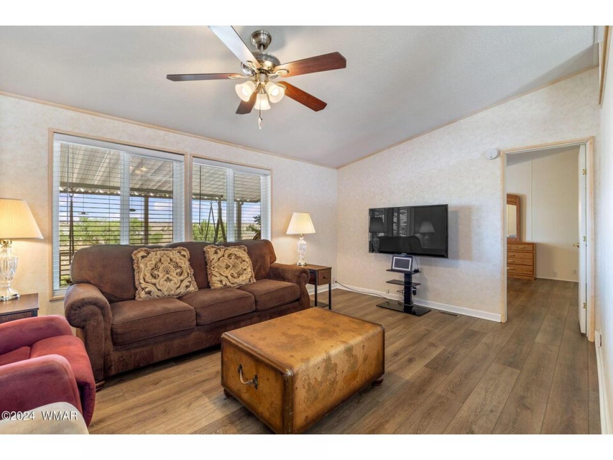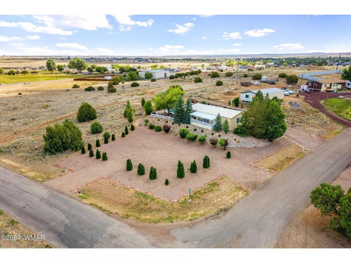 Immaculate home with remodeled kitchen, flooring, bathroom, windows, roof and awesome landscaping! Enjoy the sunsets from the front porch and 4th July fireworks from the back porch! Feature pond, firepit area, 2 well built storage buildings, 2 carports. RV hook up with underground electricity and sewer connection. Evergreen trees, fruit trees, drip system, gravel driveways. Large .44 acre lot, room for a shop/garage. Window unit A/C in dining room and portable A/C unit will stay. All appliances included. A very nice well maintained home.