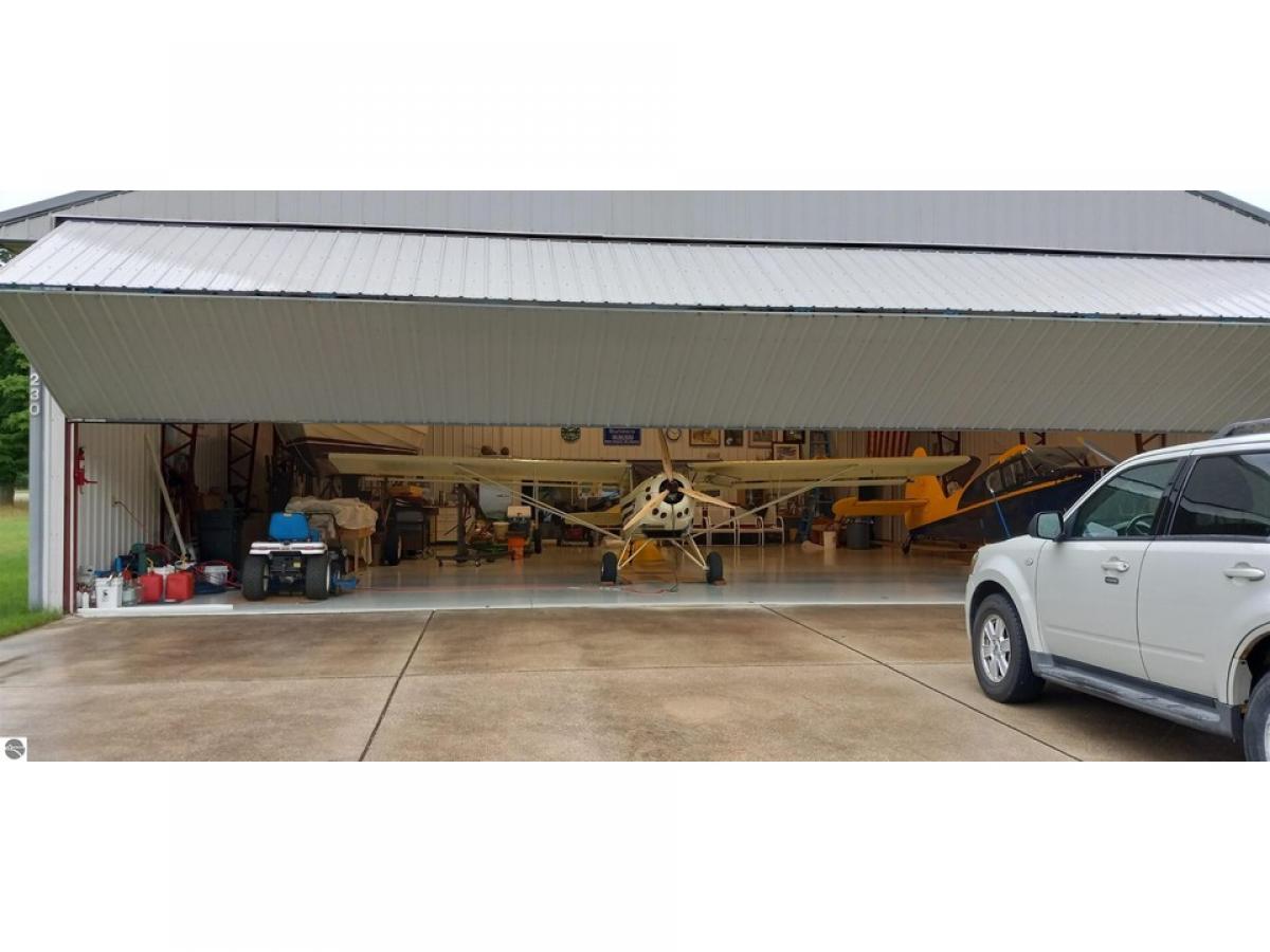 Original owner/developer's 54' x 63' - 14' sidewall steel frame building built in 2004. Insulated walls and ceiling with metal skin finish interior. Interior is CLEAR SPAN with separate office, restroom with shower and 46' x 12' - 10' sidewall Shop Area has in-floor heat and 10' x 10' overhead exit door. Bi-fold insulated hangar door 49' x 12' with operator. Hangar area has infrared tube heat at ceiling, propane fired. Includes laundry sink & Davis kitchen unit. Property runs to center of paved Hangar Way. Paved drive with concrete apron full width of building for extra parking. Designed for aircraft use with optional space for owner's personal property. Mezzanine storage area measures 46' x 12' with limited ceiling height. Lawn has complete irrigation system.
