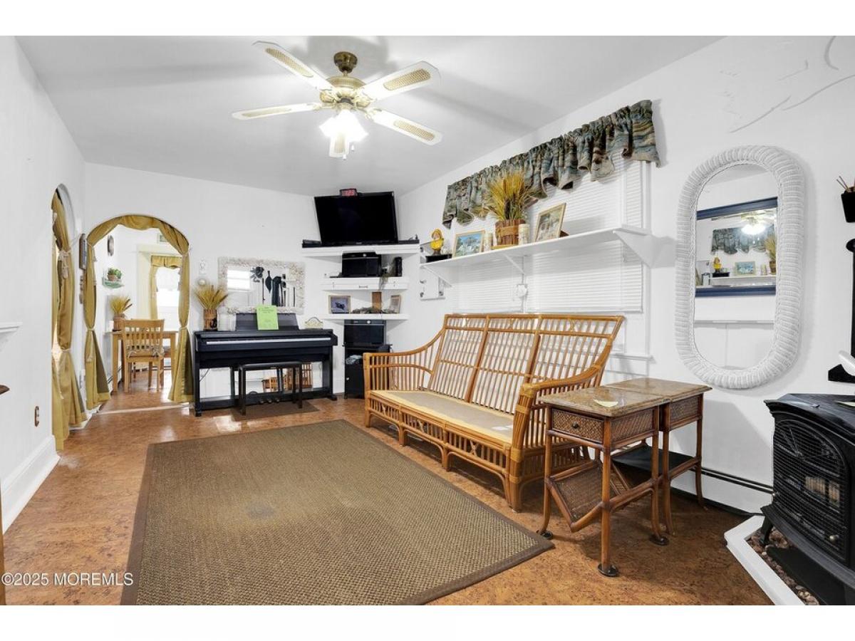 HIGHEST/BEST by Monday, Feb17th,at 6:00 Special things always come in small packages. Adorable bungalow on a great street about one block to Shark River, fishing, park and restaurants. This home has been lovingly maintained for decades. Meticulous in every way. Eat-in Kitchen w/ updated appliances. Arched doorways, wood floors, many built ins and custom shelving. Vented, GAS pot belly stove, HWBB heat, Cent VAC, Full basement too! Don#039;t let the size fool you. Very functional. Take in river breezes from the charming front porch. Deep lot for off street parking. Large shed for storage. Covered area for outdoor dining. Belmar is known for it#039;s vibrant downtown and gorgeous beaches! Perfect for year round living or summer visits! Grass digitally enhanced. See it today!