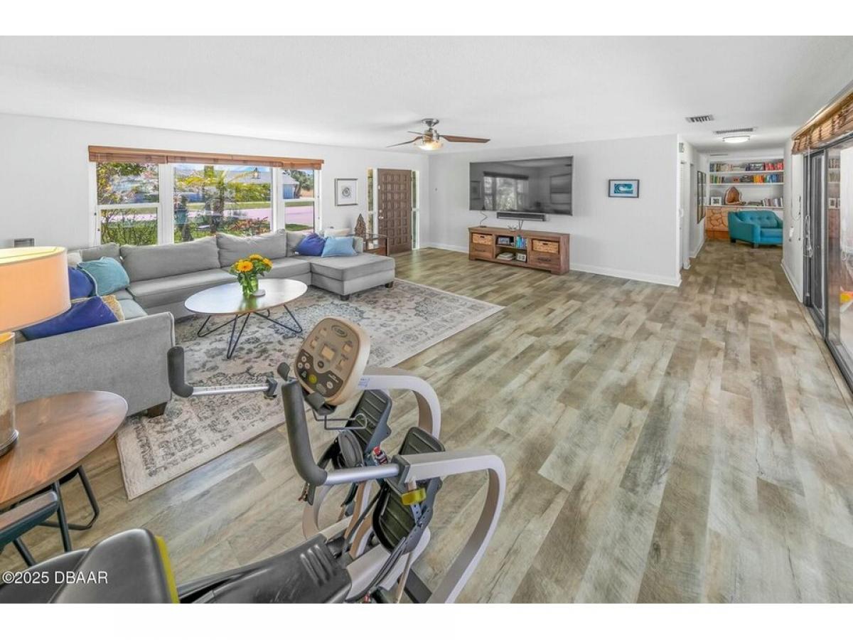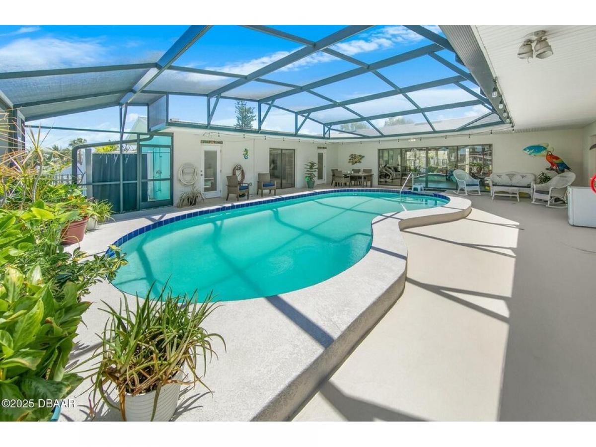 BOATERS amp; FISHERMAN#039;S DREAM!! Navigate to the OPEN OCEAN WITHIN MINUTES!! Beautiful 3BR/2BA canal front SCREENED amp; HEATED POOL HOME with TWO DECKS, BOAT LIFT amp; FLOATING DOCK!! This coastal gem sits on DEEP WATER with the ability to DOCK TWO BOATS and A JET SKI!! Located on the INTRACOASTAL WATERWAY/HALIFAX RIVER on a QUIET CUL-DE-SAC in sought after PONCE INLET, and a short walk to the PRISTINE #039;#039;NO DRIVE#039;#039; SUGAR SAND BEACH access!! Enter this lovely home and your eyes focus on the LIGHT amp; BRIGHT OPEN FLOOR PLAN and TRIPLE SLIDING DOORS leading to the SPARKLING POOL and beyond to the TRANQUIL CANAL WATERWAY. The main living area features LUXURY VINYL PLANK FLOORING amp; there is TEAKWOOD FLOORING in all three bedrooms. Relax by the WOOD BURNING FIREPLACE in the comfortable family room just off the UPDATED FULLY-EQUIPPED KITCHEN with stainless steel appliances, new refrigerator, granite countertops, wood cabinetry with full backsplash amp; bar seating. The CONVENIENT HOME OFFICE with built-in bamboo desk amp; cabinetry is perfect to work from home. The primary suite features BARN DOORS, PLANTATION SHUTTERS amp; WALK-IN CLOSET. The primary bathroom has a large step-in shower with seat, dual sinks and can also be a pool bath since it has a door to access the pool/patio area. Both guest bedrooms are spacious and the large guest bathroom has two vanities with granite countertops separated by an interior door allowing maximum privacy for one person to shower while another can use the second vanity amp; sink area. There is also an exterior HOT/COLD OUTSIDE SHOWER which is perfect for rinsing off after beach time! The two car garage has plenty of storage amp; the driveway has been expanded for added parking. The laundry area has a NEW WASHER amp; DRYER INCLUDED. The pool deck also has an extended covered area making this home perfect for entertaining both inside and outside!! Concrete block construction with many IMPACT WINDOWS, NEW HVAC in 2022 amp; NEW ROOF in 2018. This home is also designed to be mobility accessible. Seller has never had any flooding or water intrusion! Make your waterfront dreams come true!! Call today for your private showing!!