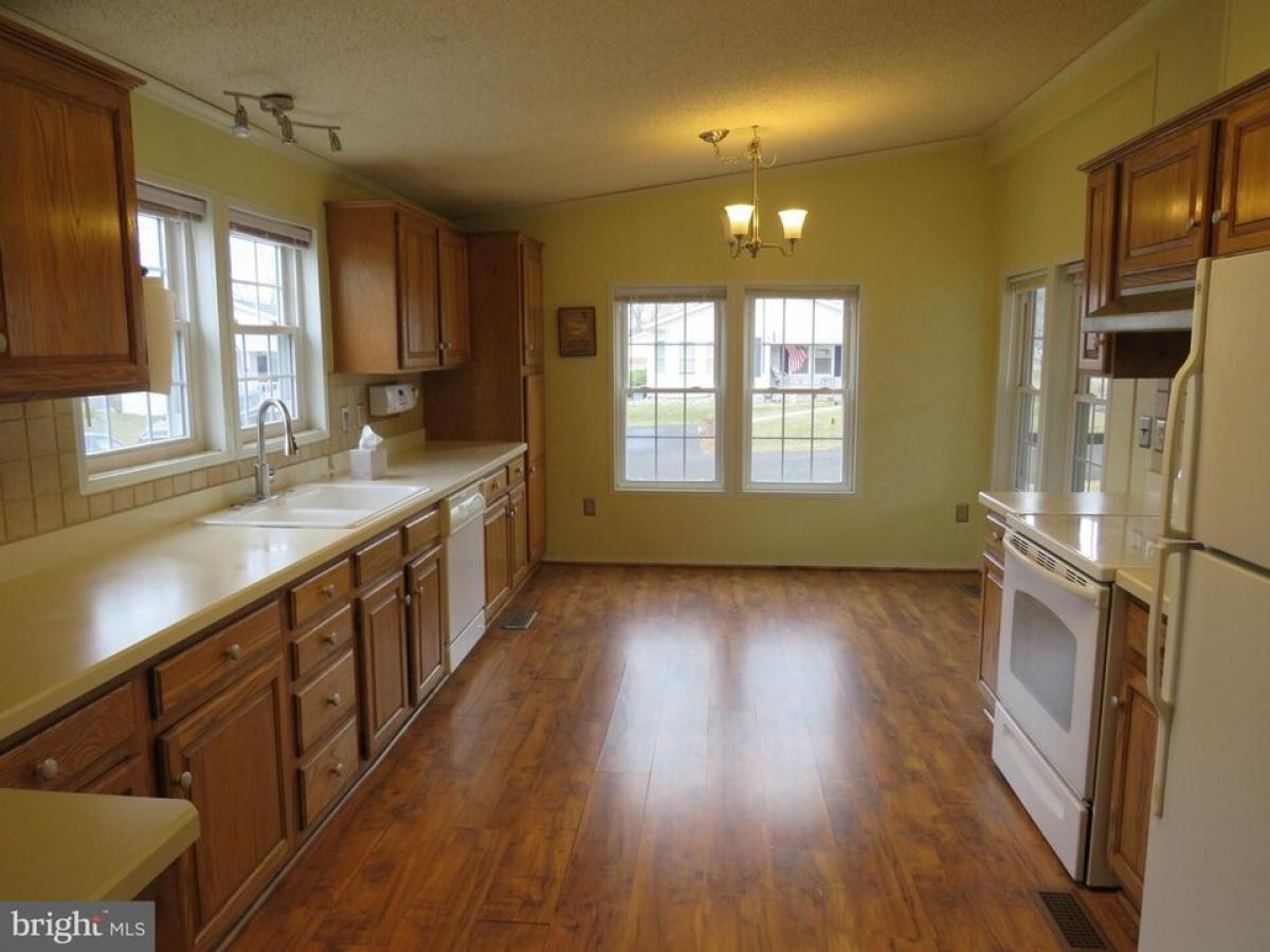 This sweet home is ready for you to move right in. Located in the active adult community of Buckingham Springs. Enter the home through the large patio into the living room with lofted ceilings that opens to a dining room with laminate floors through out. This Warrington Model has a large bright eat in kitchen with plenty of cabinets. In the hall is the Laundry room with cabinets, heater closet and a door that opens to a side patio that is fenced and has a retractable awning. The Primary bedroom is large with walk in closet, second closet and opens to the double door primary bathroom with soaking tub, shower stall and vanity. The second bathroom sits next door to bedroom 2 with large closet. New Roof and 6 new windows and flooring in 2015, Washer 2023 and Dryer 2018, toilets 2021. This home is priced perfectly for you to come in and make this place your own. The land lease includes sewer, trash, clubhouse and pool.