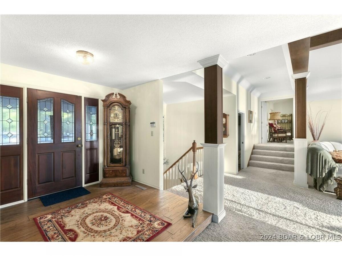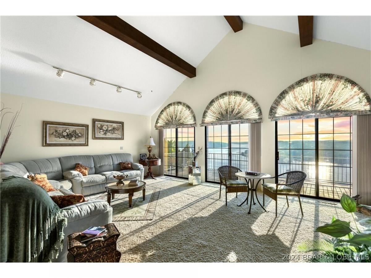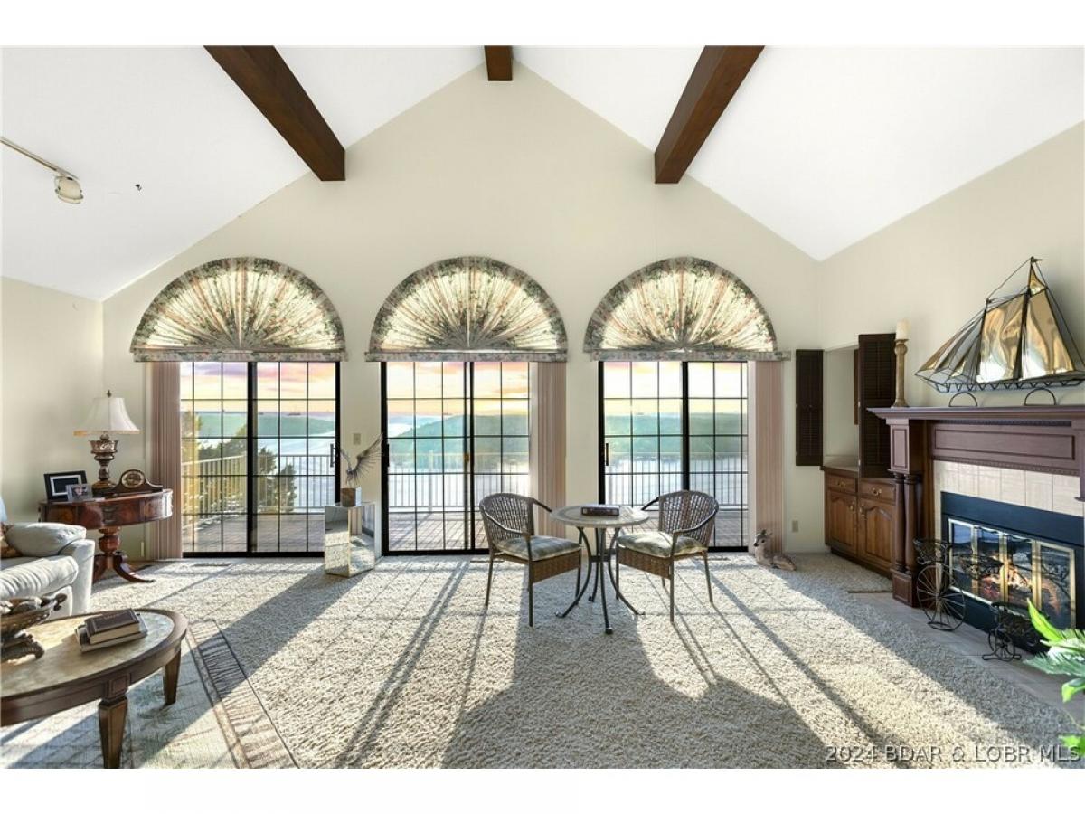This home has the most BREATHTAKING SUNSETS I have ever seen! As soon as you enter the front door, you will be greeted by vaulted ceilings & natural light & sliders which showcases MILES of sparkling waters from atop the bluff. The Eagles soar outside your windows, and watching the firework displays reflecting on the water are unmatched. You have plenty of space to entertain guests whether that be in the kitchen, the formal dining room, or either of the lakeside decks that span the length of the house. Take a few steps into the over-sized master suite which offers a double-sided fireplace, jetted tub, separate shower & walk-in closet. In fact, EVERY bedroom of this home has phenomenal views of the water. The lower-level features 2 large bedrooms (which easily holds King beds), each with access to the bath. The lower family room could be used as a 4th bedroom. Storage area under lower level. Addt'l deeded parking across the road.