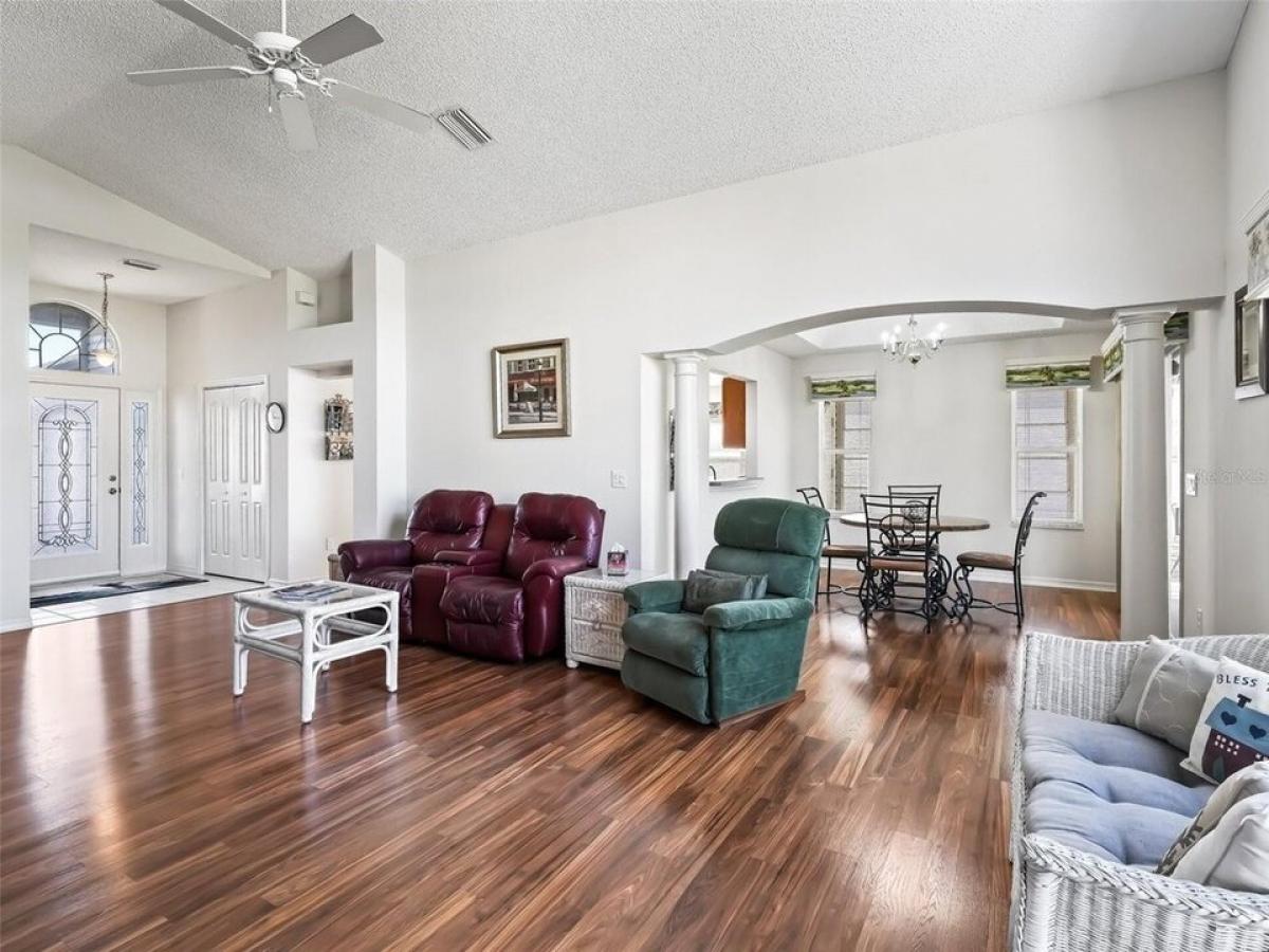TURN-KEY Designer in The Villages of Santo Domingo ndash; NO BOND! This beautifully maintained 3-bedroom, 2-bathroom, 2-car garage home is move-in ready with numerous upgrades! Step into the spacious great room featuring high ceilings and a stunning palladium window with a REMOTE-CONTROLLED shade on large window in great room for effortless light control. The kitchen is a chefrsquo;s dream with ample cabinetry, counter space, an ISLAND, and an eating area, plus there#039;s a separate dining room for entertaining. The master ensuite boasts double-door entry, a huge walk-in closet, a gorgeous RENOVATED master shower and HIS/HER sinks. Guest accommodations are thoughtfully positioned at the front of the home for added privacy. Relax in the enclosed, carpeted lanai with vinyl windows and dual ceiling fans, perfect for year-round enjoyment. This home is packed with modern upgrades such as - * Solar Panels for Energy Efficiency * 2020 Roof amp; 2022 HVAC System * New Wood Laminate Flooring (2022) * Whole-House Filtration System (2022) * New Storm Door amp; Leaded Glass Front Entrance * Garage Door Opener (2023) * Built in Storage in Garage * Full House Surge Protection * Sliding Screen Doors on Garage * All New Electrical. Enjoy the benefits of GAS! Plus there#039;s an INDOOR laundry room for convenience. A FULLY transferable whole-house WARRANTY provides peace of mind for the new owner. Centrally located near all the wonderful amenities The Villages has to offer, this home is a must-see! Schedule your private tour today!