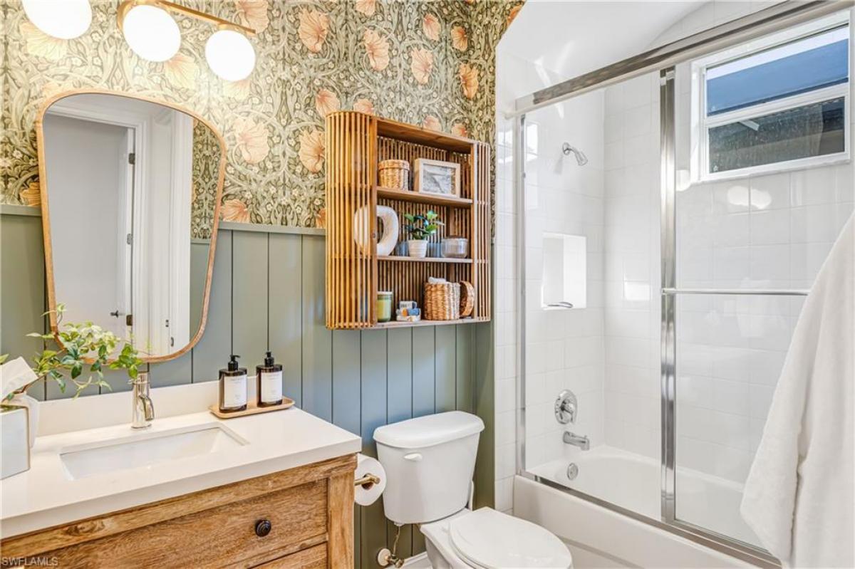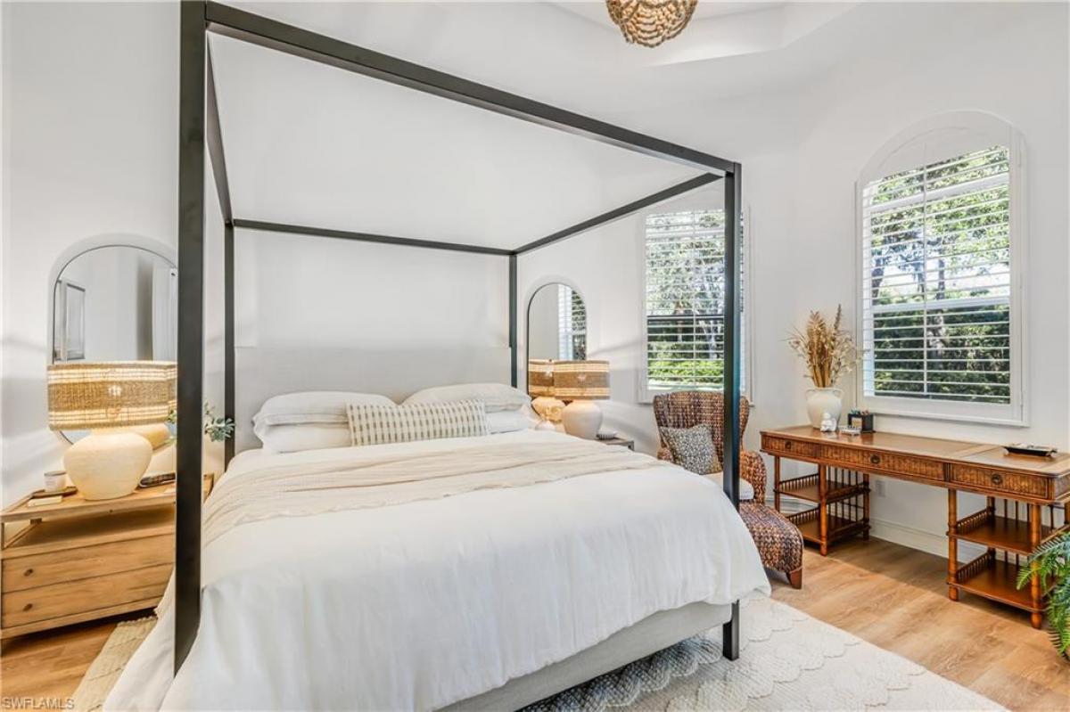 When you enter this courtyard home w/pool & spa & guest cabana, you will feel like you are in a fabulous resort! Luxury & value for under $700K in such an upscale gated golf community. Lovely updated kitchen, stunning vinyl plank Chevron style flooring, beautifully decorated throughout, Coffered & Tray ceiling, plantation shutters + besides the courtyard you can relax on your rear lanai on your nicely landscaped yard. Newer roof (2022) & new water heater (2025). This home feels larger than its size., with 3 BR & 3 baths including that cabana by the courtyard which your friends & relatives will enjoy staying in. All within Grandezza, with its 53,000 sq. ft. clubhouse, year-round social activities, & in a fabulous location, across from Hertz Arena, Miromar Outlets Mall, a shopping center & FGCU next door, about 15 minutes to the airport, & with restaurants & hotels close by. This is a winner!