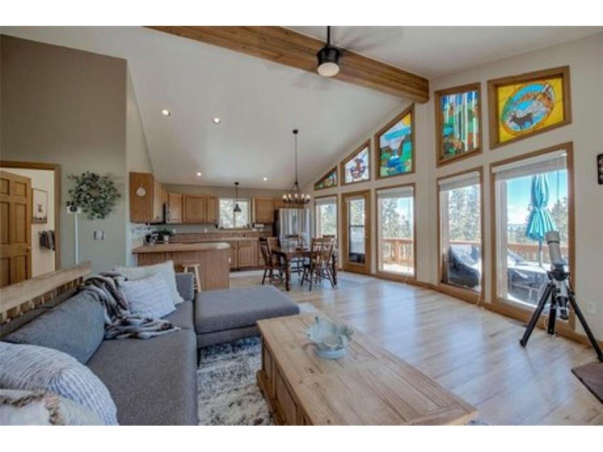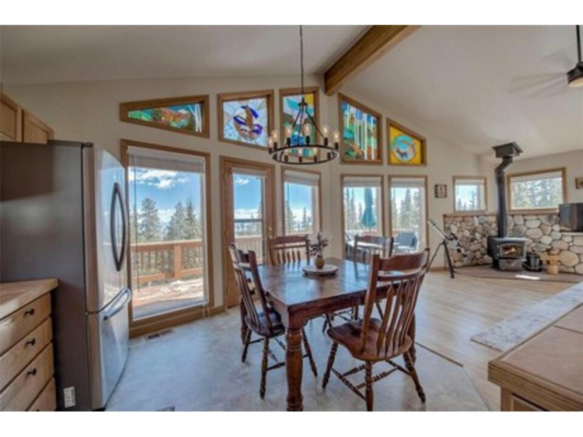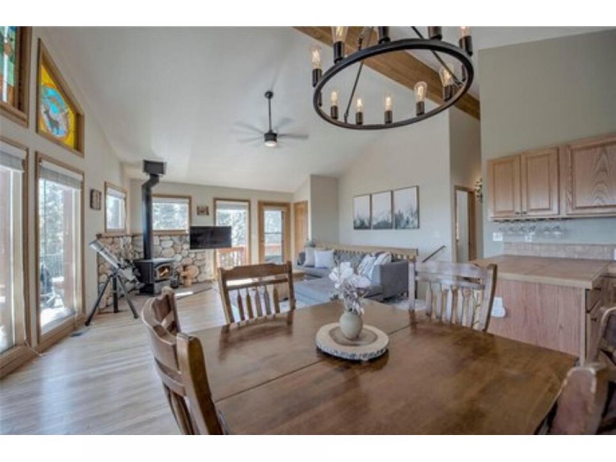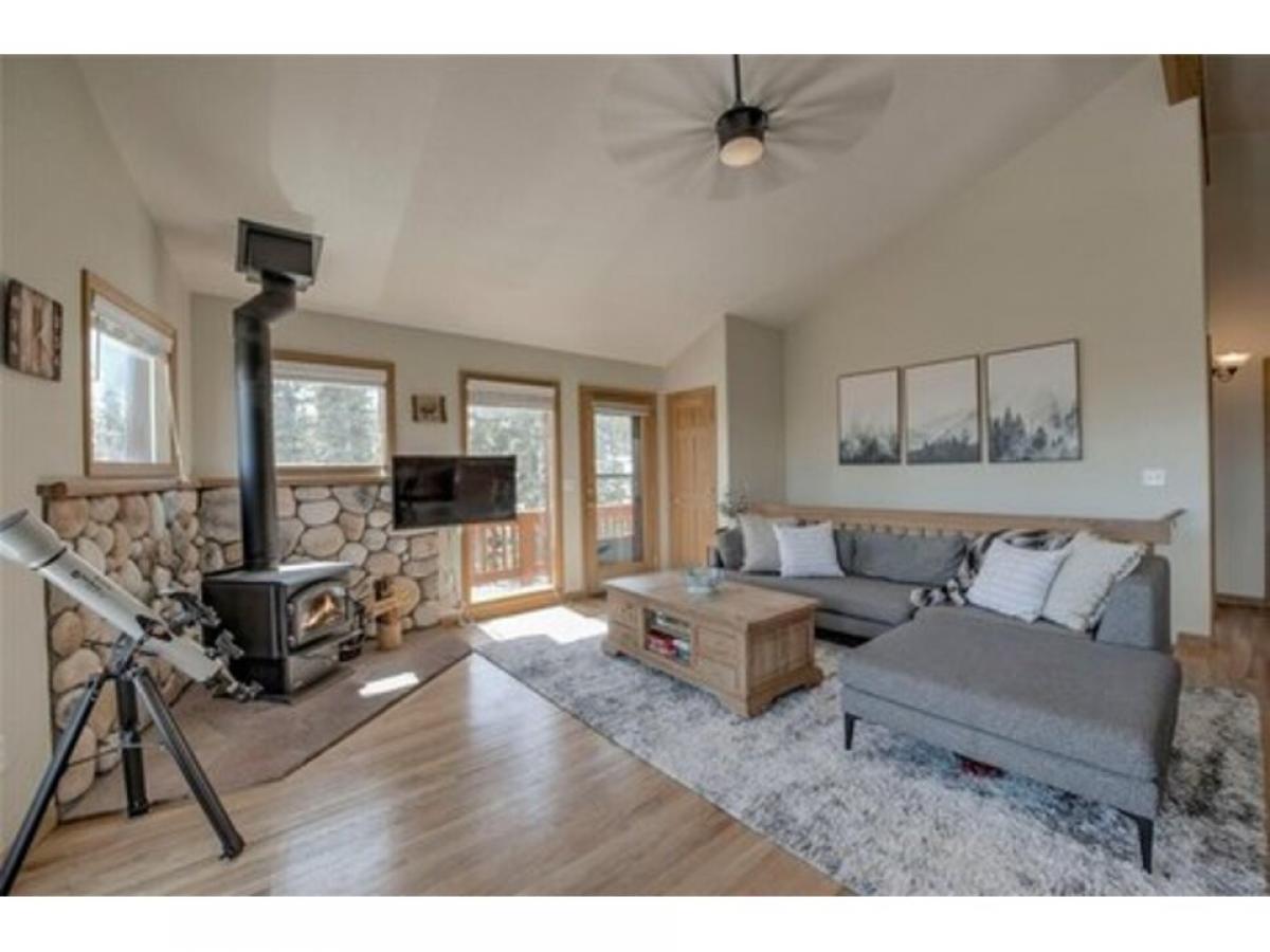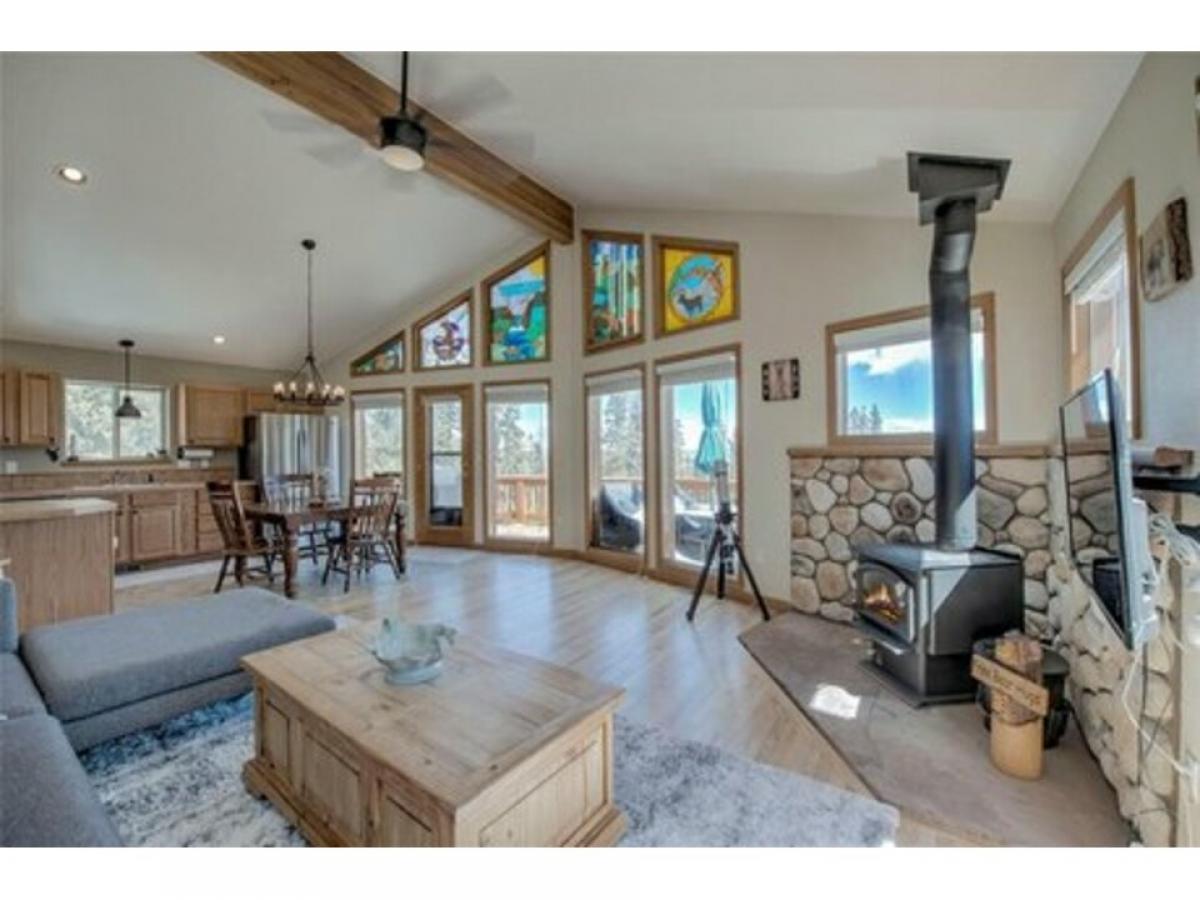 Welcome to your cozy mountain retreat in Valley of the Sun! Nestled in a secluded wooded area, this home offers the perfect blend of tranquility and convenience. Step inside to discover a spacious floorplan that has everything you need. Enjoy the breathtaking views of the surrounding mountains from the huge wraparound deck, perfect for outdoor entertaining or sipping your morning coffee. Inside, the home has a peaceful living room with a warm wood-burning stove, ideal for chilly mountain evenings. The vaulted ceilings and large windows in the living area allow the outdoors to come inside! This rare turnkey home boasts 3 bedrooms plus an extra room for office, playroom or den. Situated on a sunny 1+acre wooded lot the home offers lots of privacy while still being close to everything. It's just 40 minutes to Breckenridge for world-class skiing and only 10 minutes to Fairplay for everyday conveniences.