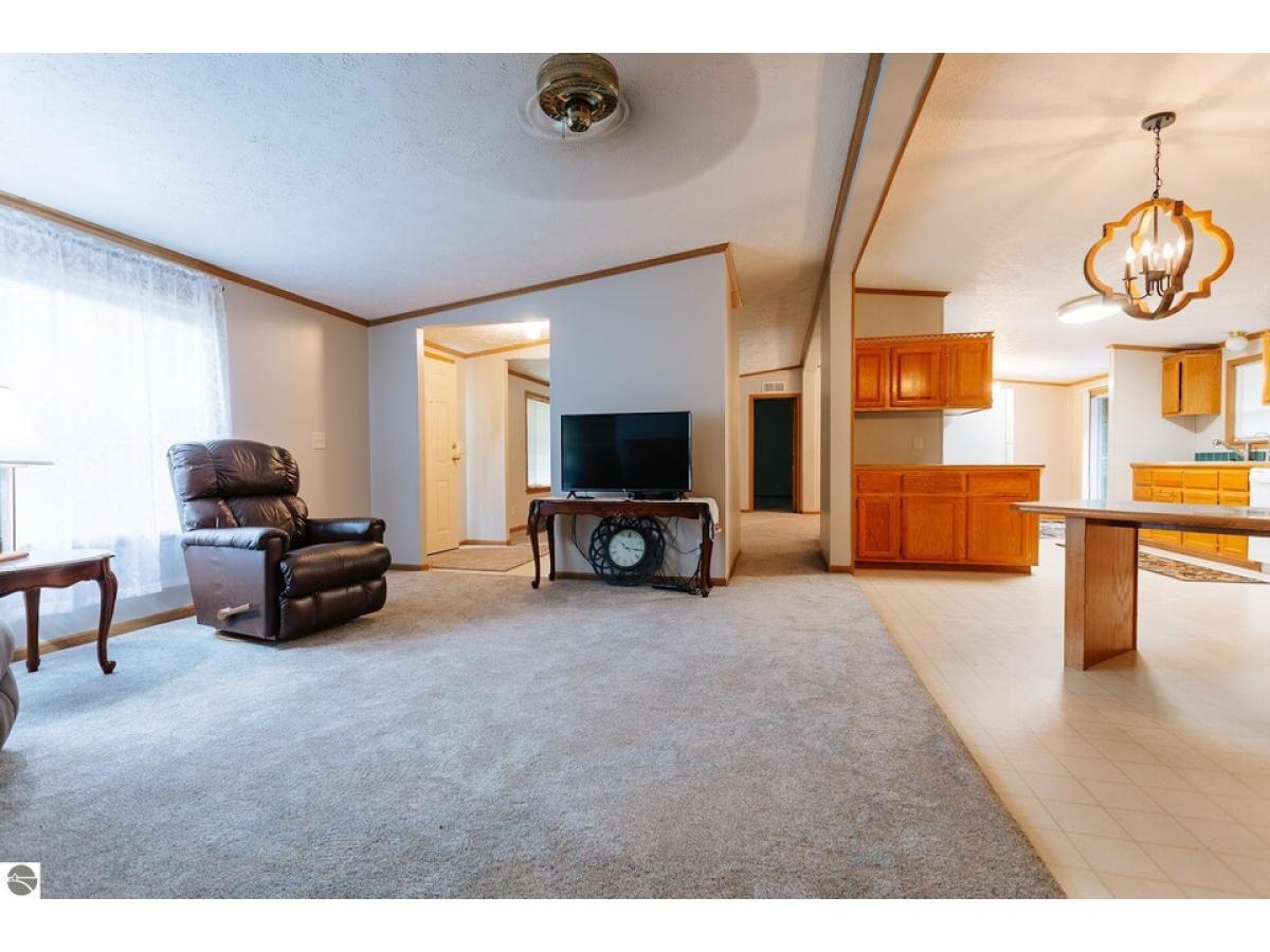 NO HOA well-maintained home including three-bedrooms, two-bathrooms with an oversized attached two-plus car garage that provides ample vehicle space and extra storage. The house sits on 9.7 acres and is conveniently located near Crystal Lake, Crystal Mountain, Platte Lake, and Lake Michigan, only 35 minutes from downtown Traverse City. The interior features an inviting open floor plan with a strategically placed log fireplace. The layout encompasses a large family room, living room, dining room, and a well-equipped kitchen with generous counter space for daily activities and gatherings. Updates include; new flooring, paint, appliances, vanity, toilet, metal roof(house not garage), furnace, ac, water heater, water softener(rented). Outside, the large back deck is excellent for relaxation and outdoor gatherings, while a garden shed offers additional storage for tools and equipment. This location is perfect for exploring and embracing northern Michigan's natural beauty and activities. Less than ten minutes from downtown Beulah and Beulah Beach, the prime location allows easy access to local amenities, dining, and recreational opportunities. Whether seeking a peaceful retreat or a place to create cherished memories with loved ones, this property offers tranquility and convenience. The home has received many updates, including new carpet, paint, fans, flooring, and a metal roof. Everything about this home lends itself perfectly to those who love the outdoors and entertaining. Point of Sale Completed