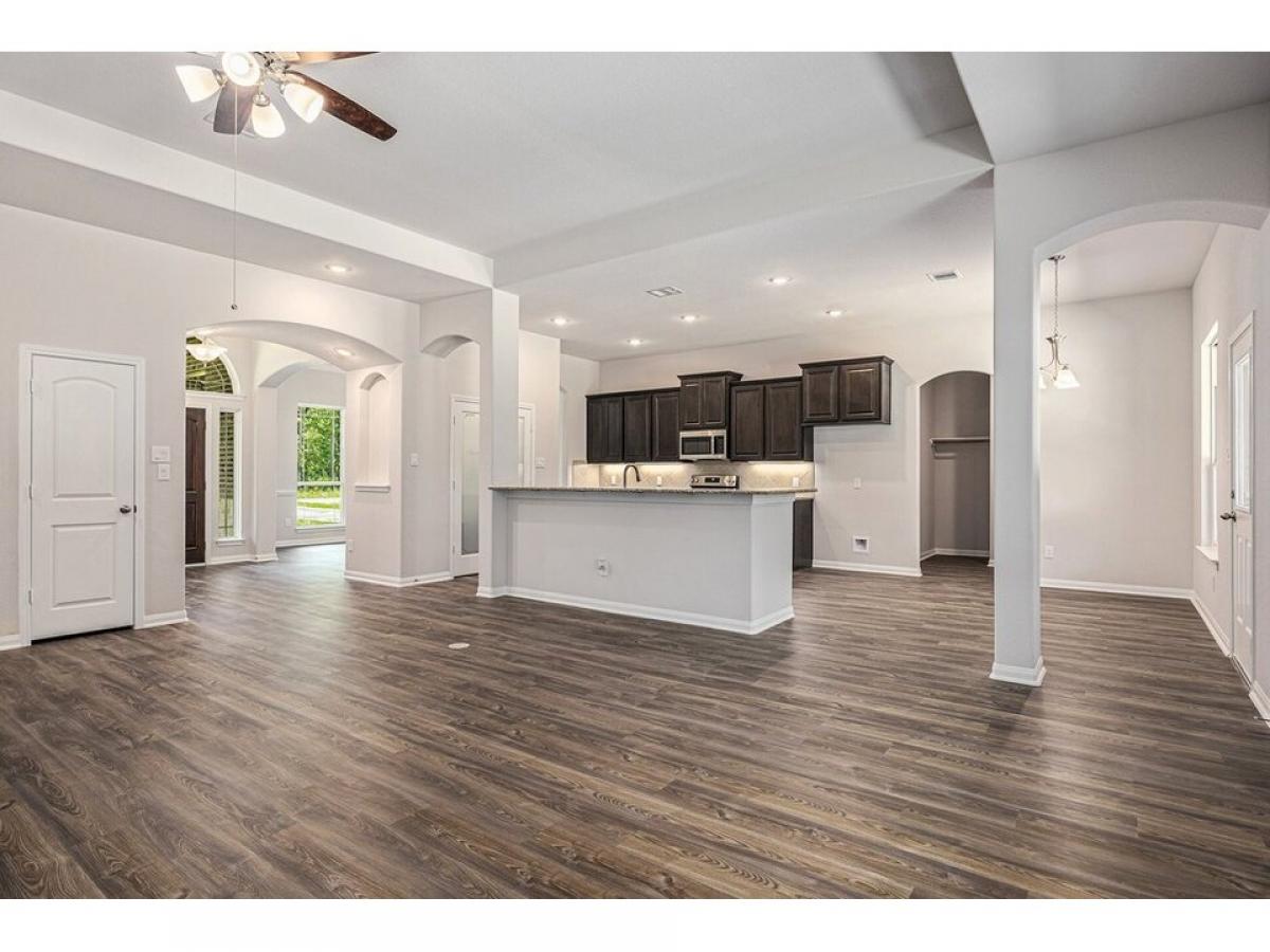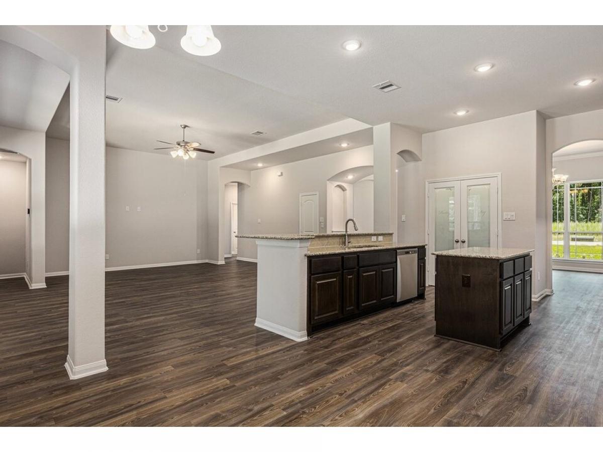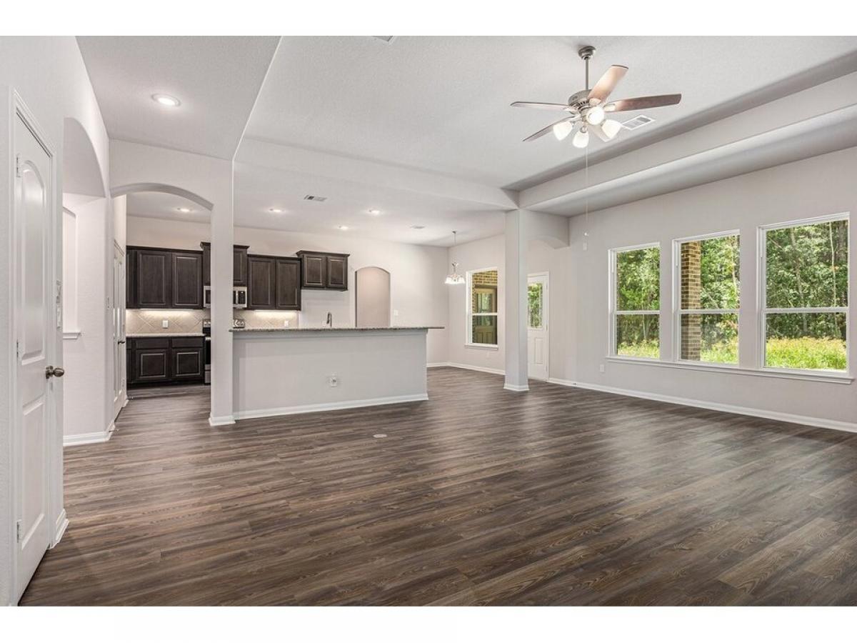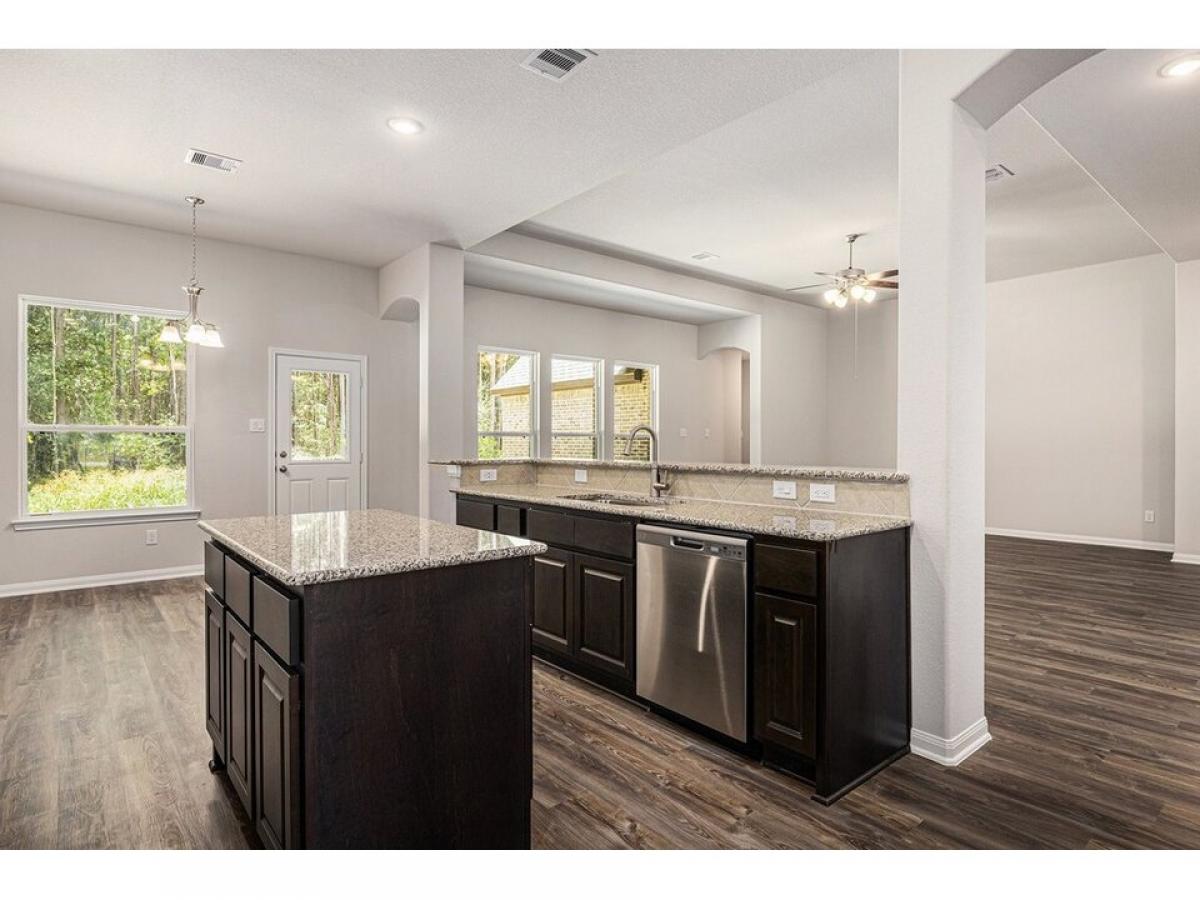 Welcome to Encino Estates, Daytonrsquo;s hidden gem! This stunning frac34;-acre community offers low taxes and is just 10 minutes from Hwy 90 amp; Downtown Dayton. This 4-bed, 2.5-bath home features 2,482 sq. ft. of living space, a 3-car tandem garage, and incredible curb appeal. The grand entry leads to a formal dining room and a spacious chefrsquo;s kitchen with 42rdquo; cabinets, granite countertops, under-cabinet lighting, a designer backsplash, and built-in stainless steel appliances. The open-concept design flows into a large family room with a floor-to-ceiling stone fireplace. Laminate wood flooring runs throughout, with carpet in the bedrooms. The primary suite boasts high ceilings, a spa-like bath with granite vanities, a sunken shower, and a walk-in closet. Enjoy outdoor living on a covered porch overlooking nearly frac34;-acremdash;perfect for a shop, RV, or boat! Additional features: structured wiring, USB/media outlets amp; more. Zoned to Dayton ISD with a low tax ratemdash;schedule your showing today!