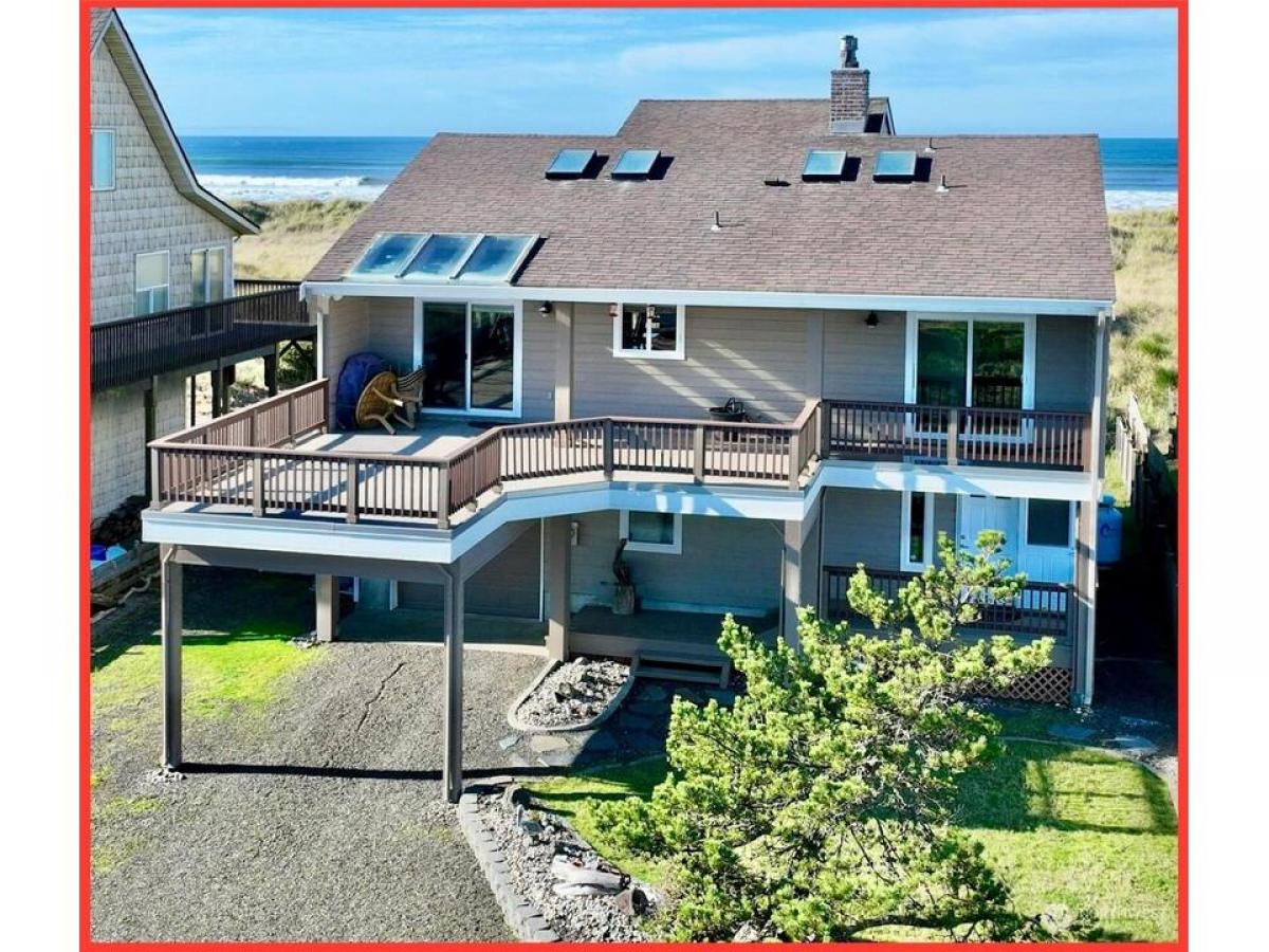 Location Location! RUSTIC OCEAN FRONT ESTATE with fantastic views of the Pacific and a private trail mere steps to the beach! Complete with a 14,977 sf parcel, 60' of frontage, spacious drive and 2) 1-car garages with shop space. This sun-filled plan features 2190 sqft 3 bedrooms, 2.5 baths. Upper: Enter the expansive great room with exposed beams, tongue and groove cathedral ceilings, skylights, gas stove, 1/2 BA and full-length decks~both sides. 3rd level loft with private deck. Kitchen w/Granite slab counters, newer SS appliances island. Primary en-suite w/doors to decks and 3/4 BA. Main: 2 sunny bedrooms, a 3/4 BA bonus room w/wet-wine bar gas stove. Forced air heating w/heat pump. Water filtration system. Newer deck/roof/paint.