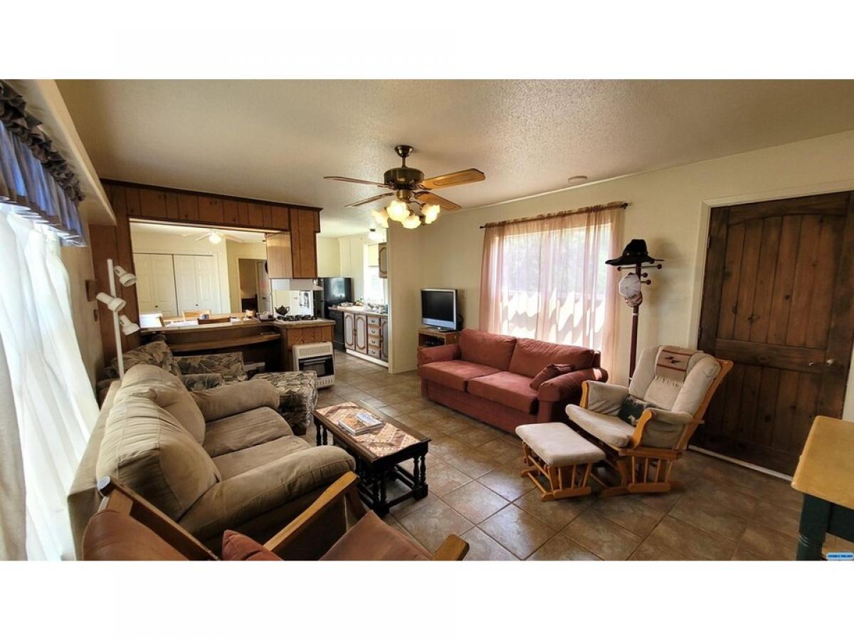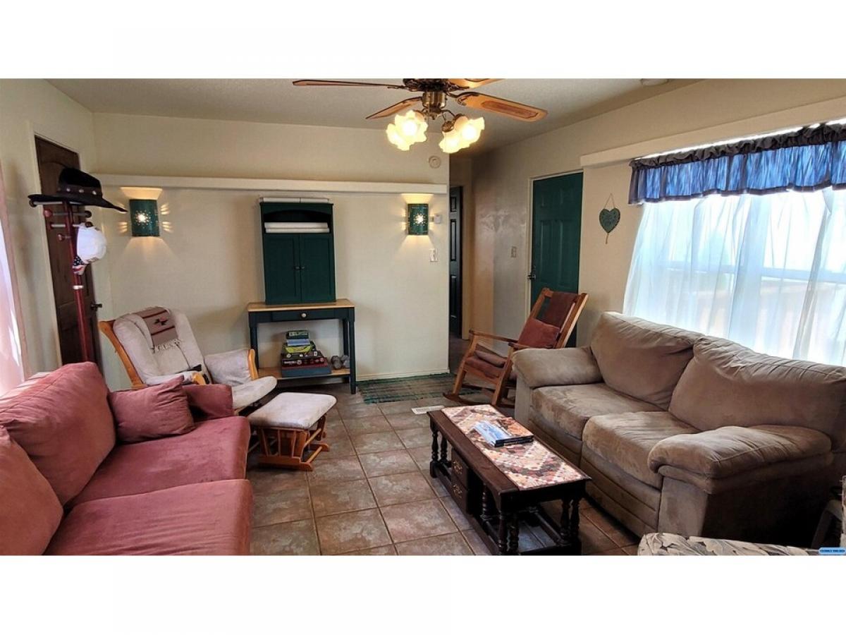 Updated home with private courtyard. Huge hangar/shop/garage. New windows, stucco and updated bathrooms. Large site-built addition for an additional bedroom, cantina, office, hobby, music or theater room. Features include french doors that open to courtyard and beamed ceiling. Standing seam metal roof. Covered deck plus concrete patio for entertaining. 1 stall attached carport. Hangar is 40 x 50 / 2000 sf. with accordion doors plus high clearance roll up garage door. Paved driveway. Inactive title with permanent foundation.