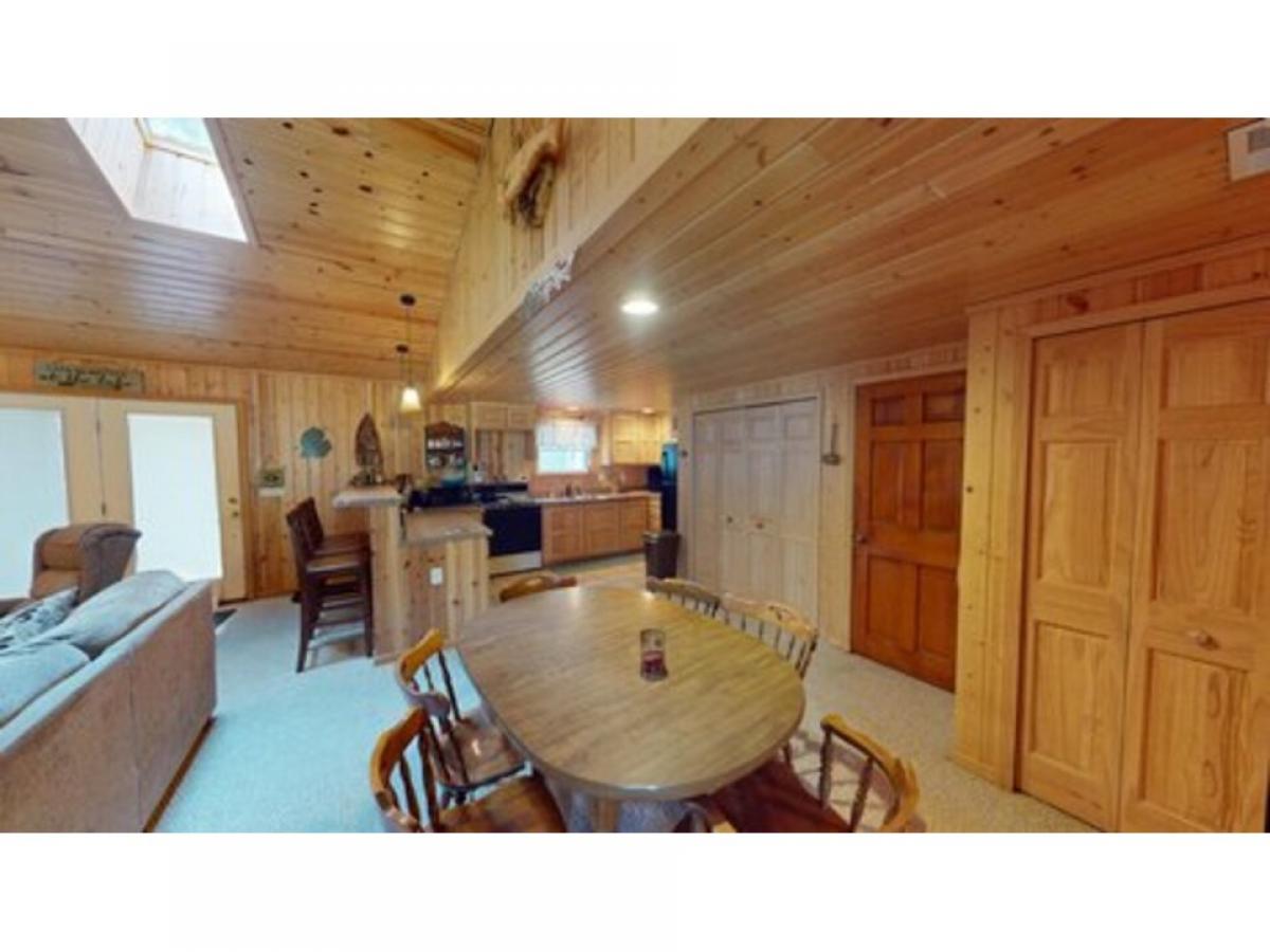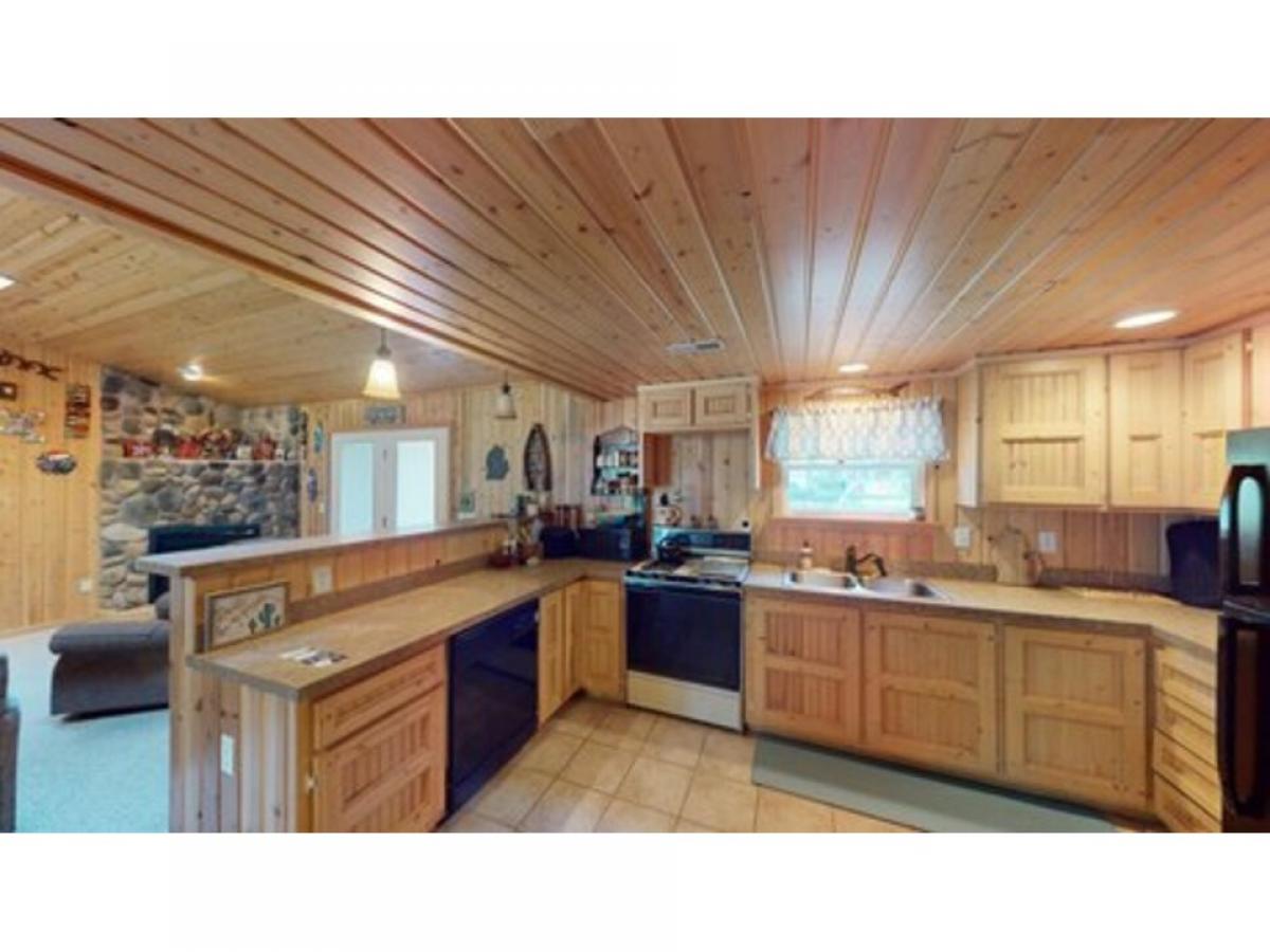 This Beautiful 3-bedroom, 1 bath home features an open concept with vault ceilings great for family gatherings. The two Lot property has a great back yard for outdoor entertaining. Well-designed concrete patio, firepit and string lighting for nighttime functions. Attached 1 car garage and new shed 10' x 16' perfect for summer & winter toys. Great for year around living or vacation home. Walking distance from road end lake access. Must See Property!
