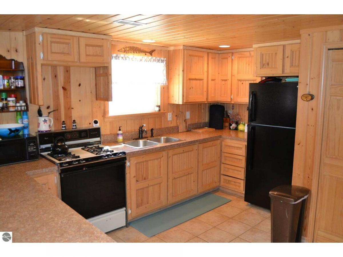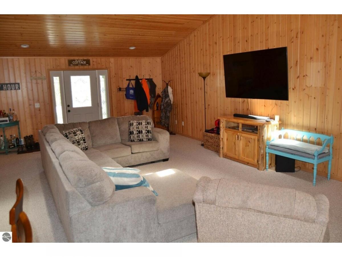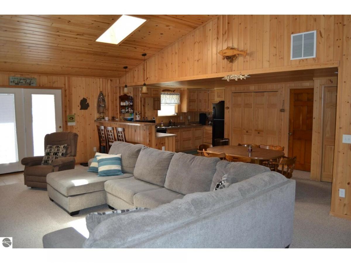 This Beautiful 3-bedroom, 1 bath home features an open concept with vault ceilings great for family gatherings. The two Lot property has a great back yard for outdoor entertaining. Well-designed concrete patio, firepit and string lighting for nighttime functions. Attached 1 car garage and new shed 10’ x 16’ perfect for summer & winter toys. Great for year around living or vacation home. Walking distance from road end lake access.