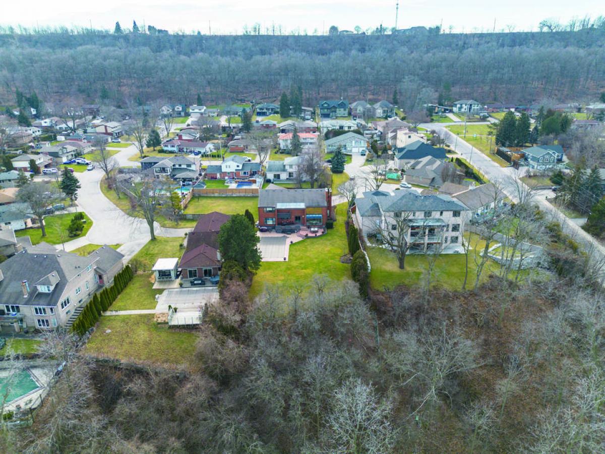 Make yourself at home in this charming, contemporary residence situated on 0.83 acres of tranquil private land & boasting approx 6,100 sf throughout in sought after Stoney Creek. Grand foyer w/ open to above ceilings welcomes you in & immediately showcases the prodigious living room w/ flr to ceiling gas fireplace designed w/ a stone surround & expansive windows bringing in natural light. Exceptional flr plan provides a sneak peak of the dining & great room from the front entrance & creates a seamless transition from room to room. Chef's gourmet kitchen overlooking the great room w/ soaring ceiling heights fts granite countertops, b/i appliances, an eat-in area & ample upper & lower cabinetry space w/ pantry around the corner. Main flr bedroom perfect as a nanny or in-law suite. Above is where you will locate your primary bdrm w/ an elegant 5pc ensuite, w/i closet & a lg balcony overlooking the meticulous grounds w/ pool. 3 more bdrms down the hall w/ their own captivating design details that share a 5pc ensuite. The bsmt fts a den w/ ensuite + a lg rec area & family room. Remarkable backyard oasis w/ swimming pool, patio w/ stone interlocking & ample green space for the little ones to run around! Engineered Hrdwd flrs in many rooms!