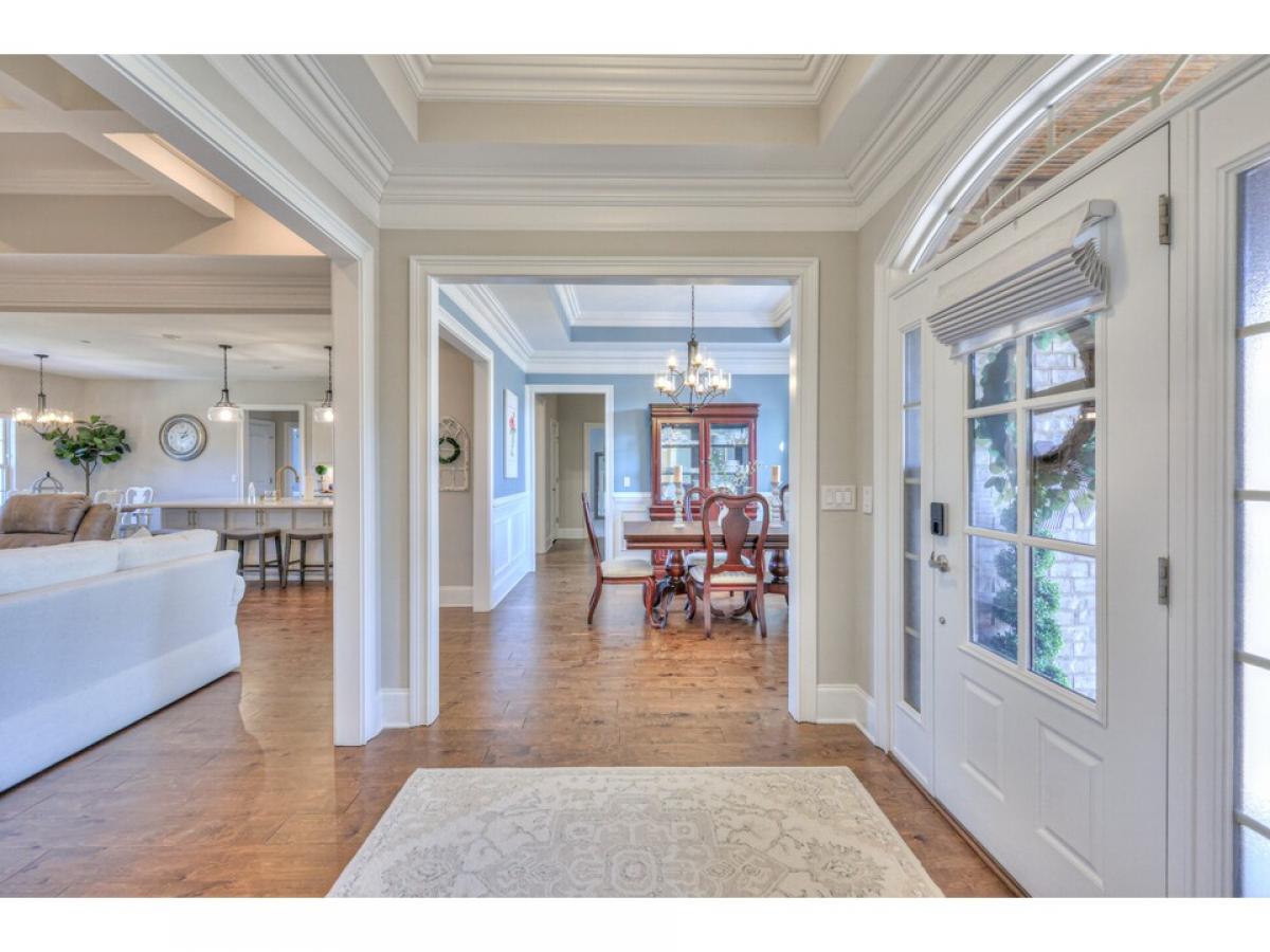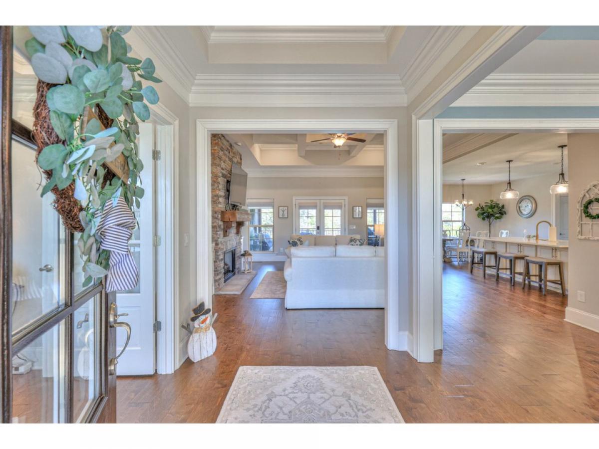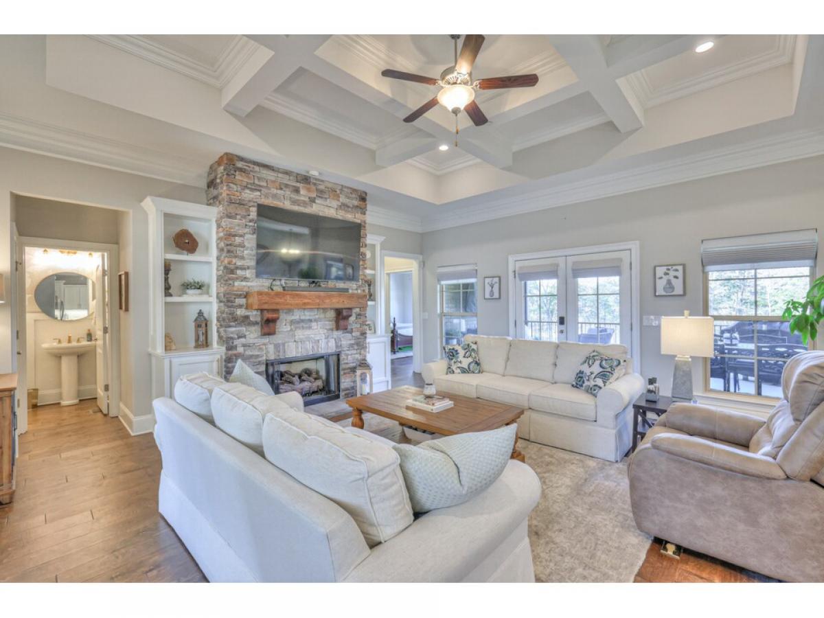 Discover the perfect blend of privacy and charm in this beautifully maintained home, nestled on a private lot in the sought-after Eulas Glen Subdivision. Surrounded by mature trees and backing onto common space, this property offers a serene retreat just minutes from everyday conveniences. Step inside to a bright and inviting open-concept layout, featuring 3 of the 4 bedrooms on the main level. The remodeled kitchen includes custom white cabinetry, quartz countertops, a large island, and two pantries. The main living area impresses with its coffered ceiling, gas stone fireplace, custom built -ins, and designer Roman shades adorning every window. The living room seamlessly extends to an oversized back porch and a custom deck-perfect for relaxing or entertaining. The primary suite offers a bathroom with dual vanities, a large walk-in shower, and a custom-designed closet. Two additional bedrooms on the main level share a Jack-and-Jill bathroom, each featuring oversized custom closets. Additional highlights include a formal dining room with wainscoting, a private office with coffered ceilings, and a well-equipped laundry room with built-in cabinetry and a sink. Upstairs, enjoy a spacious bonus room and an adjoining hobby room or toy room, plus a fourth bedroom with a walk-in closet and a full bathroom. This level also provides ample storage with two large walk-in attic spaces and a linen closet. The three-car garage is designed for ultimate functionality, featuring professionally installed epoxy flooring, a sink with cabinetry, and an overhead storage unit. Smart home upgrades include smart lighting, smart thermostats, a Ring doorbell, digital locks on both the front and back door, and a water softener/filtration system. With extensive upgrades throughout and a setting that feels like a private getaway, this home is a rare find. Don#xe2;#x80;#x99;t miss the opportunity to make it yours! A detailed list of upgrades and improvements is available in the listing attachments.