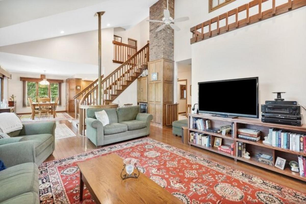Welcome to 130 Wales Rd! Original owner and Architect Keith Vail custom designed this year round home nestled on a quiet cove located on Staffordville Lake. Staffordville Lake is private and allows motor boats, and is perfect for swimming, fishing, kayaking, boating and water sports. This home was built for entertaining a crowd, and it can! The lake side of the house features wall to wall windows, 2 decks on the first and second story totaling over 1500 square feet, plus an additional 1000 sq ft patio outside the full walk out basement. Inside features an open floor layout with fantastic water views and flexible floor plan. There is a bedroom on the first floor but it was originally designed as an at home office with its own private entrance. Upstairs features three more bedrooms, two which have lofts for additional sleeping room, plus a huge family room on the lower level with wall to wall windows, walk out to a stone patio, bar, fireplace, full bath and Billiard room. Need more sleeping space? Additional room is available on the lower level. A fire pole adds fun and goes from the top level to the lower level. 3 car garage and shed plus an enclosed dog pen, as well as your own private paved boat launch and boat lift with over 200 feet of private shoreline completes the outside space. Owner has been meticulous with maintenance and stains deck and house every two years, has a less than 5 year old roof, and a brand new heating/cooling system with humidifier and air purifier.For more details: