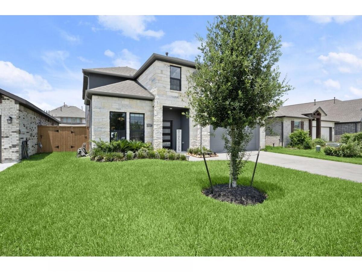 This GORGEOUS home built in 2021 in LAGO MAR shows like a model amp; has new light fixtures throughout!! Foyer greets you w/ french doors to your study, as well as a convenient downstairs powder bath. Stunning wrought iron staircase, amp; open-concept layout from the family room w/ 20 ft ceilings to the inviting dining space amp; chef#039;s kitchen. The kitchen comes w/ sleek granite countertops, subway tile backsplash, stainless appliances amp; a large island. Right off the kitchen is the entry to your laundry room/mud space amp; 2 car garage. Primary retreat features a huge walk-in closet amp; spa-like bathroom that has dual sinks, soaking tub amp; walk-in shower. Second floor was built for family fun sporting a media amp; game room. Additionally, upstairs has 3 more bedrooms, all containing large walk-in closets, plus another full bathroom. Lago Mar offers 12-acre Crystal Lagoon, white sand beach, resort-style pool, splash pad, fitness center, restaurant amp; more. YouTube HD Video: https://youtu.be/q83g5CUWsDU