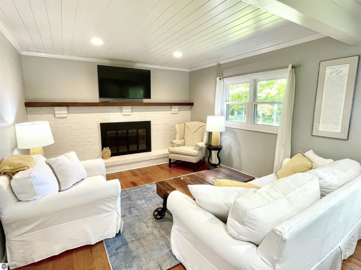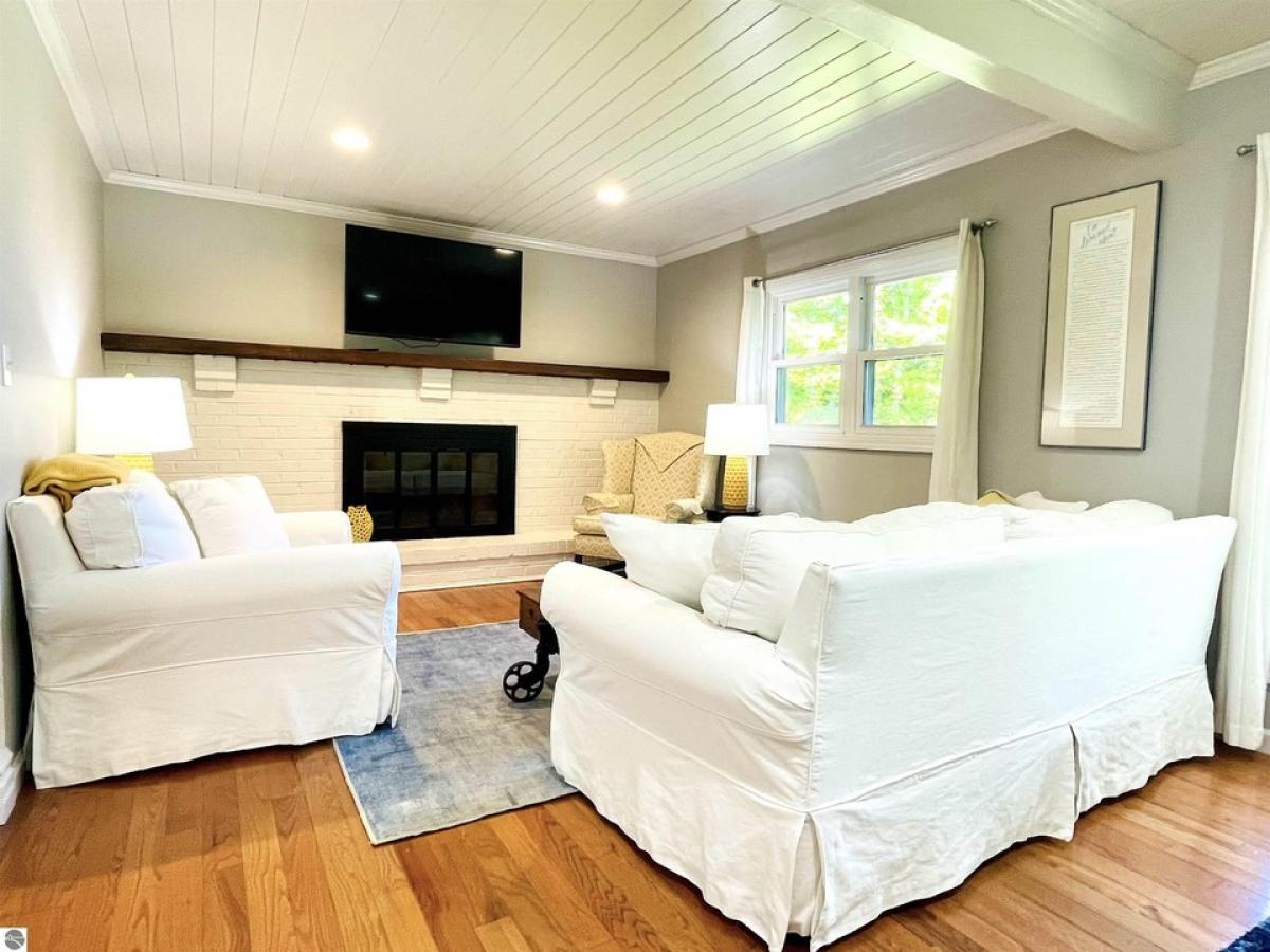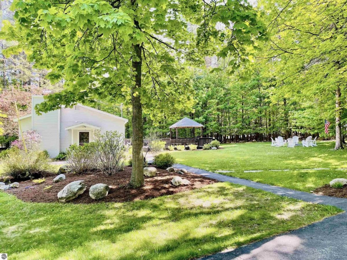 CHARMING COTTAGE FLAIR accompanies this 3BR, 2 bath home with shared Torch Lake frontage across the street. Airy, bright and remodeled on the inside with tongue-&-groove and bead-board ceilings, real hardwood floors, a light and bright modern kitchen with granite countertops, subway tile backsplash, and stainless appliances. A natural wood-burning fireplace is the focal point of the cozy living room. The primary bedroom features large closets and a remodeled bathroom with large walk-in shower and granite countertops. Updated large laundry/mud room with ample cabinets and additional refrigerator. New furnace, central air conditioning, on-demand hot water heater to name a few comfort features. Inside the oversized garage has accents resembling timber-frame barns of days past, with workshop space and plenty of room for all your storage needs. The manicured grounds welcoming you to the spacious deck & covered gazebo overlooking the private large yard and fire-pit situated on 1.7 partially wooded acres with seasonal & peek-a-boo views of Torch Lake; providing a quiet and serene setting. The shared access on Torch Lake is ideal for kayaking, paddleboarding, swimming, or simply relaxing at the water's edge. Nearby towns and villages offer dining, shopping, gallery browsing, wineries, breweries, beaches, hiking trails, skiing, golf, and more. An ideal setup for a summer getaway or year-round home. All of this and it comes FURNISHED.