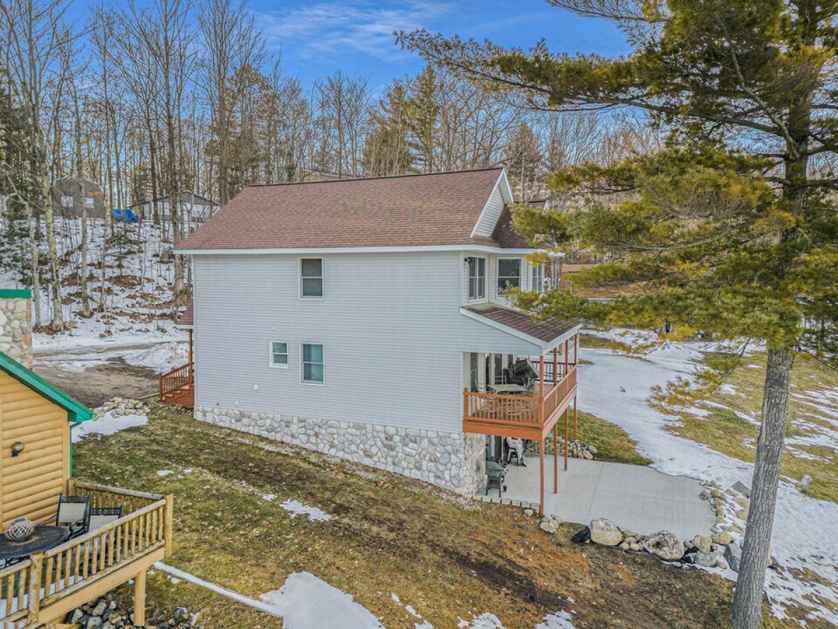 Indulge in lakeside luxury with this immaculate 3 bedroom, 4 bath home on the shores of Mullett Lake. Stunning lake views grace most rooms, providing a picturesque backdrop to your everyday life. Whether entertaining in the spacious living areas or enjoying the beauty of nature on the covered deck, the tranquility of the lake is within sight. Recent updates include central AC, granite kitchen counters, cement lakeside patio and landscaping, & new appliances. The deep lot extends into a wooded area, offering both privacy and tranquility. The 18x56 pole barn stands ready to house your tools and equipment. Situated right in the middle of the Inland Waterway, you can boat from Lake Huron to Pickerel Lake. Seize the opportunity to call this home yours, and unlock the door to waterfront living!