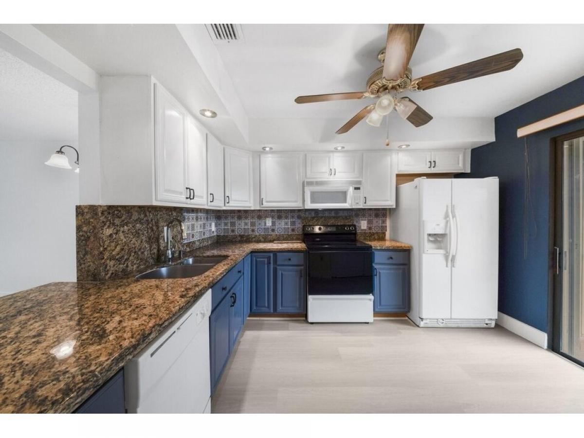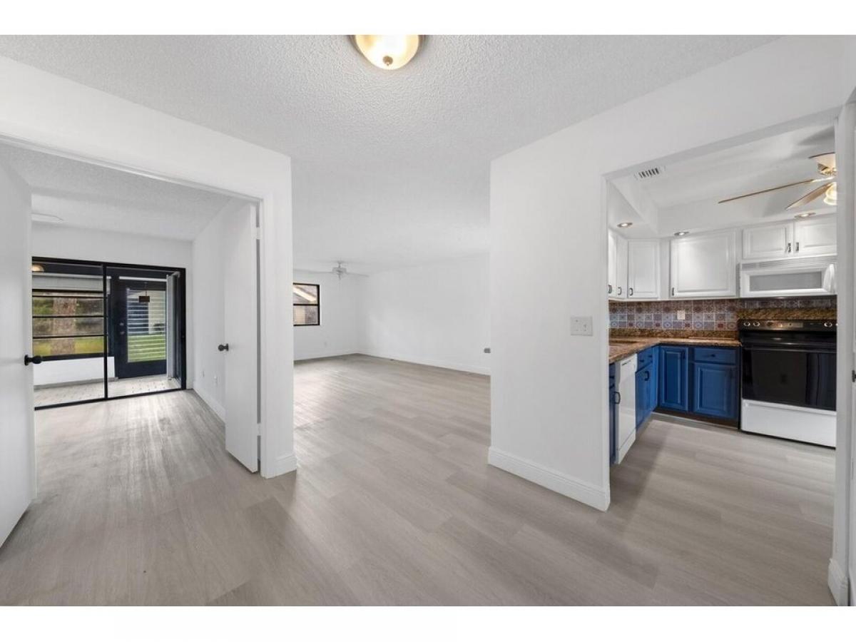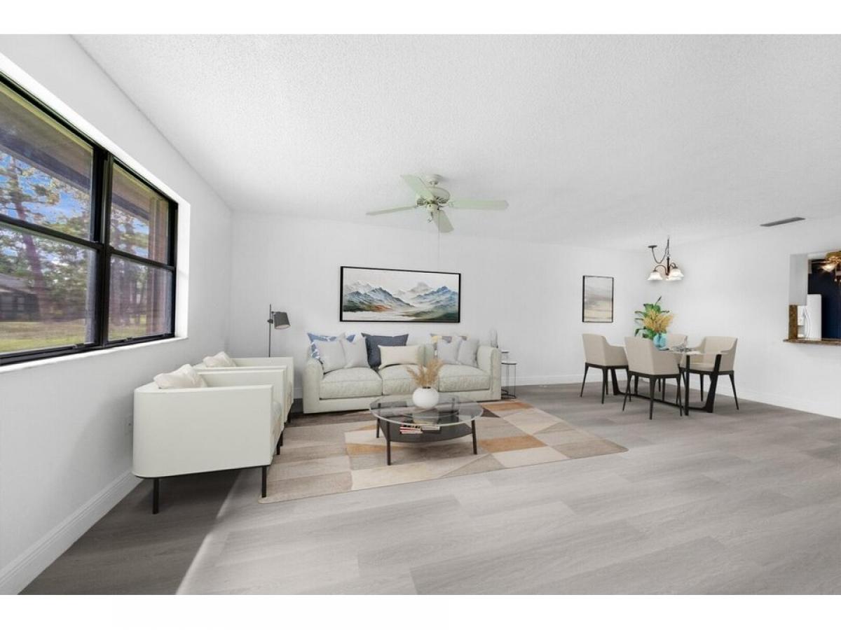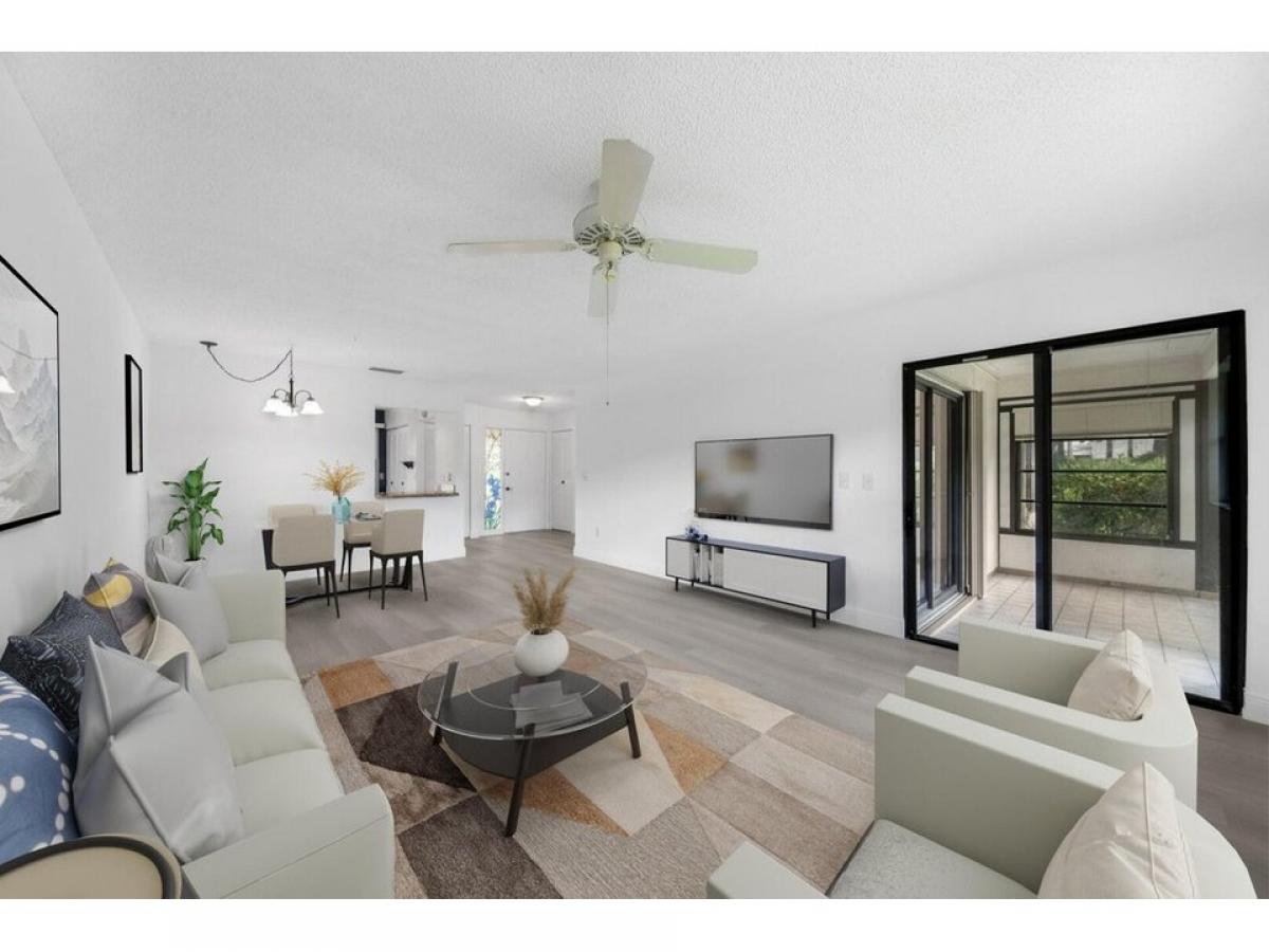 This charming 2-bedroom, 2-bath villa in Strathmore offers a comfortable and inviting living space, complete with accordion shutters for added security and peace of mind. The open-concept living and dining areas feature neutral flooring throughout, creating a seamless flow. The well-appointed kitchen boasts granite countertops, a snack bar, and a convenient slider leading to a private screen-enclosed patio with a peaceful garden view. The spacious primary bedroom is newly carpeted and includes an en-suite bath for added privacy and convenience. The second bedroom also offers a slider to the patio, perfect for enjoying the outdoors. Enjoy a tranquil lifestyle in this beautifully maintained villa, where the accordion shutters provide both safety and style.