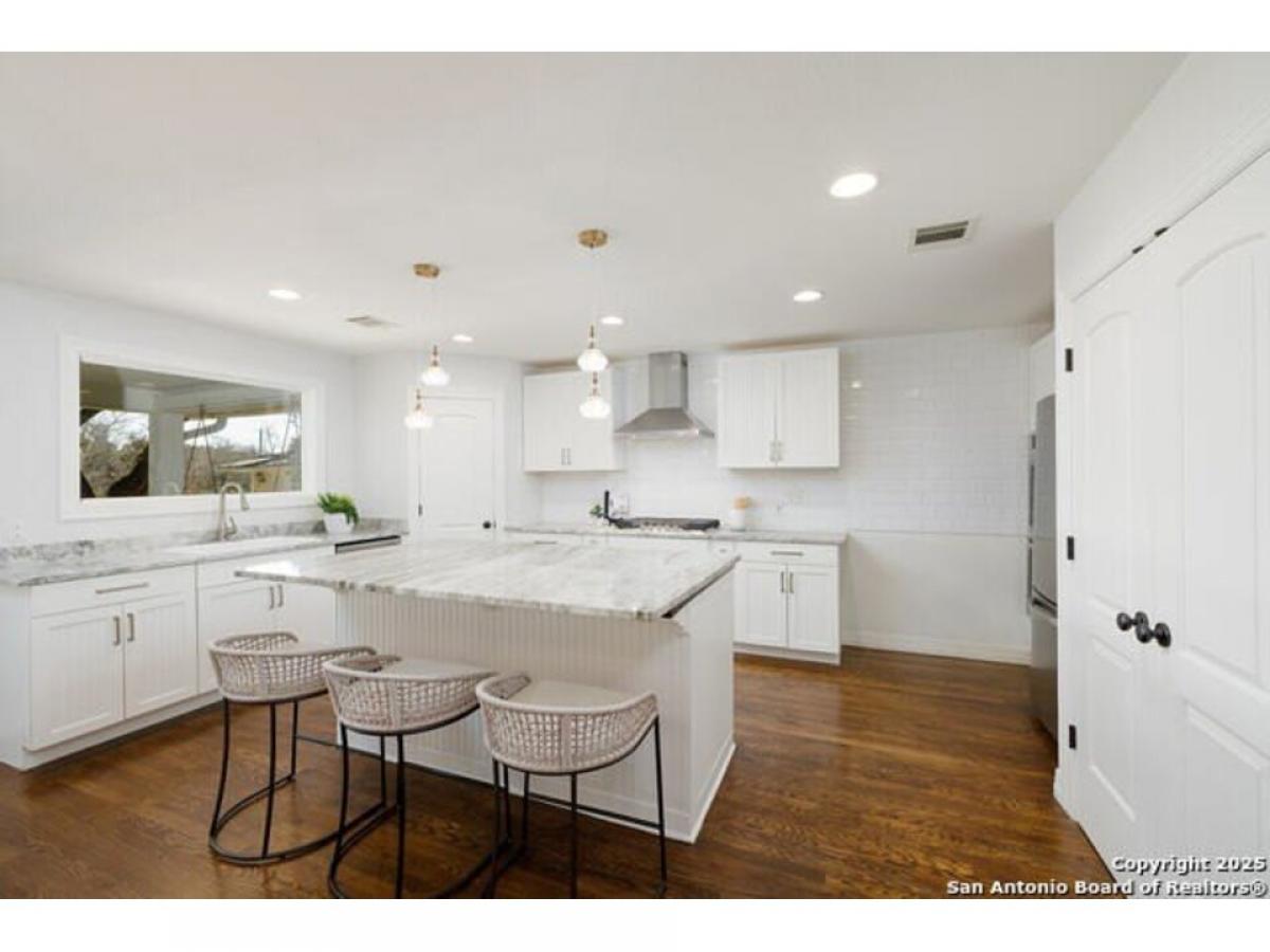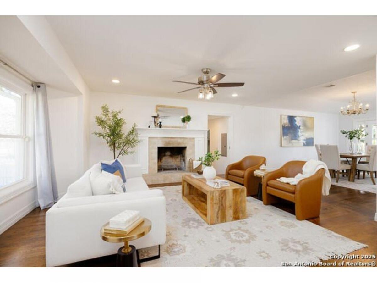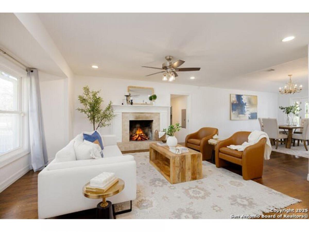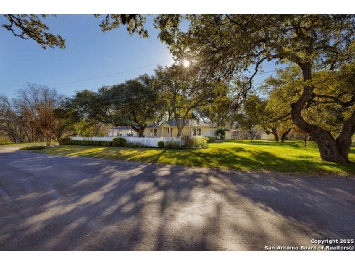 Magnificent 133 North School Street, Boerne, Texas - A Truly Exceptional Property. Nestled in the heart of historic Boerne, Texas, this extraordinary 1.6+/-acre property combines the best of private, serene living with unmatched convenience. Surrounded by towering mature live oaks and offering a tranquil, park-like setting, this remarkable home provides a rare blend of beauty, comfort, and versatility. With its charming white picket fence enhancing the home#039;s curb appeal, this property is truly a one-of-a-kind gem in the heart of town. Located just a short stroll from the vibrant downtown area and within walking distance to Boerne ISD middle school, this home offers unparalleled convenience. Imagine walking to your favorite coffee shop, local stores, and dining establishments, while still enjoying the peace and privacy of your sprawling estate. The property is an oasis of natural beauty, featuring nearly 1.6 acres of prime real estate, complete with stunning live oaks that provide shade, serenity, and a sense of seclusion, yet all within the city limits. The meticulously maintained single-story home boasts approximately 2,700 square feet of beautifully designed living space. With 3 spacious bedrooms and 3 full bathrooms, this home has been thoughtfully updated and designed to cater to every need. The open floor plan, with tons of natural light and an abundance of open space, creates a welcoming atmosphere that#039;s perfect for family gatherings and entertaining guests. Gorgeous Interior: Beautiful wood floors grace the living areas, while recently repainted walls and refinished wood doors enhance the home#039;s elegant character. The bedrooms offers comfort and style. Luxurious Living Room: The centerpiece of the home is the grand living room featuring a stunning wood-burning fireplace, complemented by stylish light fixtures and large windows that let in plenty of natural light. A culinary enthusiast#039;s dream, the oversized kitchen features quartz countertops, a large island, and new custom cabinetry. Double pantries, high-end appliances including double ovens, a gas stove, and a stainless-steel refrigerator provide all the tools needed for preparing family meals or hosting dinner parties. A separate cleaning and small appliance pantry add to the functionality of this impressive space. Entertainer#039;s Dream: Wonderful home offering an ideal space for family movie nights or hosting game-day gatherings. With endless possibilities, it#039;s a space that can adapt to your family#039;s needs. Home Office: A separate office with workspace provides the perfect setting for working from home, ensuring privacy and focus. The expansive primary suite is a true retreat, featuring serene views of the lush backyard and surrounding nature. Relax in the cozy sitting area or unwind in the spacious bedroom space as you enjoy the picturesque scenery. The suite also includes large his-and-her closets, and an elegant ensuite bathroom for added luxury. Step outside to discover a private, resort-style backyard that will leave you speechless. Whether you#039;re hosting a barbecue on the large, covered patio, enjoying a quiet relaxing coffee in the early morning, or simply relaxing under the shade of the towering oak trees, this outdoor space offers something for everyone. Outdoor patio space provides ample space for serving food and drinks, making it perfect for entertaining. The large, flat open area is perfect for entertaining or could cater to 4H projects, shuffleboard, or even a nature walks. Gather around the firepit with friends and family, enjoying cool evenings under the stars. A pathway of large stones leads to another outdoor patio surrounded by mature trees, offering a quiet escape where you can soak in the natural beauty. This property also features a spacious storage building/studio-offering a perfect space for a workshop, art studio. The property#039;s proximity to Cibolo Creek enhances its charm and appeal, offering easy access to nature and a peaceful retreat r