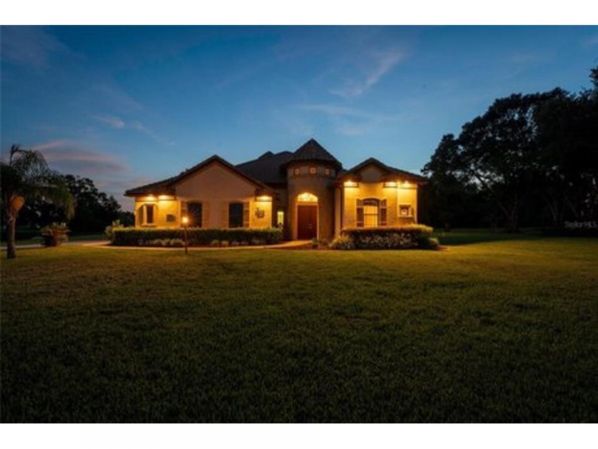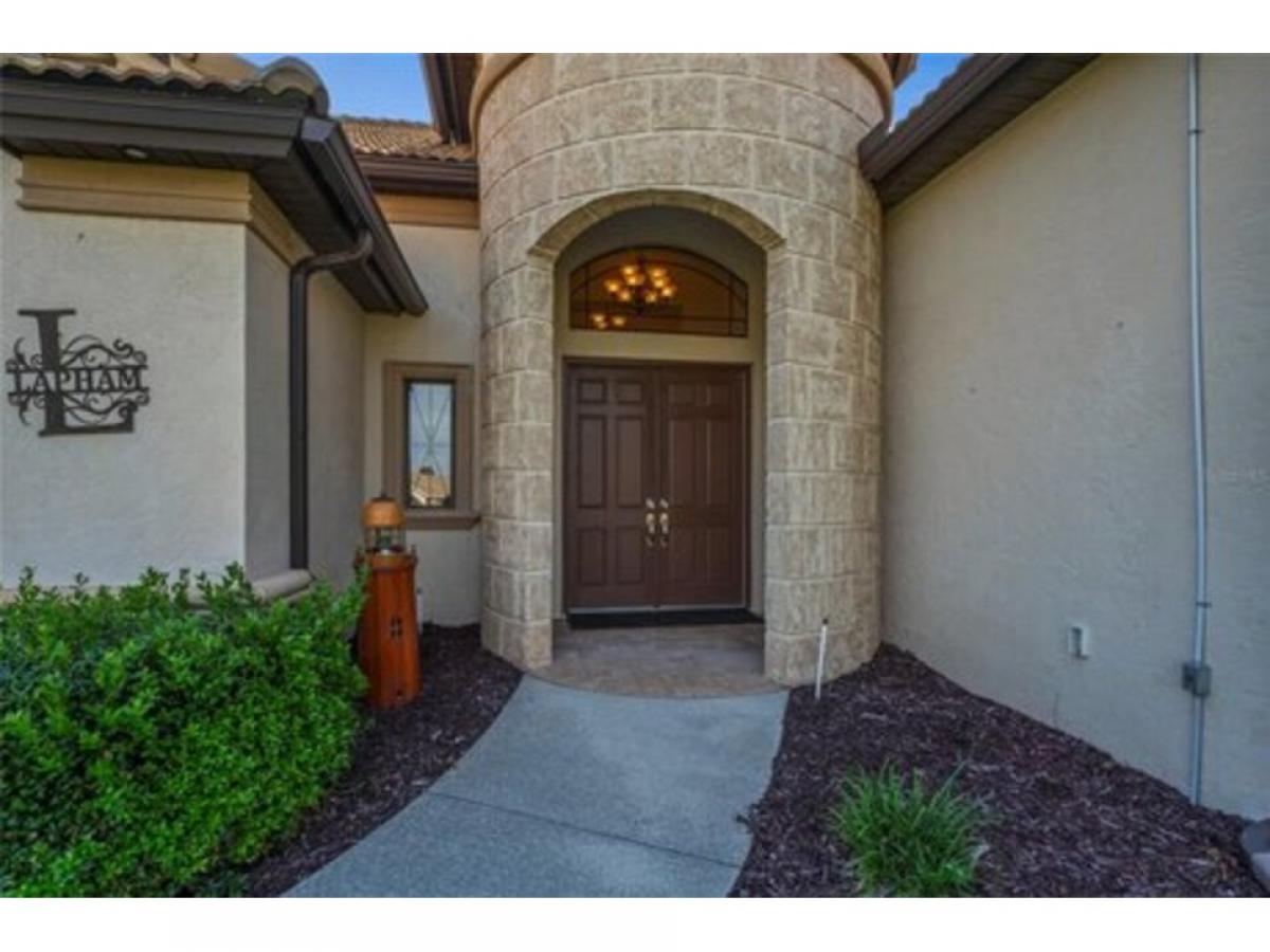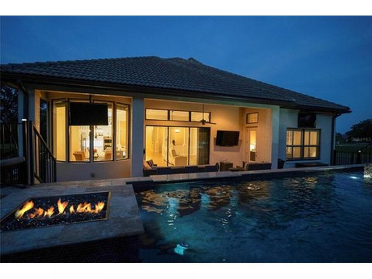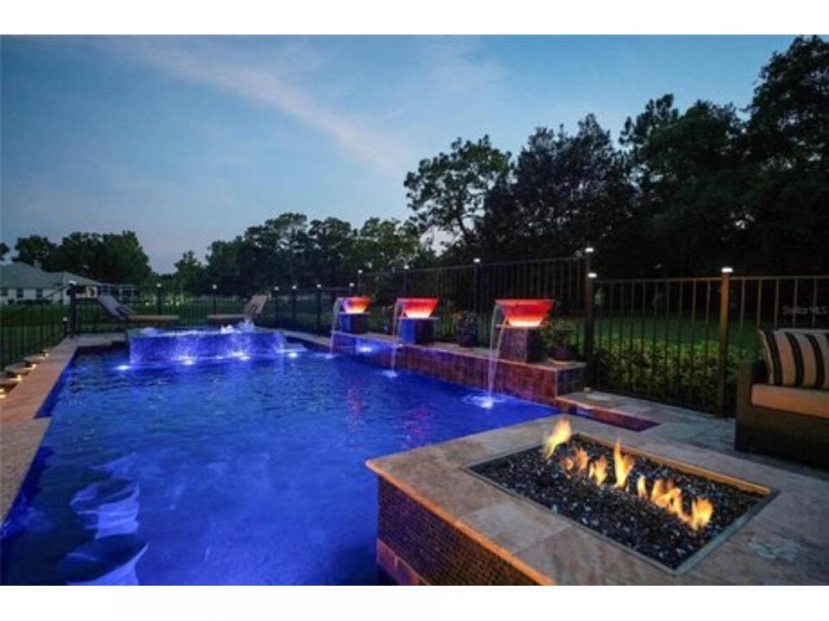 WOW! You#039;ll be the envy of all your Northern friends and family with this quot;CASTLE-LIKEquot; home with such a unique, resort-like pool and swim-up bar, on almost a full acre! The turret-style double-door entry is very inviting, and you#039;ll enter the foyer with double-tray ceilings, insets, and recessed lighting. This custom Gunite pool has bubblers, fire bowls, a lit circular staircase leading to the built-in hot tub that flows into the pool, pool lighting, and a fire pit area built into the other side of the pool. There are also swim-up barstools and a place to eat/drink on a granite table top along the side of the pool!! Three outdoor tv#039;s (2 in weather-resistant cases)stay. The rear patio has travertine pavers and another seating area. The pool area is fenced and lined with shrubs for privacy. THERE IS NO HOUSE TO THE LEFT SIDE for even more privacy! The kitchen was all newly renovated with Frigidaire Professional appliances, such as a double oven, dishwasher, disposal, and a commercial refrigerator and freezer that you#039;ll love. Bosch 6 burner gas stove, new soft-close cabinets with fantastic crown molding, two garbage can pull-outs, touchless faucet, farmer sink, above/under counter lighting, massive granite island with seating, updated lighting and eat-in turret! The kitchen is open to the living room with ceramic floors, an enormous display wall entertainment center with a built-in electric fireplace, 12 ft ceilings, and remote blinds. The formal dining room and separate office have hardwood floors, pillars, and 12 ft ceilings. Whole house central vac system with hide-a-hose. The primary bedroom has plantation shutters, a tray ceiling, a sitting area, a walk-in closet, and access to the pool. The Ensuite has a huge walk-in shower, water closet, double-bowl sinks, soaker tub, and updated lighting. Huge over-sized garage, tankless water heater and invisible dog fence