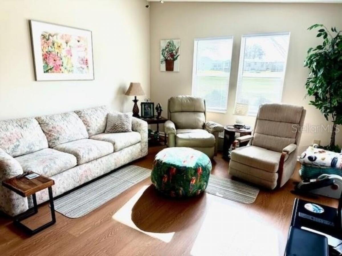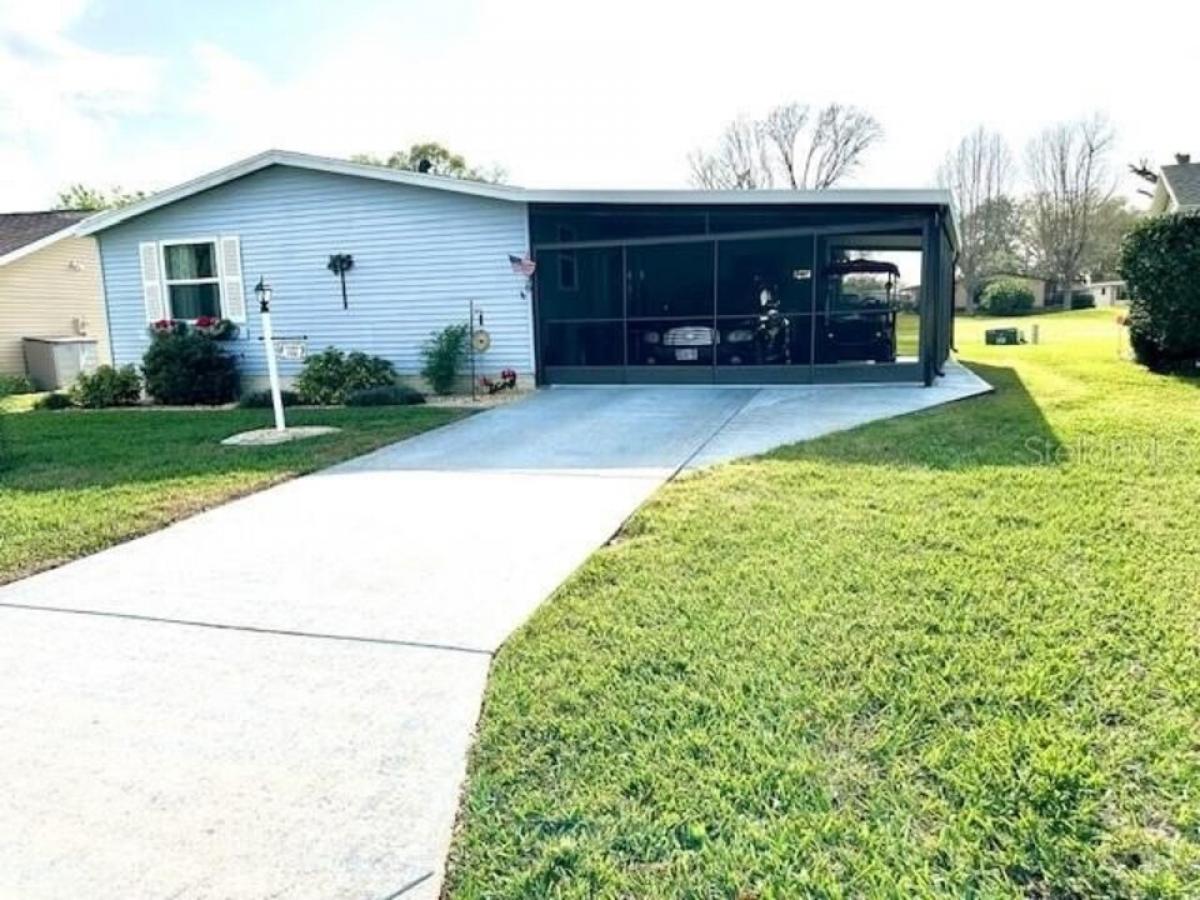 Watch your nightly sunsets in your covered and screened lanai and birdcage on the Golf Course! This updated home is being sold TURNKEY w/2021 Yamaha 4 Seater Golf Cart!! The new Corning roof is Fiberglass and newer double pain windows and upgraded Sprinkler System plus the enclosed double garage with sliding screens. The spacious Living dining room has vaulted ceiling and slider to the lanai. The kitchen has updated appliances and granite countertops. Watch the golfers on the 2nd amp; 3rd Fairways of Silver Lake Golf Course. Move-in ready so you can enjoy the many amenities of The Villages Lifestyle not to mention nearby shopping and dining. Your nearest Villages Town Square is Spanish Springs which has entertainment nightly. The Villages is located between Ocala amp; Orlando and has golf, tennis, pickleball, 200 pools, Recreation facilities, dog parks and 3000 activities on a monthly basis.