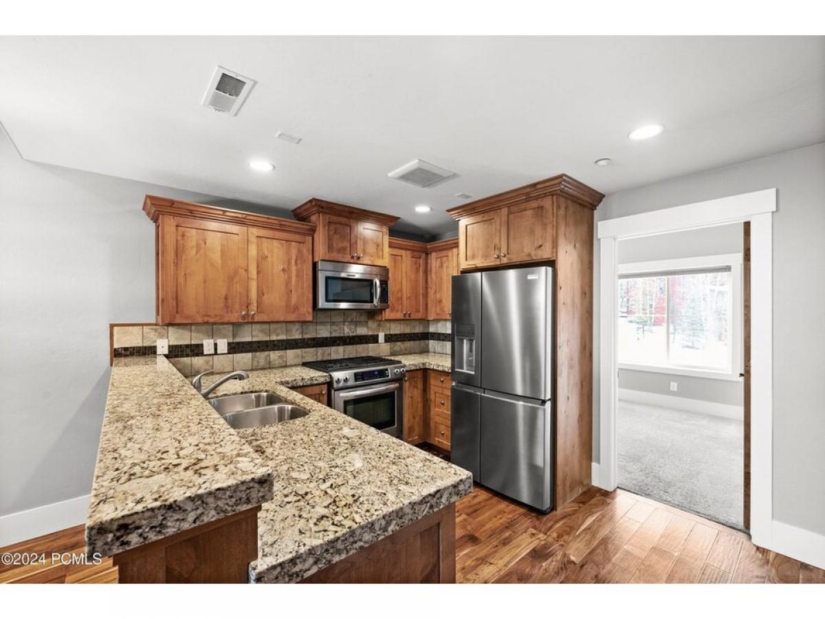 Welcome to your dream townhome, perfectly situated for an active mountain lifestyle. This beautifully designed residence blends modern comforts with breathtaking natural surroundings. The open-concept main floor features a kitchen with stainless steel appliances, a gas range, and a peninsula that invites gathering. The adjacent family room, complete with a stone gas fireplace, flows effortlessly onto a covered deck overlooking tranquil open spacemdash;ideal for morning coffee or sunset toasts. The thoughtfully designed layout offers one bedroom and a full bath on the main level, with the primary suite and a second bedroom upstairs. A two-car tandem garage and mudroom provide ample storage for outdoor equipment. Park#039;s Edge amenities include a newly remodeled clubhouse with a fitness center, entertaining space, and conference room. Outdoor amenities include a pool, hot tub, picnic areas, a playground, and easy trail access, offering a resort-style experience just steps from your door. Located 15 minutes from Historic Main Street and three world-class ski resorts, it#039;s perfect as a full-time home, weekend escape, or investment property (nightly or long rentals allowed). Don#039;t miss your chance to live the Park City lifestyle.