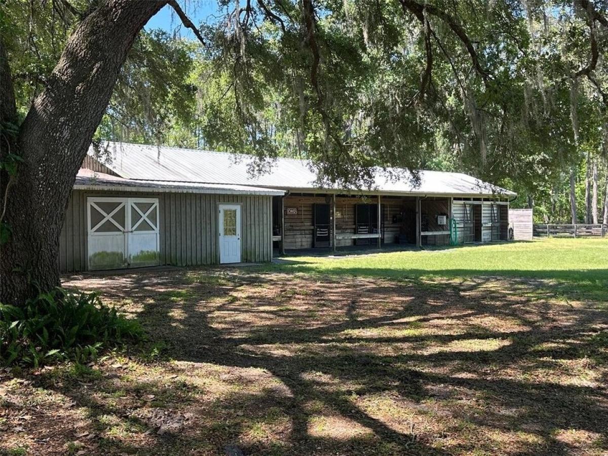 Discover the epitome of equestrian living with this enchanting 10-acre farm located on the prestigious Millionaires Row of Reddick, Florida. This immaculate property is a haven for horse enthusiasts and families alike, blending functionality with rustic charm. Step into a spacious 3-bedroom, 2-bathroom home that offers panoramic views of verdant landscapes and your private jumping area. Ideal for equestrian training, this farm features a state-of-the-art horse barn equipped with an office, tack and feed room, and six expansive stalls, catering to both amateur riders and professional trainers. Relax by the pool in the comfort of your home while enjoying the serene vista of rolling paddocks and majestic oaks. The pool area, strategically placed to provide a view of the action in the jumping arena, is perfect for leisurely afternoons or entertaining guests with a refreshing cocktail. Security and privacy are paramount, with a gated entrance and a newly paved circular driveway that adds a touch of sophistication to the property. Numerous trees provide a lush barrier, creating an intimate habitat for wildlife and a peaceful retreat for residents. Moreover, the property includes two separate rental/guest homes, offering potential income opportunities or additional space for visiting guests. Close to community essentials, this farm is just a short drive from local markets and scenic parks, including Majestic Oak, which provides outdoor recreation for nature lovers. This property is meticulously designed to provide luxury and functionality. It is a rare gem that offers a privileged lifestyle for those with discerning tastes. Schedule your exclusive tour today and experience the splendor of this unique equine retreat, where every day feels like a vacation.