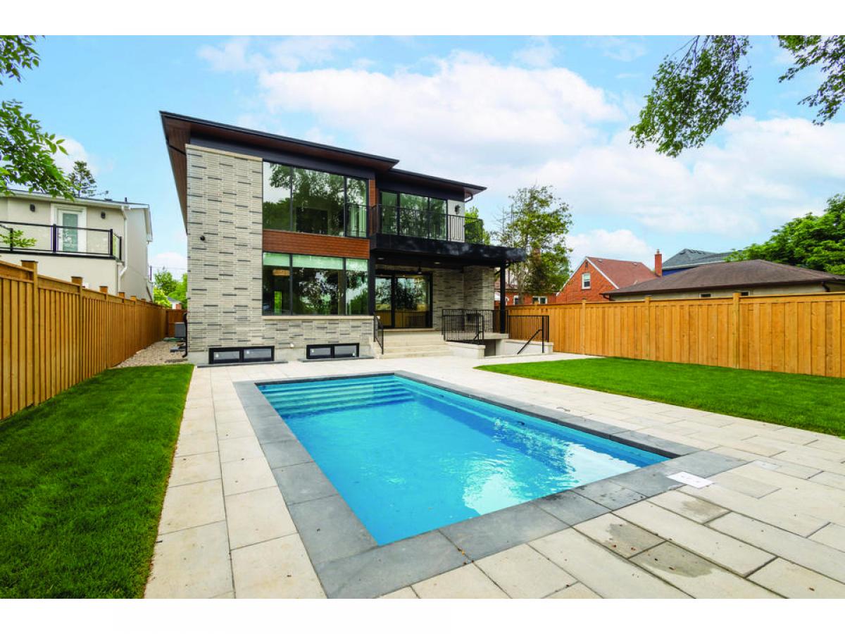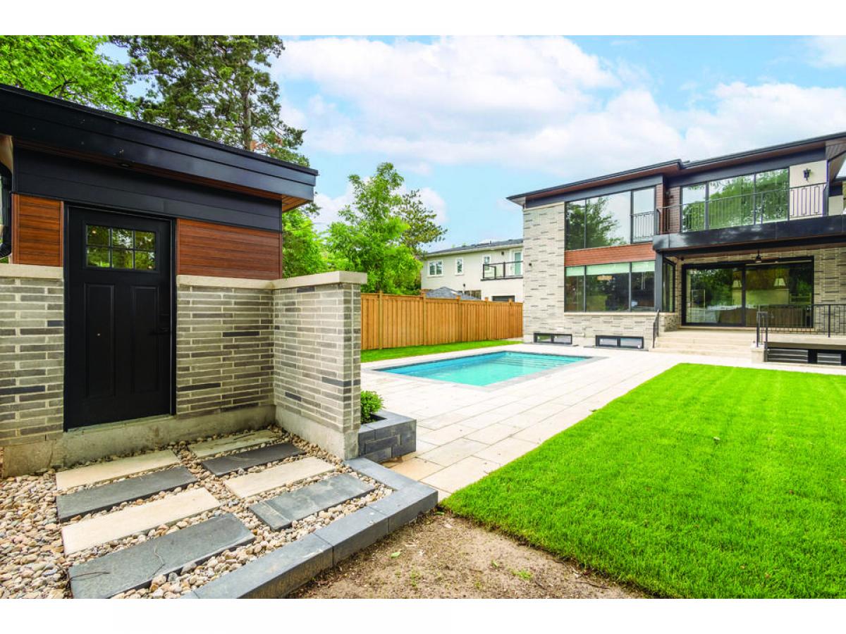 Brand new modern home in desirable Mineola on a large 50 x 150 ft lot. Approx 3,600 sq ft. Gorgeous modern design and decor. Open concept floor plan, hardwood throughout all levels, tons of pot lights and beautiful light fixtures, chef's kitchen with top of the line appliances, a huge center island and spectacular wine fridge for the avid aficionado. Main floor office and a large mud room leading to the outside. Bright master bedroom with large windows, a huge walk-in closet & a 5 pc en-suite plus 3 additional bedrooms all with their own en-suite baths. Finished open concept walk up basement with a recreation room, fireplace, wet bar, bedroom, 3 pc bath and cold room. Large backyard with a stone patio, outdoor fireplace & beautiful in ground pool. Great for entertaining.