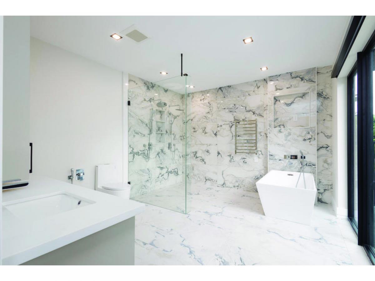 Brand new modern home in desirable Mineola on a large 50 x 150 ft lot. Approx 3,600 sq ft. Gorgeous modern design and decor. Open concept floor plan, hardwood throughout all levels, tons of pot lights and beautiful light fixtures, chef's kitchen with top of the line appliances, a huge center island and spectacular wine fridge for the avid aficionado. Main floor office and a large mud room leading to the outside. Bright master bedroom with large windows, a huge walk-in closet & a 5 pc en-suite plus 3 additional bedrooms all with their own en-suite baths. Finished open concept walk up basement with a recreation room, fireplace, wet bar, bedroom, 3 pc bath and cold room. Large backyard with a stone patio, outdoor fireplace & beautiful in ground pool. Great for entertaining.
