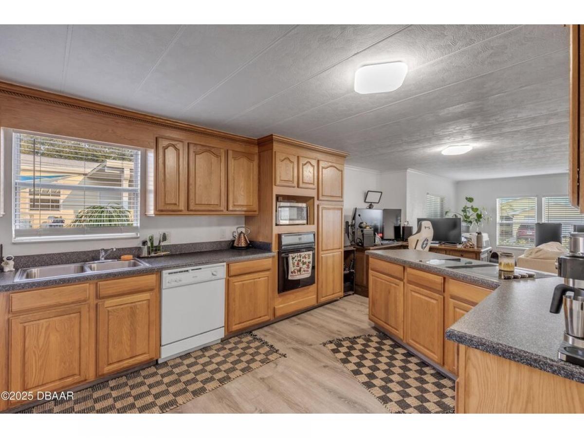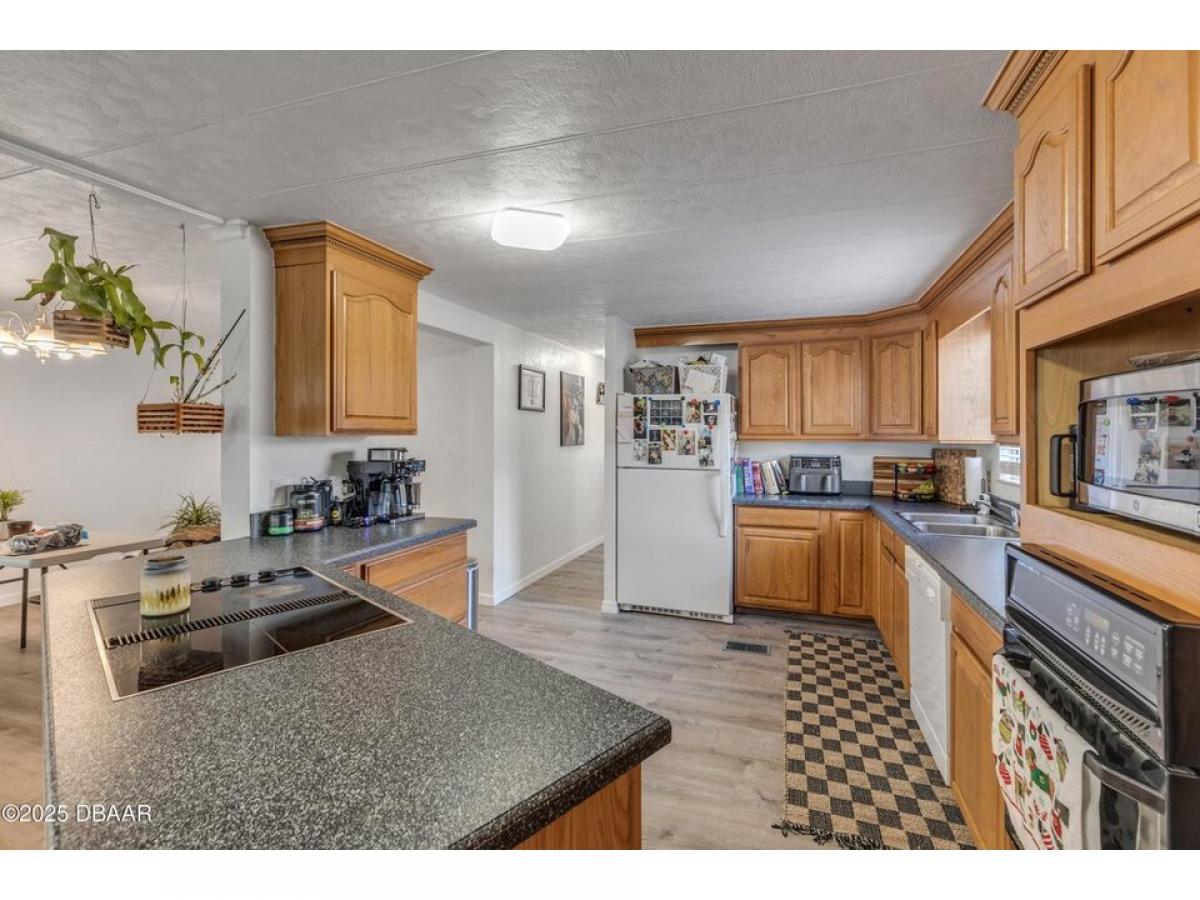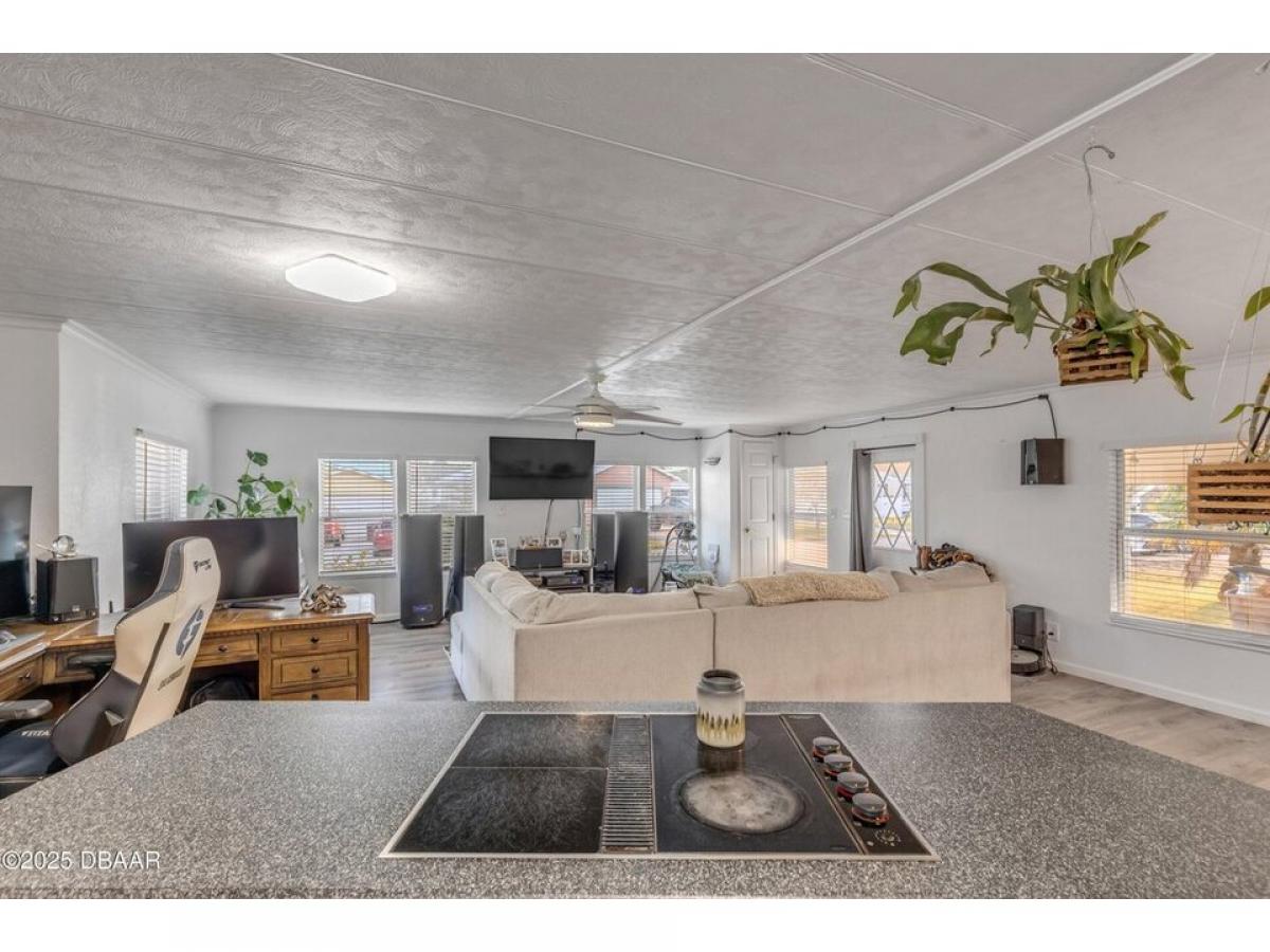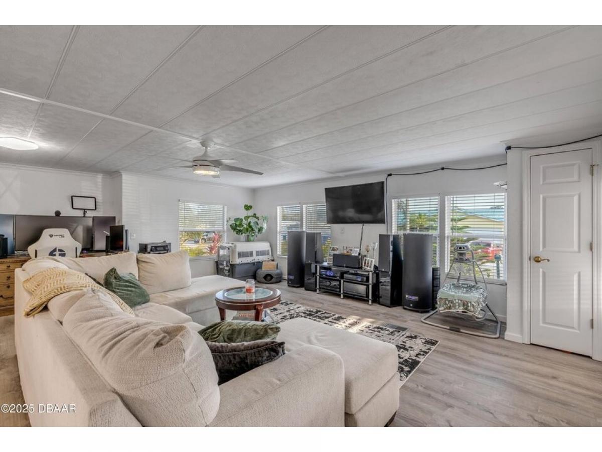 This intercoastal access canal front home presents endless possibilities for those seeking a coastal lifestyle. The property features two bedrooms and two bathrooms. The primary has a walk-in shower and dual sinks. The open floor plan offers a versatile canvas to craft your perfect retreat. There is luxury vinyl flooring throughout, and the living room allows you to enjoy tranquil canal views. A concrete seawall and a boathouse allowing for easy boat access, making it an ideal spot for boating and fishing enthusiasts. Additionally, the outdoor storage building is equipped with electricity for added convenience. With exceptional fishing just steps away, this home is a prime opportunity to fully embrace waterfront living.