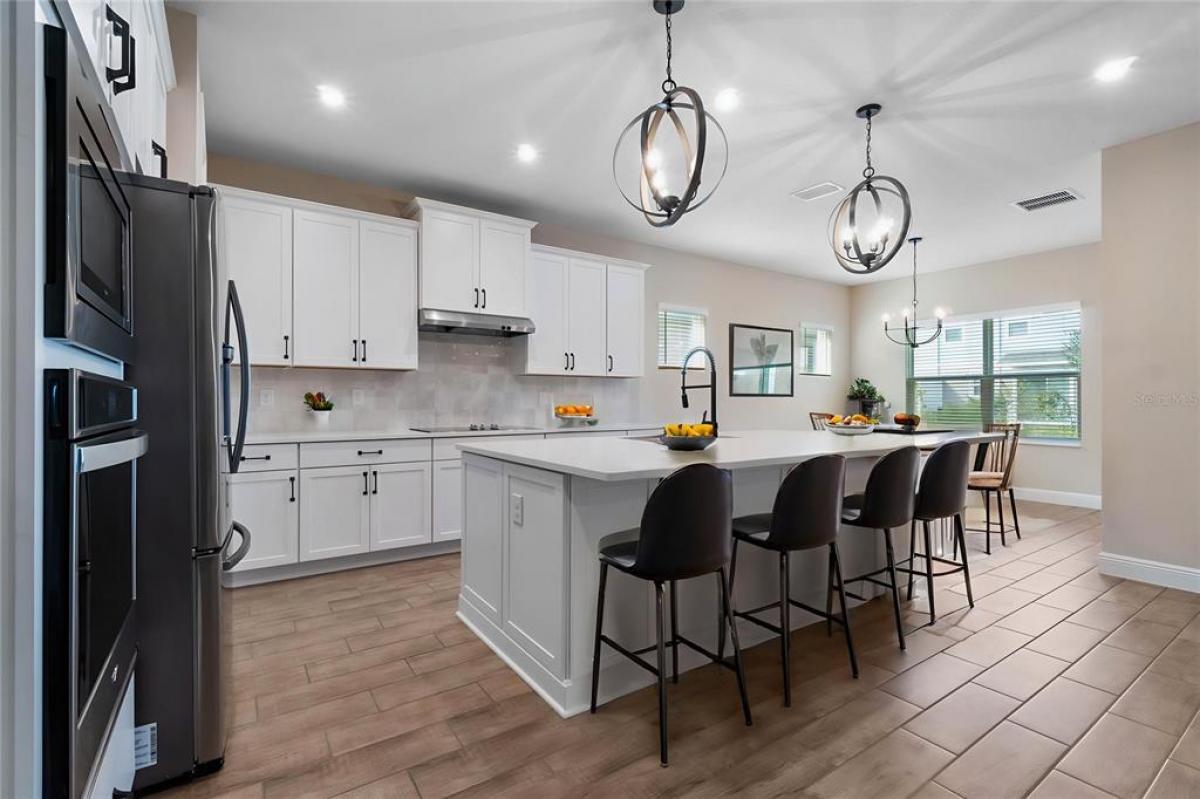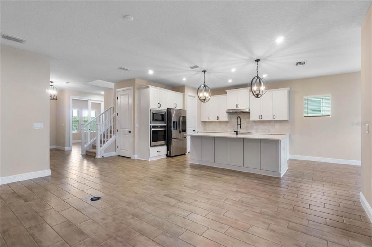 One or more photo(s) has been virtually staged. 5.25% ASSUMABLE RATE MORTGAGE AVAILABLE AS WELL! Welcome to 1352 Silo Dr, a beautiful newer construction home with 5 bedrooms, 3.5 bathrooms, plus an office/den and OVERSIZE UPSTAIRS LOFT! With just over 3,200 SqFt of living area, this home was BUILT IN 2023 and offers many custom features! Let's walk through the home: after walking up the pavered driveway and enter into the front door, you'll immediately notice the large spacious floor plan, WOOD LOOK TILE FLOORING, and PRIVATE OFFICE SPACE! Moving through into the main area, you can find the large great room, spacious GOURMET kitchen complete with oversized QUARTZ COUNTERS, all new upgraded stainless steel appliance, CUSTOM TILE BACKSPLASH, and large walk-in pantry, and additional dining room space. The primary bedroom suite is located on the first floor and offers a huge walk-in shower, soaking tub, dual vanity sinks with quartz counter tops, and generously sized walk-in closet space. The home also has a WHOLE HOUSE WATER FILTRATION SYSTEM with UV and WATER SOFTENER, as well as a RO WATER SYSTEM at the fridge. In addition, the backyard has a screened-in patio, offering a great outdoor living space! Moving on upstairs, the first room that you'll enter is the 19'x15' BONUS ROOM/LOFT, perfect for additional lounge space and game room! All bathrooms upstairs offer tiled showers with quartz counter vanities. The other 4 bedrooms upstairs offer an ample space for privacy. The HOA fee includes fiber optic cable! Close to major highways providing easy access to Orlando International Airport, the theme parks, Downtown Orlando, and the incredibly popular Lake Nona region which offers some of the best restaurants, shopping, and events in Orlando. Call now to schedule your private showing!