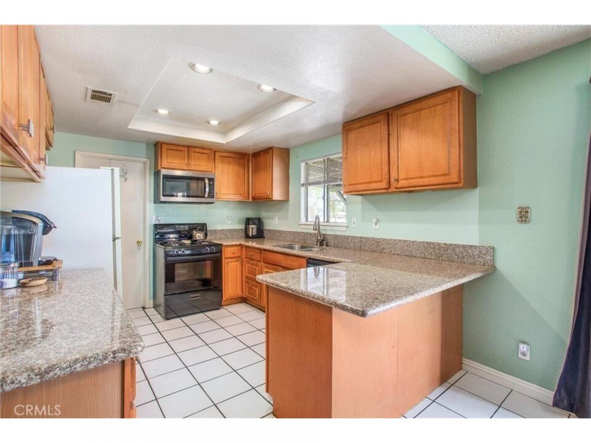 Located on the 3rd fairway of the Green Tree golf course, this 3-bedroom, 2-bath home offers comfortable living with scenic views and privacy. As you enter, you#039;re welcomed by a spacious family room featuring a cozy gas fireplace with a decorative white brick surround. The space flows into the nearby dining area and granite kitchen, which includes a gas range, built-in microwave, dishwasher, refrigerator, recessed lighting, and sliding door access to the rear yard. Laminate wood flooring runs through the main living areas, while tile covers the kitchen, bathrooms, and adjacent dining space. All three bedrooms are carpeted in a neutral tone, and decorative paint is found throughout. The two secondary bedrooms are both nicely sized and share a nearby full bathroom complete with a shower/tub combo. The spacious primary suite features an en-suite bath complete with a glass-enclosed walk-in shower. The laundry room is conveniently located off the kitchen and comes complete with a washer and dryer and additional storage space. The exterior of the home has been freshly painted and the front yard features low-maintenance, water-wise gravel landscaping. Out back, enjoy a spacious, fenced yard with a large covered patio, mature shade trees, and unobstructed views of the Green Tree golf course. A two-car attached garage completes the package. This home combines a functional layout with relaxing golf course views, making it a great fit for everyday living. Conveniently located to nearby shopping, schools, and commuter friendly freeway access.