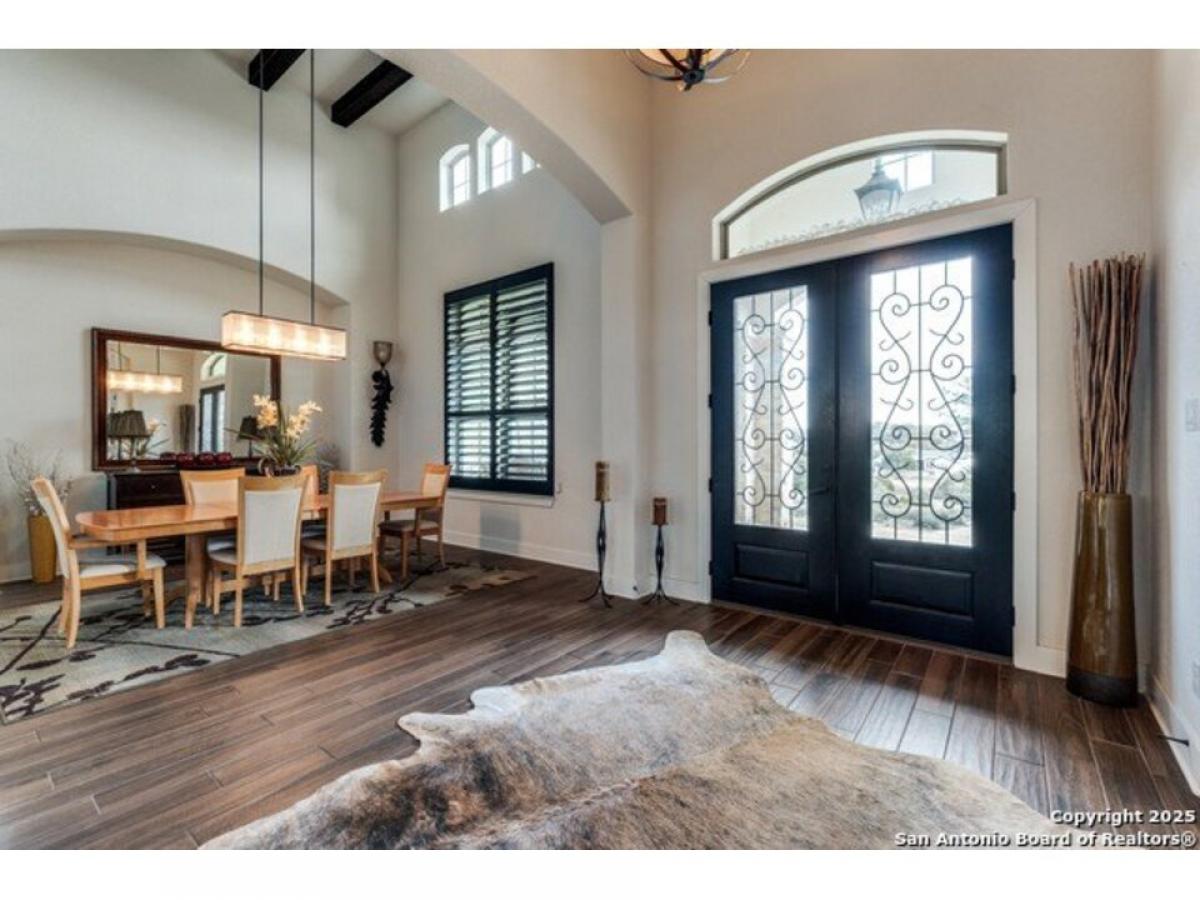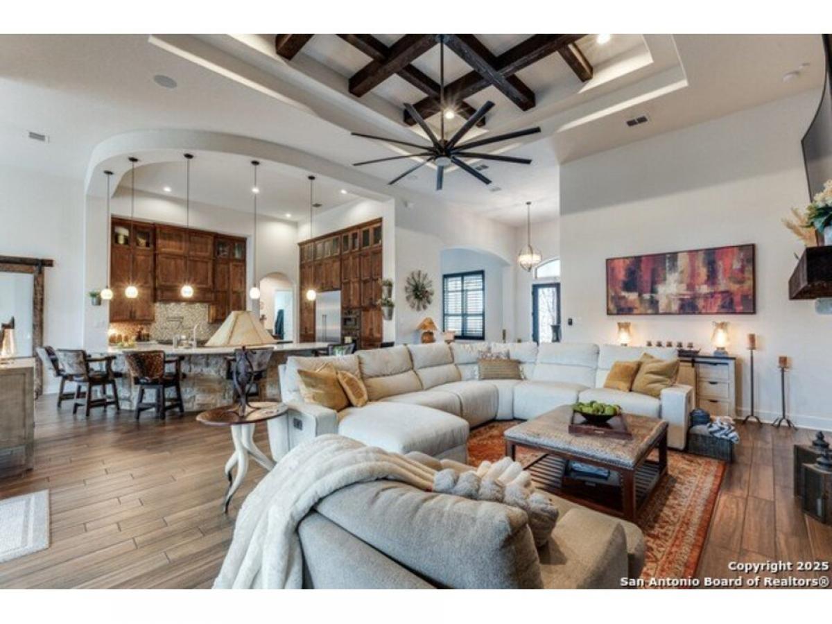 Welcome to your dream home in the highly sought-after gated community of Vintage Oaks in New Braunfels! This stunning one-story home sits on 4 acres of pristine land, offering the perfect blend of luxury and tranquility. COME BUILD AN ADDITIONAL DWELLING WHETHER IT BE A MOTHER-IN-LAW SUITE OR GUEST HOME ON THIS PROPERTY AND MAKE THE MOST OF THE AVAILBLE SPACE! Enjoy gorgeous views from the front porch that runs the length of the house. Upon entry, you will love the soaring high 20 foot ceilings in the main areas and master suite. The gourmet kitchen features beautiful quartz countertops and custom cabinetry that extends from nearly floor to ceiling. Large windows flood the home with tons of natural light and the luxurious owner#039;s suite features a spa-like ensuite bath. The back patio features an expansive screened in sitting area with an outdoor kitchen and a large window shade which is great for entertaining! Enjoy the low energy bills thanks to the foam insulation and low-e windows. Nestled in a private, gated community with top tier amenties to include: resport style pools, a clubhouse, tennis and volleyball courts, walking trails and a fitness center with a sauna amp; spa. Dont miss the opportunity to make this beauty yours!