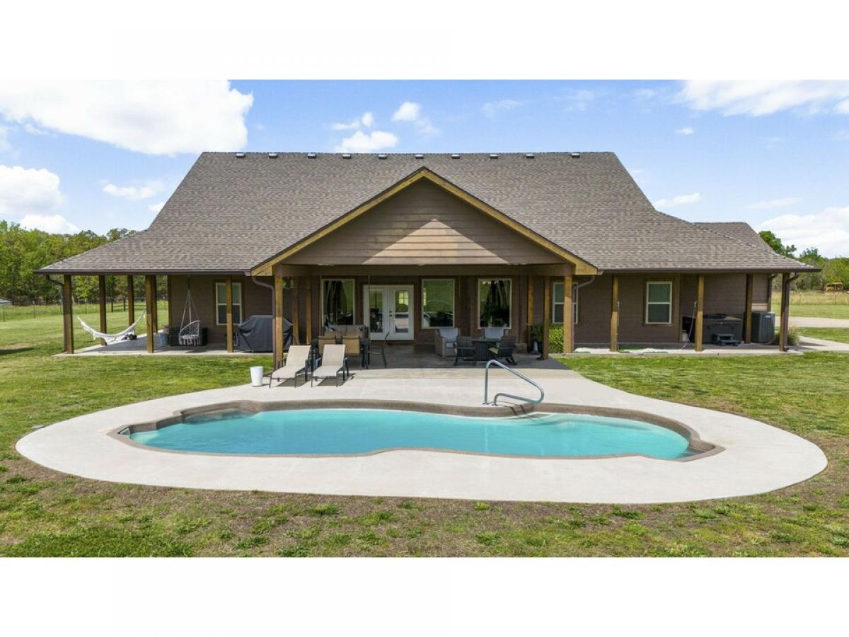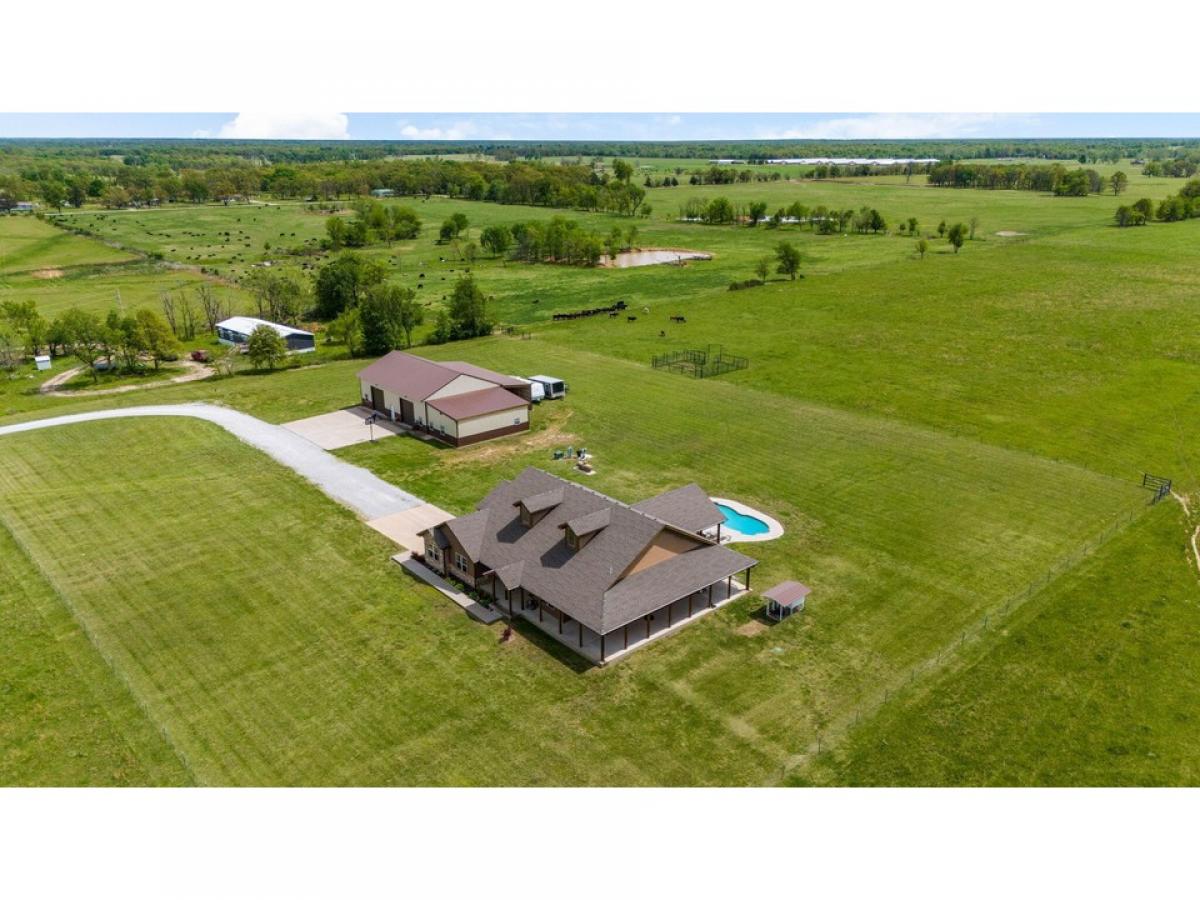 Escape to this stunning farmhouse, less than 5 years old, nestled on 30 acres of pristine countryside through a gated entrance. The main house features 4 bedrooms, 2.5 bathrooms, and a 2-car garage, all within an inviting open floor plan with vaulted ceilings. Step outside onto the covered wrap-around porch and relax in the in-ground pool or 5-person hot tub. Additionally, a 2400 square foot shop awaits, complete with a hunting room, kitchen, laundry room, bathroom, and loft. Need extra space? There's also a 1000 square foot apartment with 1 bedroom, 1 bathroom, kitchen, and living room. With a 19x60 lean-to off the shop, 2 ponds, cross-fencing, and working pens, this property offers the ultimate country living experience. Located just minutes from Grove and Jay. Schedule your tour today!
