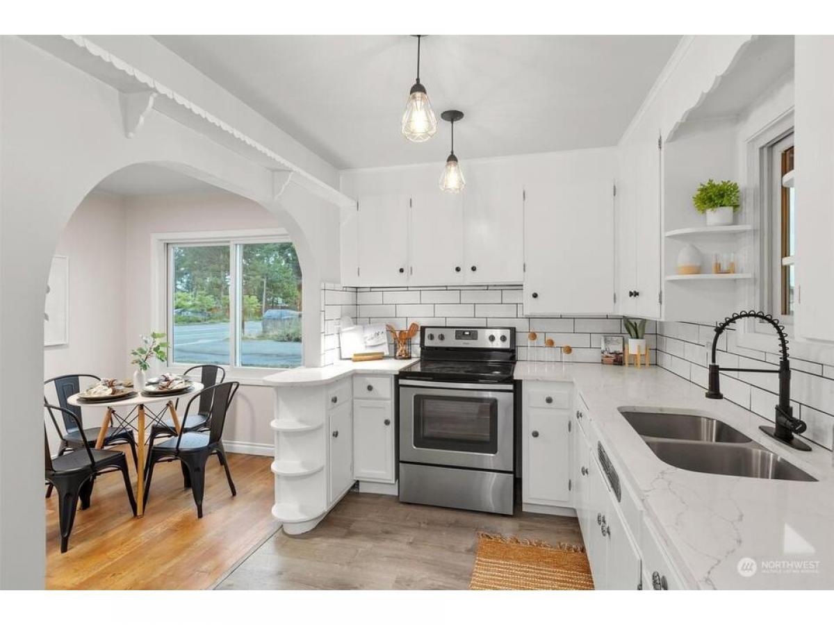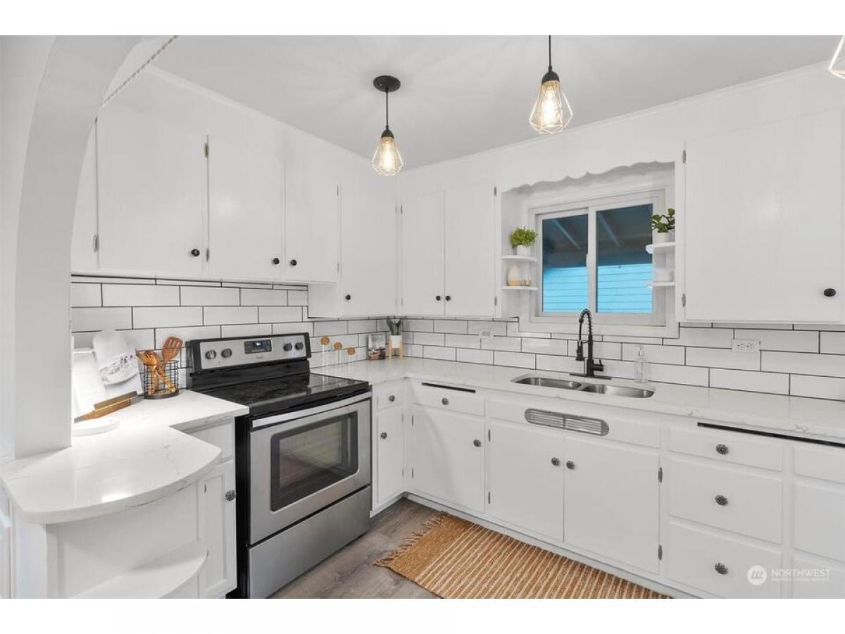 Charming 2-bed (plus extra room), 1-bath home. Enjoy a mix of modern updates classic charm. The entire interior has been painted and the bathroom updated featuring new vanity, lights, mirror. The standout is the remodeled kitchen with castle white quartz countertops, modern double sink, matte black faucet, white cabinets with new hardware. It looks stunning with the original arched doorways, brick chimney, vintage doors. The 840 sq ft basement (400 sq ft finished) offers versatile space for an extra rec room and storage. Large shed outside with built in shelves. Lots of parking. No HOA. This home is move-in ready and waiting for you!