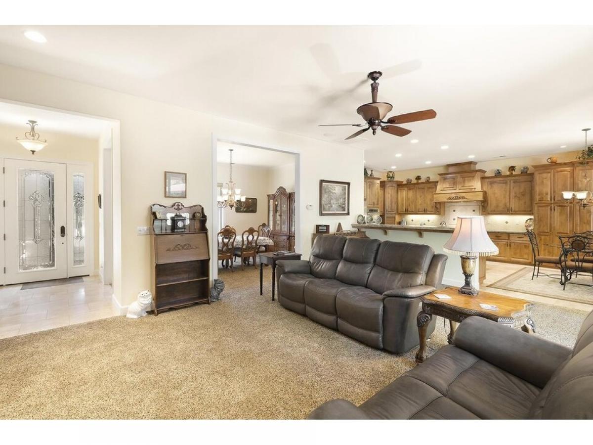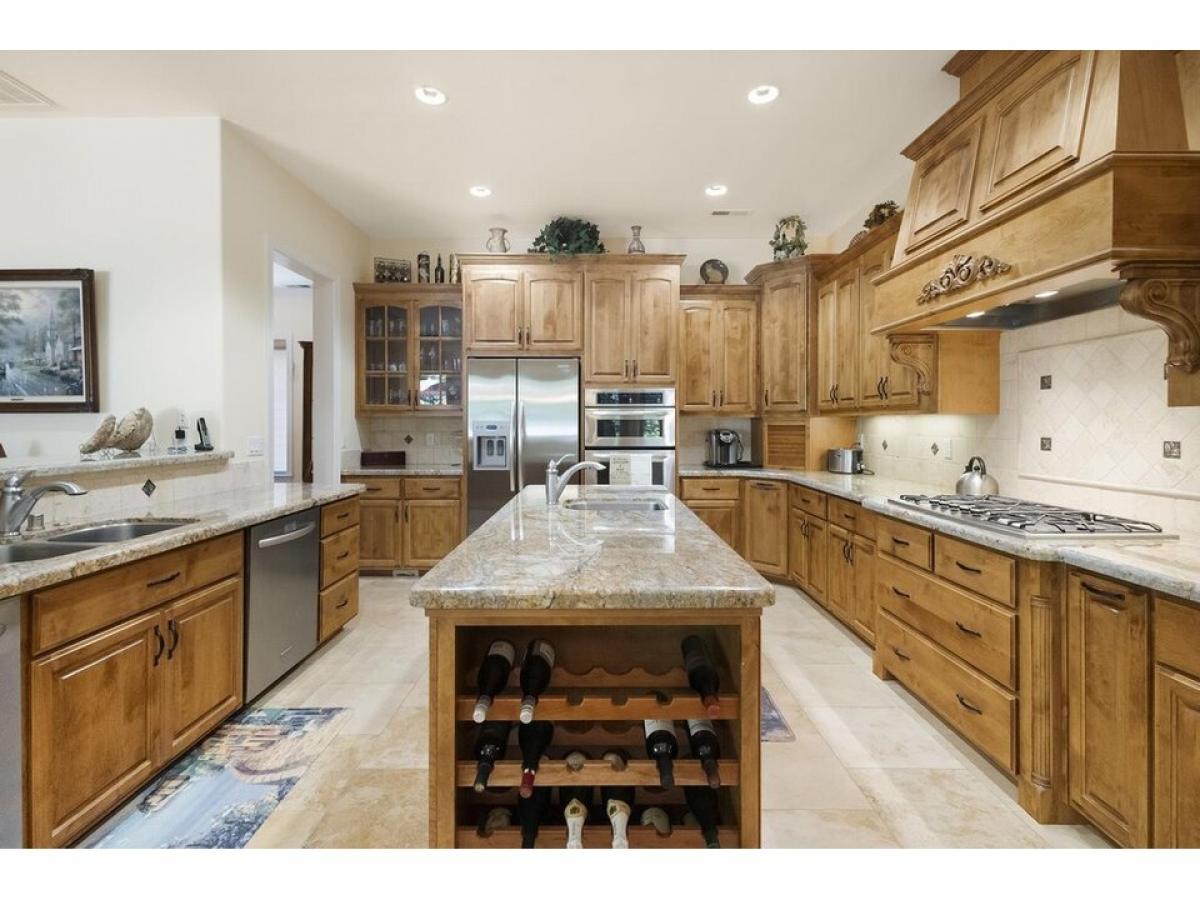 Welcome to your dream home, a perfect blend of elegance and functionality! This custom-designed residence features two spacious bedrooms and two and a half bathrooms within the main house, complemented by a charming one-bedroom, one-bath casita for added privacy or guest accommodations. Step inside and be greeted by a gourmet kitchen that boasts granite countertops, a custom range hood, and a generous pantry. Enjoy meals in the formal dining room or the cozy breakfast nook, both designed for comfort and style. The living room is an entertainerrsquo;s delight, complete with surround sound and a cozy fireplace, creating the perfect ambiance for any occasion. The primary bedroom suite is a true retreat, featuring its own fireplace, a luxurious tub and shower, and a large walk-in closet that will exceed your storage needs. The covered rear deck offers a serene outdoor space to relax and enjoy the beautifully landscaped yard. The home is not only aesthetically pleasing but also highly functional, with a large three-car garage, a golf cart garage, and an RV garage that can accommodate up to 38 feet with slides out. This well-appointed property combines sophistication with practicality, making it the ideal haven for modern living.