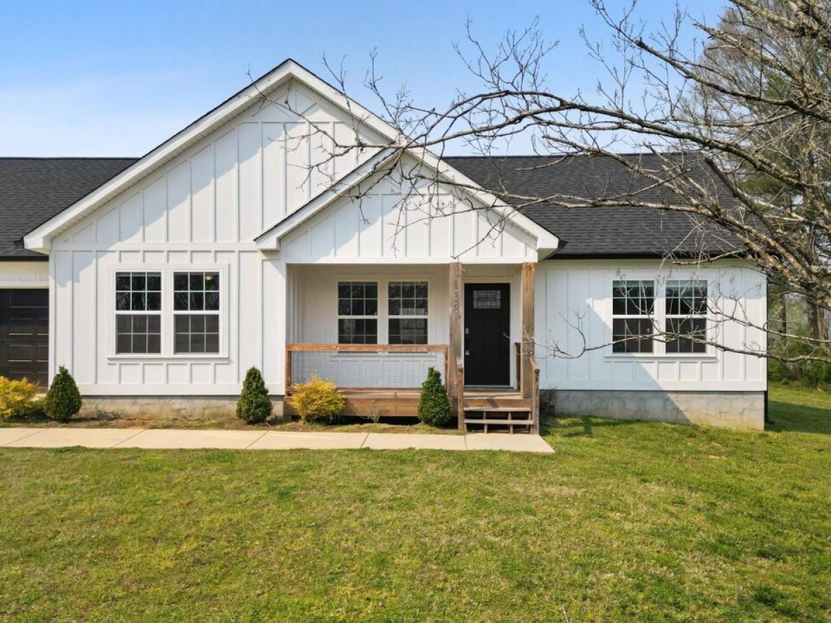 Welcome to 138 Orchard Grass Lane! Located a little over a mile outside of the Historic city of Chickamauga, Georgia, this 2022 built home could be exactly what you#039;ve been looking for! As you pull up to the home you will see the beautiful flat lot located at the end of the culdesac. Entering into the home, you will find yourself in the open floor planned living area. Off of the living area to the right, you will find two bedrooms, one full bathroom, and your wash room. On the opposite side of the living area, you have the master bedroom with en-suite bathroom and large windows that bring in plenty of sunlight! Stepping back out of the master bedroom, you will find your dining area and eat in kitchen. With beautiful quartz countertops and shaker cabinets, the kitchen really shines! Right off of the kitchen is a two car garage with plenty of room for your cars or hobbies. This property provides you with the accessibility of being 30 minutes from Chattanooga and being only minutes away from the adorable town of Chickamauga, even giving you a taste of the country life with the large lot bordered by farmland on one side. If you are looking for your dream home, you may have just found it. Schedule your showing today!