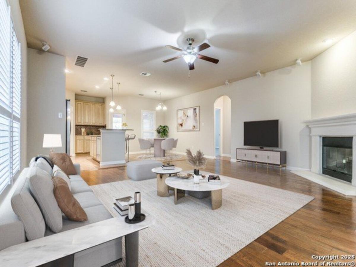 Immaculately maintained and spacious home! Recently replaced the Roof in April, 2025 and replaced the roof on the Shed. Roof has a transferable Warranty. Live in tranquility and peace in this desired neighborhood with low traffic area and nestled near Olympia Hills Golf Course and close to Randolph Air Force Base. Ideal for those desiring master bedroom downstairs with private bathroom (jacuzzi tub) and separate shower. Beautifully designed walk-in California closet. Spacious open areas living room, dining room, breakfast area and custom-build office spaces are great for entertaining. Custom plantation shutters on all window. Upstairs open area ideal for pool table, game room, craft or other hobbies. Tankless water heater. Great Neighborhood amenities including pool, tennis courts and club house. Very close to Olympia Gold Course. Very low HOA! Only $350 a year.
