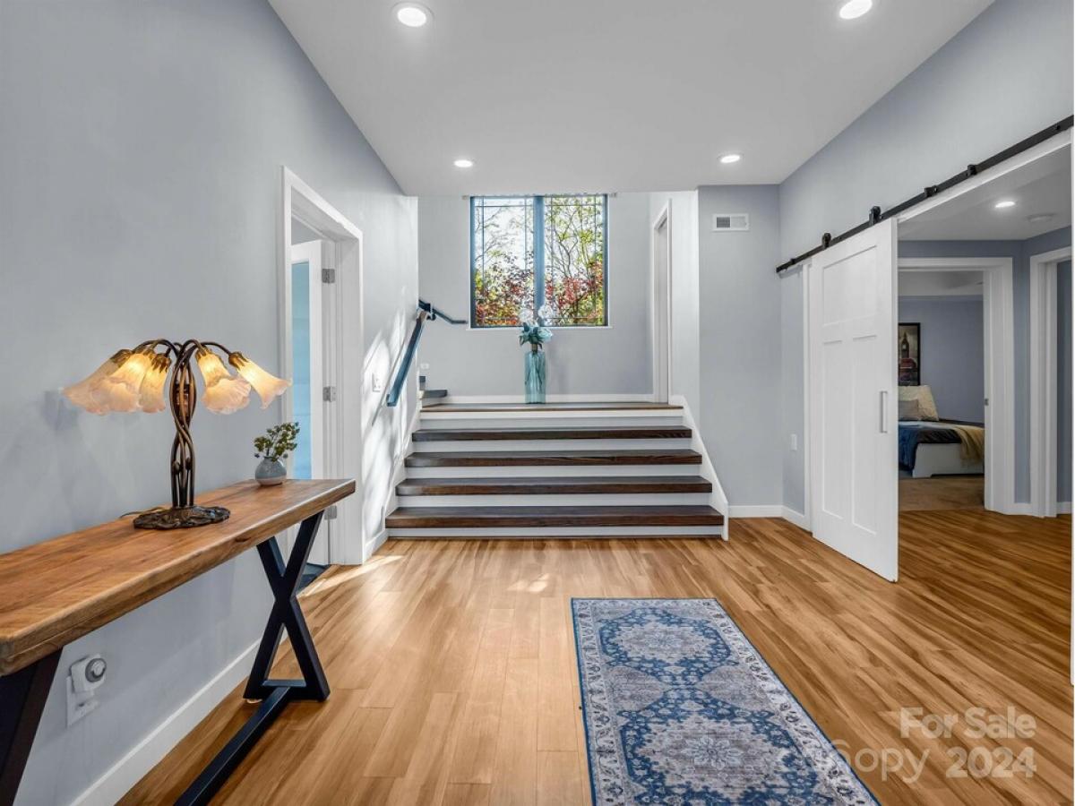 Surround yourself with majestic mountain views, wooded hillsides and the tranquility of nature; This unique and beautiful home sits on 20+ acres of prime property offering scenic farmland and stunning long range views; Custom home has been creatively renovated in 2017 and provides modern, smart finishes throughout; The upper (main) level offers an impressive open floor plan leading you onto the spacious deck; The kitchen will inspire your inner chef and is peppered with thoughtful design throughout; Stone linier fireplace warms up winter nights in the living room; The beautiful dining room is perfect for entertaining; As you enter the private primary suite you will be swept away with luxurious spa bath and two outdoor spaces to enjoy; Basement (entry) level offers two bedroom ensuites, den/media room, as well as a studio/gym/flex room. This home is a true mountain retreat just 25 minutes from the heart of downtown Asheville and only 5 minutes from the charming town of Mars Hill.