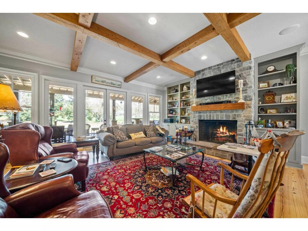 Beautiful custom home in the coves at Cuscowilla. This recently updated and beautifully landscaped 5 BR / 4.5 BA lake access home is located on a Lake view lot and is close to the boat docks and Cuscowilla Clubhouse. The modern open floor plan flows from the kitchen to the living room and features a custom stonework, granite and concrete countertops, stainless steel appliances, Viking gas cooktop, double ovens, and custom cabinets. The great room is accented with a beautiful hardwood floors, masonry fireplace, built-in cabinets, and coffered ceiling with rustic beams. The huge, covered porch is just off the living room and offers a masonry fireplace, grilling station, and a beautiful view of the large back yard. The owner’s suite is on the main level offering a large master bath with travertine floors, walk-in shower plus a spacious custom closet. Upstairs there is a spacious bonus room, an additional bedroom with private bath plus 2 additional bedrooms with a jack and jill bath. There is also a large storage room with spray foam insulation. Above the garage there is a cozy garage apartment with full bath and kitchenette. Located only a short golf cart ride from the swimming pool and Clubhouse.