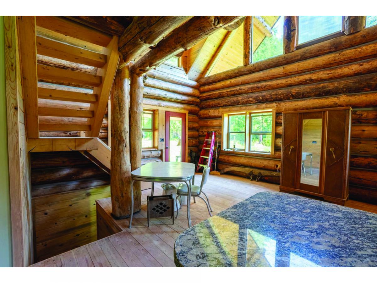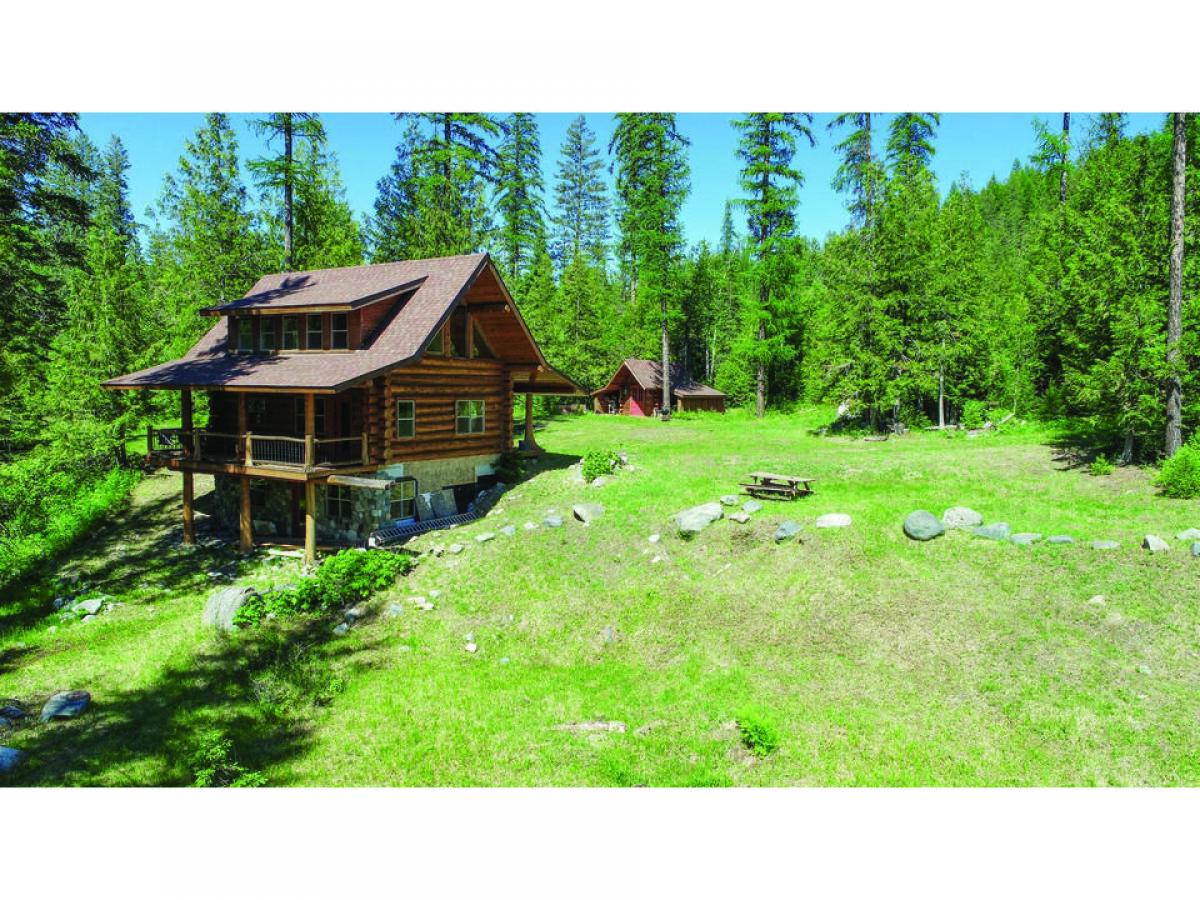 Off-Grid log home on 10.93A w/ 780' of prime Moyie River Frontage! This custom built 1,300sf 2BD 1BA hand crafted log home is completely dried-in w/ windows, doors & roofing + custom Kit Cabinetry & granite counters, just waiting for your finishing touches. Featuring energy efficient chink-style construction w/ backer rod installed, ready for chinking. Settling jacks, bolts & plates are in place. Plus its complete w/ vaulted T&G clgs, log ridges & purlins, open loft, custom stairs (no railings yet), full length covered deck, walkout Bsmnt & more. Peacefully nestled in the trees w/ home facing S; down river; not a neighbor in site. Bring your friends & family, there is plenty of room for a few campers along the river & you would never even know they were there! Cute little garden shed on site has a very quiet, built-in generator & ventilation system. Includes a private pond + an old mine shaft w/ crystal clear water trickling from inside! Property is a wildlife haven, you will see it all from here. Peace & tranquility can be yours. Call for your private showing today.