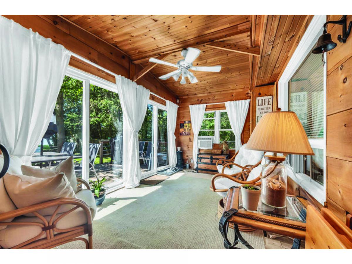 4 season home offers unobstructed lake view, deeded access to sand beach, private setting, lake views from deck & sunrm, 2 beds, laundry/3rd bdrm, updated kitchen & 4pc bth, lots of storage, 2 drives, 2 worksheds & potential for a bunkie.
