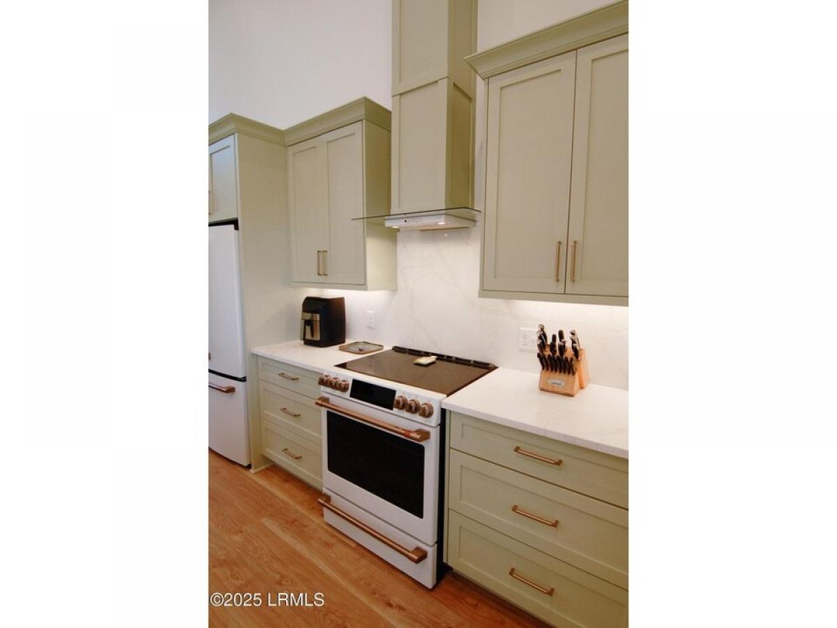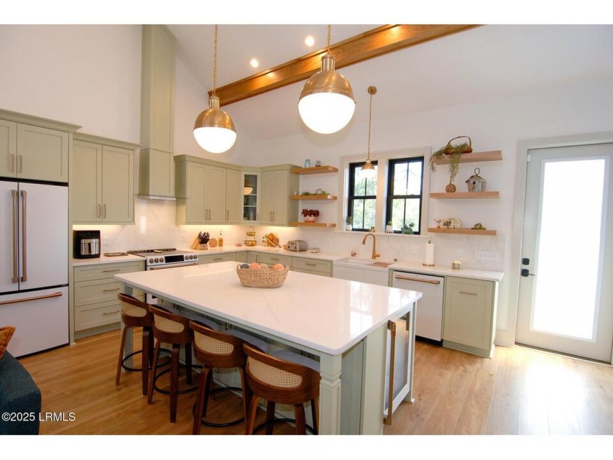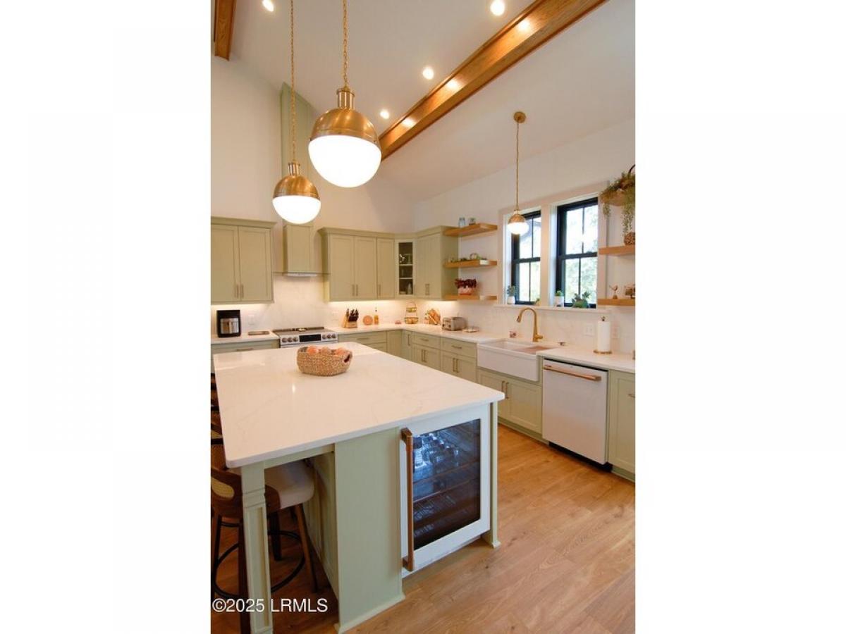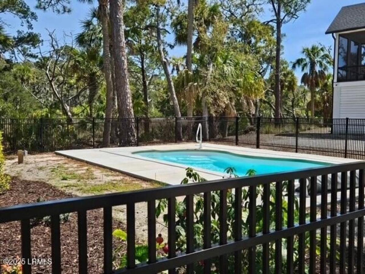 2024 STUNNING CUSTOM BUILT HOME with POOL, ELEVATOR AND EXTRA LARGE HOMESITE WITH TWOLOTS INTO ONE. This exquisite, modern farmhouse single story home w/ open concept, has high end, upgraded materials throughout. Barrel vaulted ceiling adds more of the open feel to the living area and the kitchen. Kitchen has all Brushed bronze Cafe#039; Appliances, Quartz countertops amp; large island w/ seating, Farmhouse sink with sliding cutting board, wall mount glass canopy chimney hood, counter depth French door refrigerator, beverage center, beverage refrigerator, oven, front control radiant amp; convectional range w/ warming tray, soft close custom cabinetry, underneath lighting. Heated Pool: 22 ft X 20 ft, 3 ft to 5 1/2 ft depth. Salt water generator pool (or chlorine), vinyl cover, irrigation pool, landscaping started around pool and double picket locked fence adds for more privacy. Owners suite has a feature wall, a nice walk-in closet, barndoor, full bath with double sinks, custom floating vanity, low threshold walk in shower, marble bench amp; 3D glass enclosure. Bedroom 2 nice size with large closet and sliding door to back screened in porch. Bedroom 3 is being used as an art studio with beautiful 10 pane French doors with herringbone patterned flooring 30-year composition Timber Tech decking, steps, covered porch amp; screen porch, double cascading front stairs. ELEVATOR with supply rolling cart. Laundry room w/ sink and custom cabinetry, drop down attic steps for extra storage and foam insulation Two marsh view lots were bought and added together to make one large homesite. ADT ready with motion sense, flood lights, doorbell and mounted cameras. A amp; D Custom Builders built 2024, Sod, Rain Bird APP programmable irrigation system, 2 car garage with ample storage, SMART thermostat. This is a must see, pictures do not do it justice. Home comes unfurnished, so you can make it all your own.