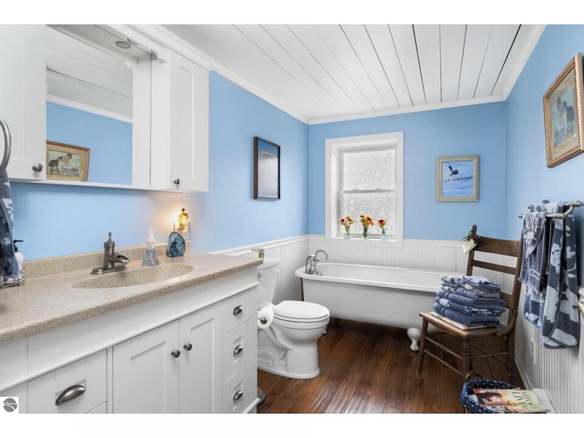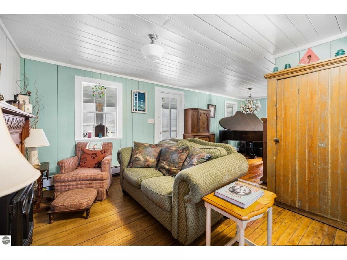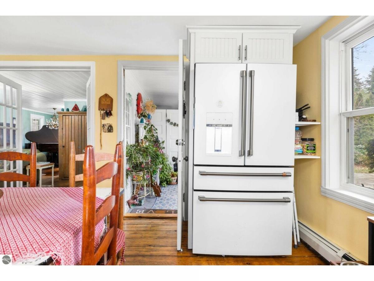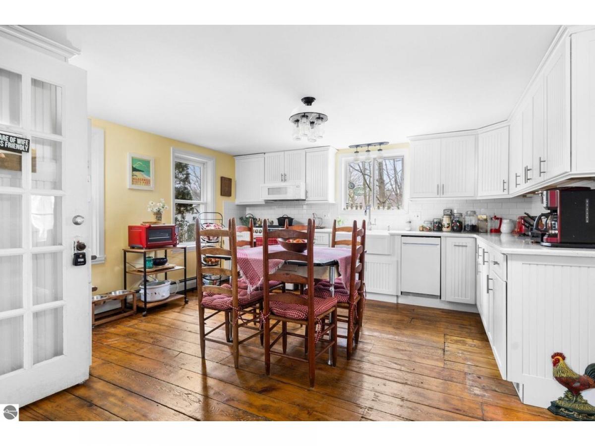 ELK RAPIDS CENTENNIAL HOME - Beautifully restored 3 bedroom, 2 bath farmhouse with all the modern touches. Granite kitchen countertops, farmhouse sink, new appliances, newer furnace, new light fixtures, new 50 year steel roof, while keeping the classic look. Wood floors and slat ceiling in part of the house. Dive into a good book while sitting on the enclosed front porch or relax in the back yard while enjoying the exceptional fenced double lot. Located in Elk Rapid’s east side near shopping, restaurants, churches, golfing and the fabulous Elk Rapids Schools. Large back yard has numerous perennial plantings, beautiful flagstone patio and firepit. Oversized two car garage with workshop and “garden center”. Short walk, car ride or bike ride to amazing sandy beaches. "Stay Dry System" installed in basement. Don’t miss out on this exceptional Elk Rapids property! MOTIVATED SELLER, MOVING DOWNSTATE!